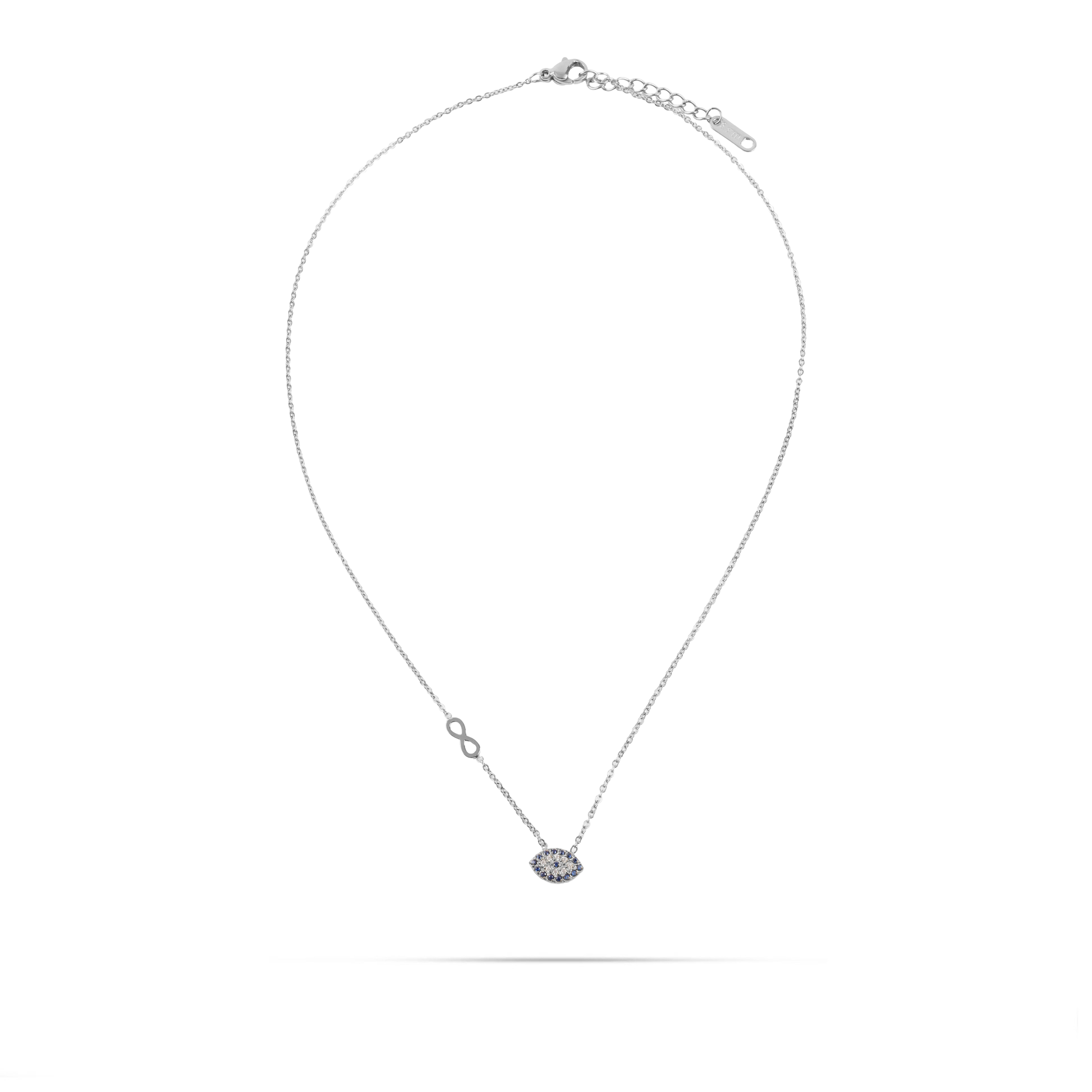 Κολιέ με ματάκι και πέτρες ζιργκόν Mar and Mar Augustina Infinity Silver από ανοξείδωτο ατσάλι