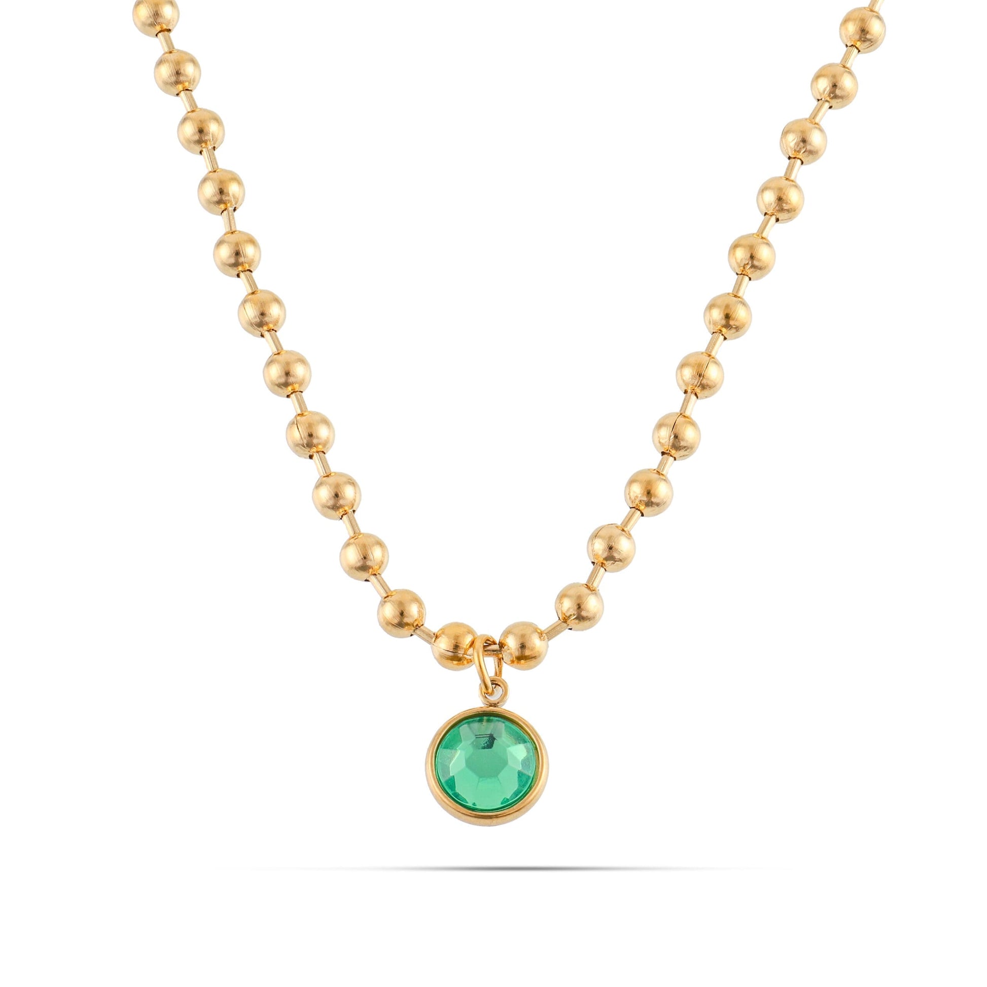 Κολιέ από ανοξείδωτο ατσάλι με εκλεπτυσμένη και κομψή αλυσίδα, διακοσμημένο με μενταγιόν που φέρει μία λαμπερή πέτρα Zircon σε πράσινο χρώμα, χαρίζοντας ζωντάνια και φρεσκάδα σε κάθε εμφάνιση. Η ανθεκτική κατασκευή από ανοξείδωτο ατσάλι εξασφαλίζει ότι το κόσμημα διατηρεί τη λάμψη του στον χρόνο, καθιστώντας το ιδανικό για καθημερινή χρήση αλλά και για ιδιαίτερες περιστάσεις. Ένα κομψό και διαχρονικό κόσμημα που συνδυάζει απλότητα με πολυτέλεια, ενώ αποτελεί και μια εξαιρετική επιλογή δώρου για αγαπημένα πρόσωπα.