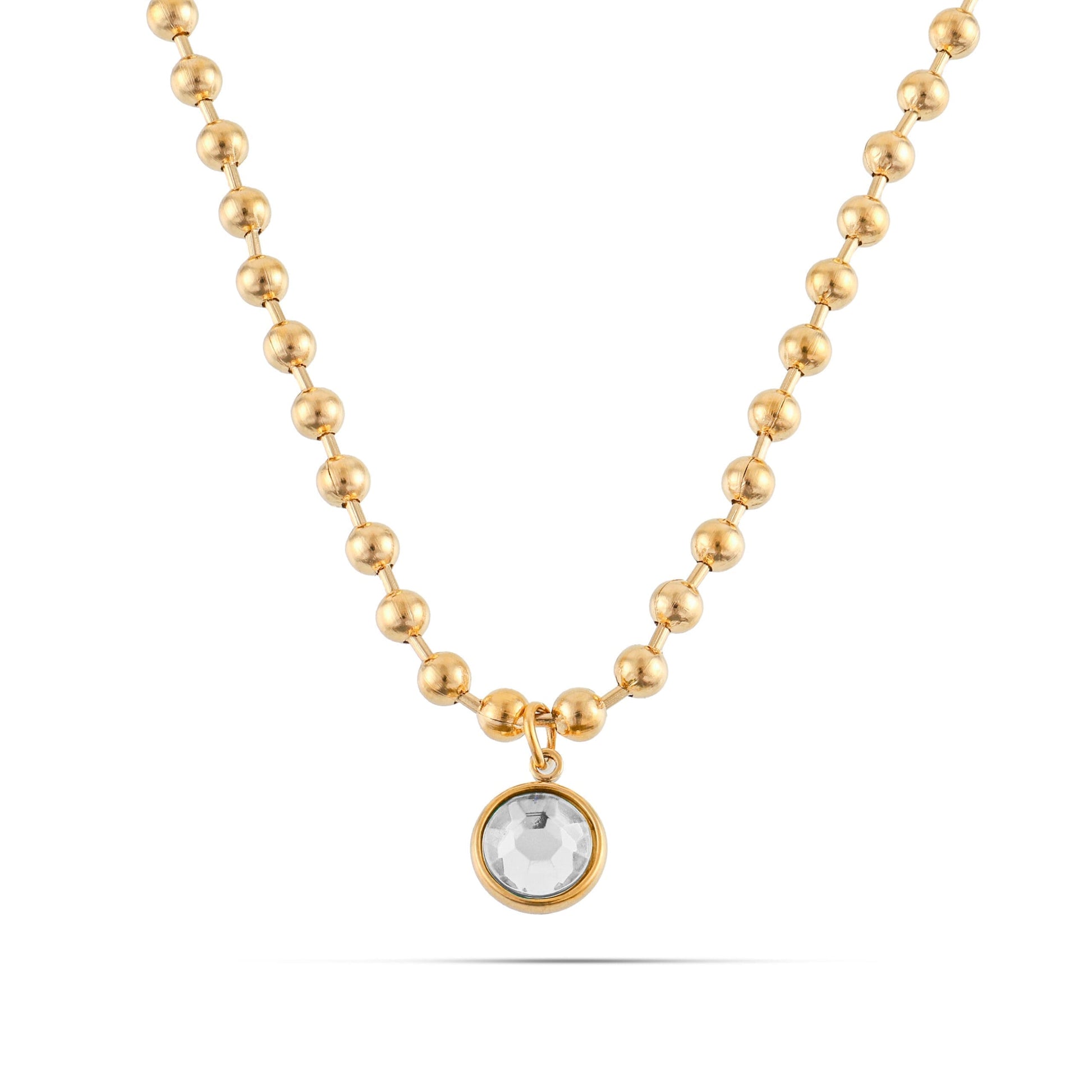 Κολιέ από ανοξείδωτο ατσάλι με κομψή και εκλεπτυσμένη αλυσίδα, διακοσμημένο με μενταγιόν που φέρει μία λαμπερή λευκή πέτρα Zircon, χαρίζοντας διαχρονική κομψότητα και εκθαμβωτική λάμψη. Η ανθεκτική κατασκευή από ανοξείδωτο ατσάλι εξασφαλίζει ότι το κόσμημα παραμένει λαμπερό και αναλλοίωτο στον χρόνο, ιδανικό για καθημερινή χρήση αλλά και για πιο ξεχωριστές περιστάσεις. Ένα κλασικό και διακριτικό κόσμημα που ταιριάζει με κάθε στυλ, ενώ αποτελεί και μια εξαιρετική επιλογή δώρου για αγαπημένα πρόσωπα.