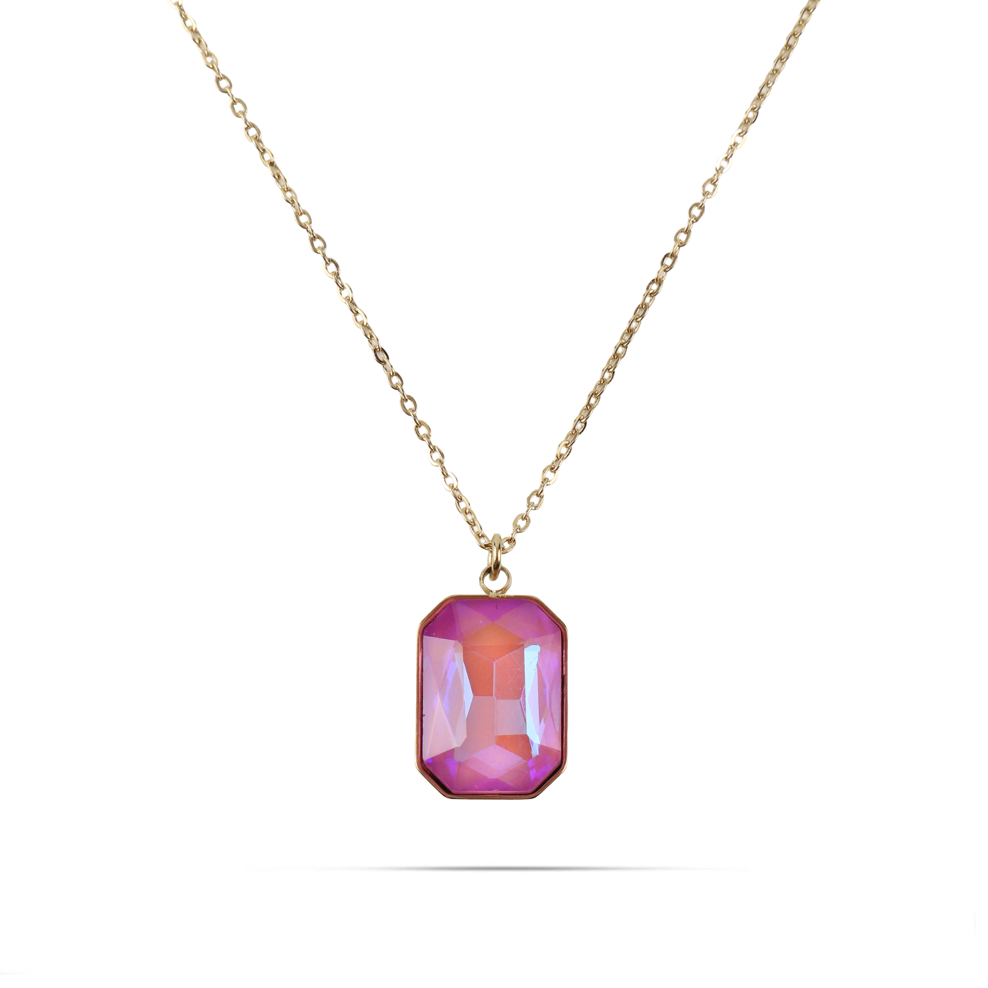 Κολιέ με πέτρα ζιργκόν Mar and Mar Isida Rectangle (Pink) από ανοξείδωτο ατσάλι