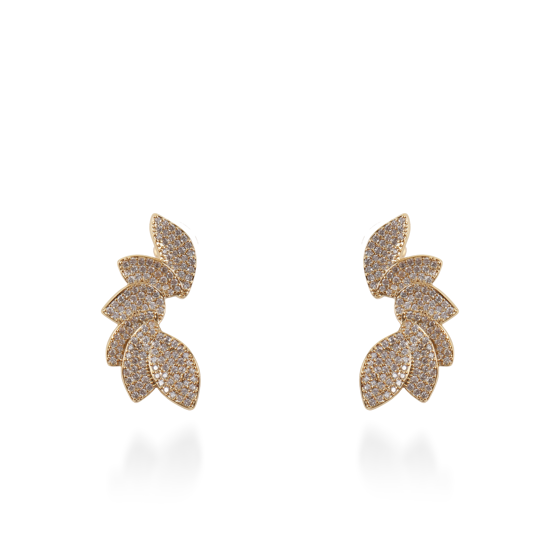 Σκουλαρίκια καρφωτά με ζιργκόν Mar and Mar Alika από διπλά επιχρυσωμε΄νο ορείχαλκο.