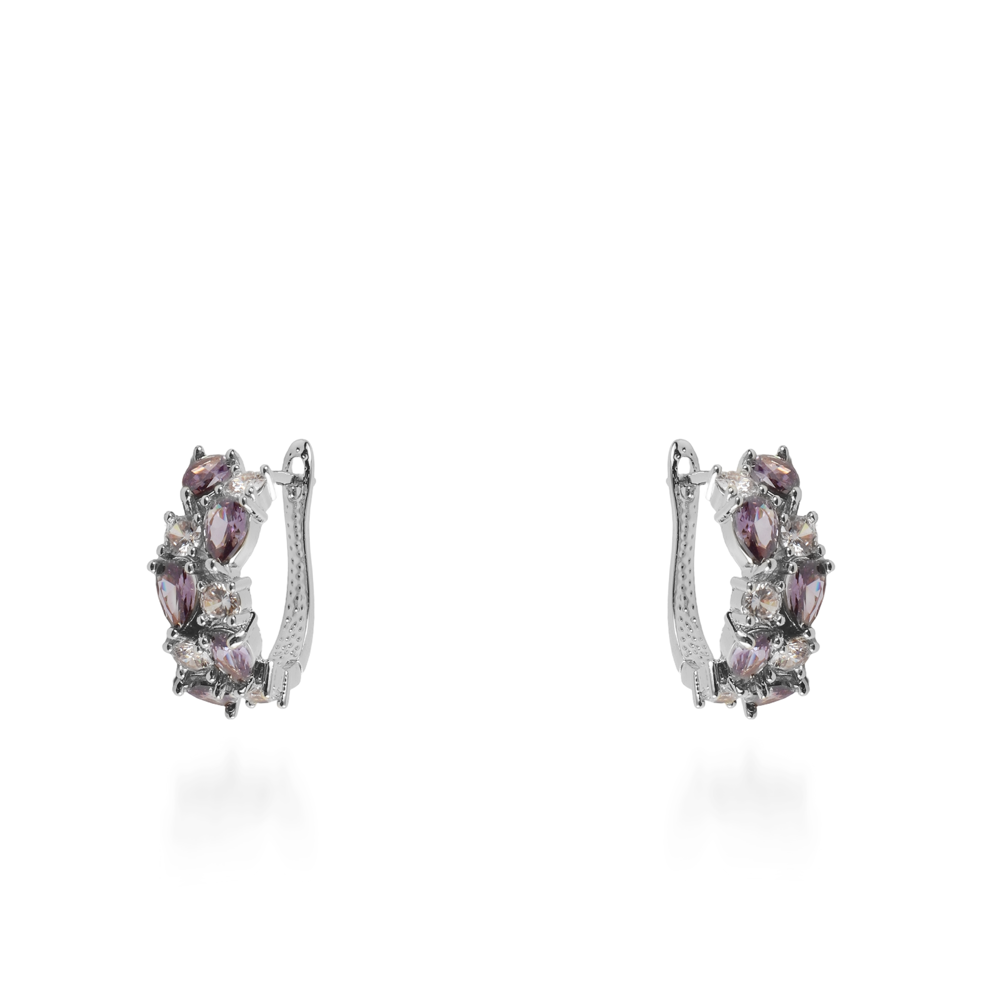 Σκουλαρίκια κρίκοι με πέτρες ζιργκόν Kailey Silver (Purple)