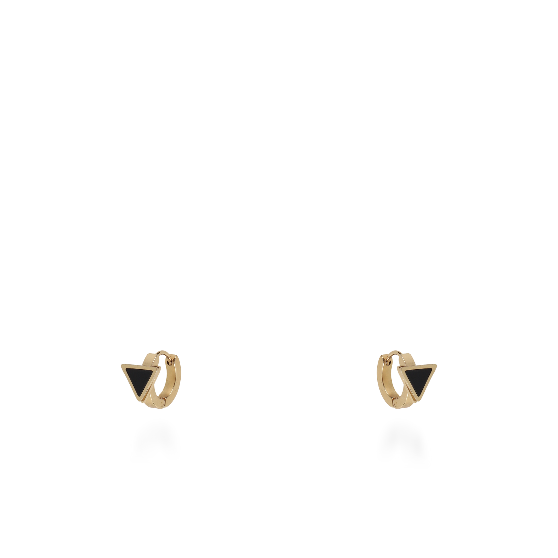 Σκουλαρίκια κρίκοι από ανοξείδωτο ατσάλι με εντυπωσιακό τρίγωνο σχέδιο, στολισμένα με εκλεπτυσμένη πέτρα Fildisi σε μαύρο χρώμα. Ο δυναμικός συνδυασμός τους αποπνέει μοντέρνο χαρακτήρα και ιδιαίτερη αισθητική, προσφέροντας μια τολμηρή αλλά και διαχρονική επιλογή. Ιδανικά για να αναδείξουν κάθε look, από το καθημερινό μέχρι το πιο επίσημο.