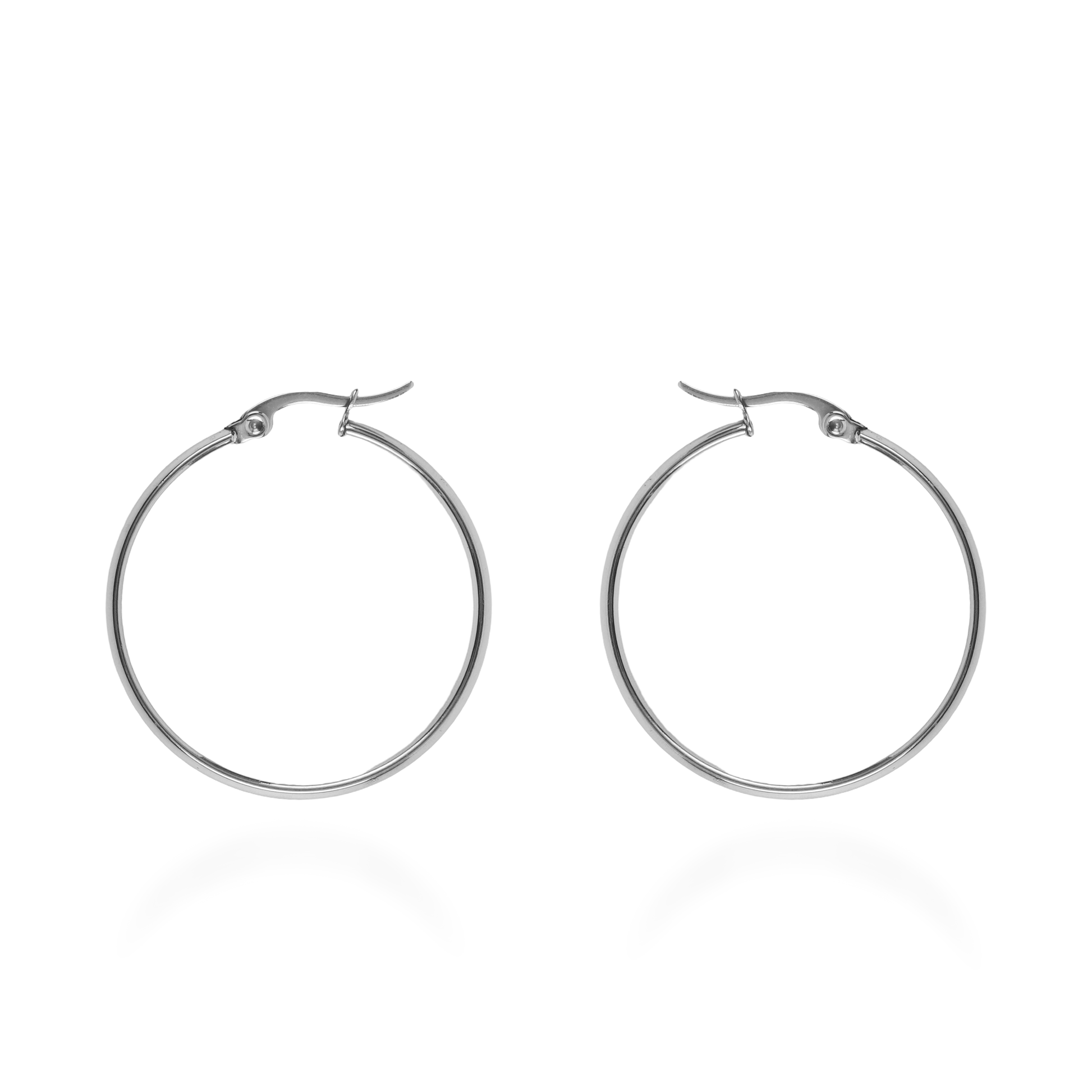 Σκουλαρίκια κρίκοι Mar and Mar Plated (3,5 cm-Silver) από ανοξείδωτο ατσάλι