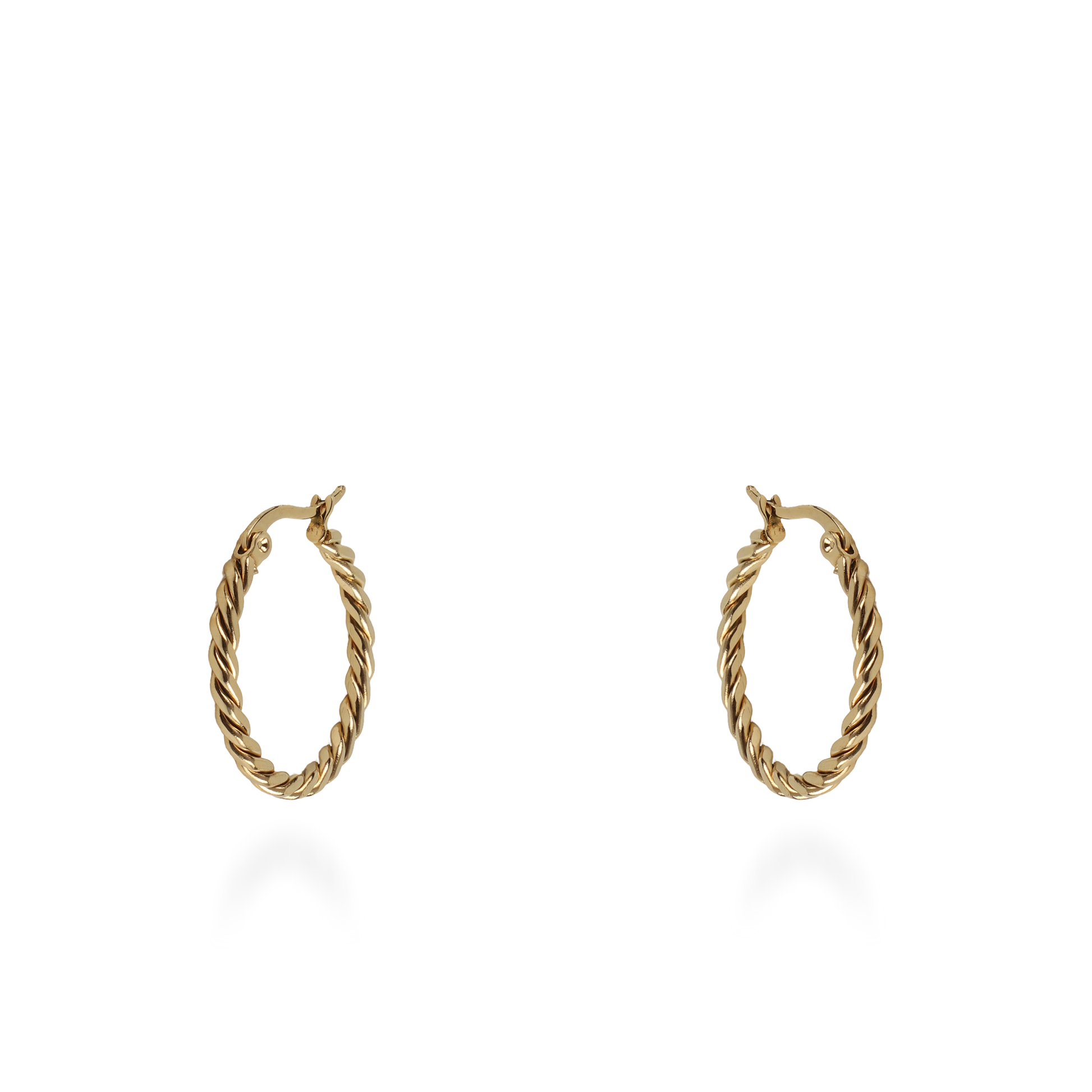 Σκουλαρίκια κρίκοι από ανοξείδωτο ατσάλι σε λαμπερό χρυσό χρώμα με ιδιαίτερο στριφογυριστό σχέδιο, που χαρίζουν μοναδικό και εντυπωσιακό στυλ. Η υψηλής ποιότητας κατασκευή από ανοξείδωτο ατσάλι εξασφαλίζει ανθεκτικότητα και διαχρονική λάμψη, καθιστώντας τα ιδανικά για καθημερινή χρήση αλλά και για ιδιαίτερες εμφανίσεις. Ένα εκλεπτυσμένο κόσμημα που αναδεικνύει και ολοκληρώνει κάθε σας εμφάνιση με κομψότητα.