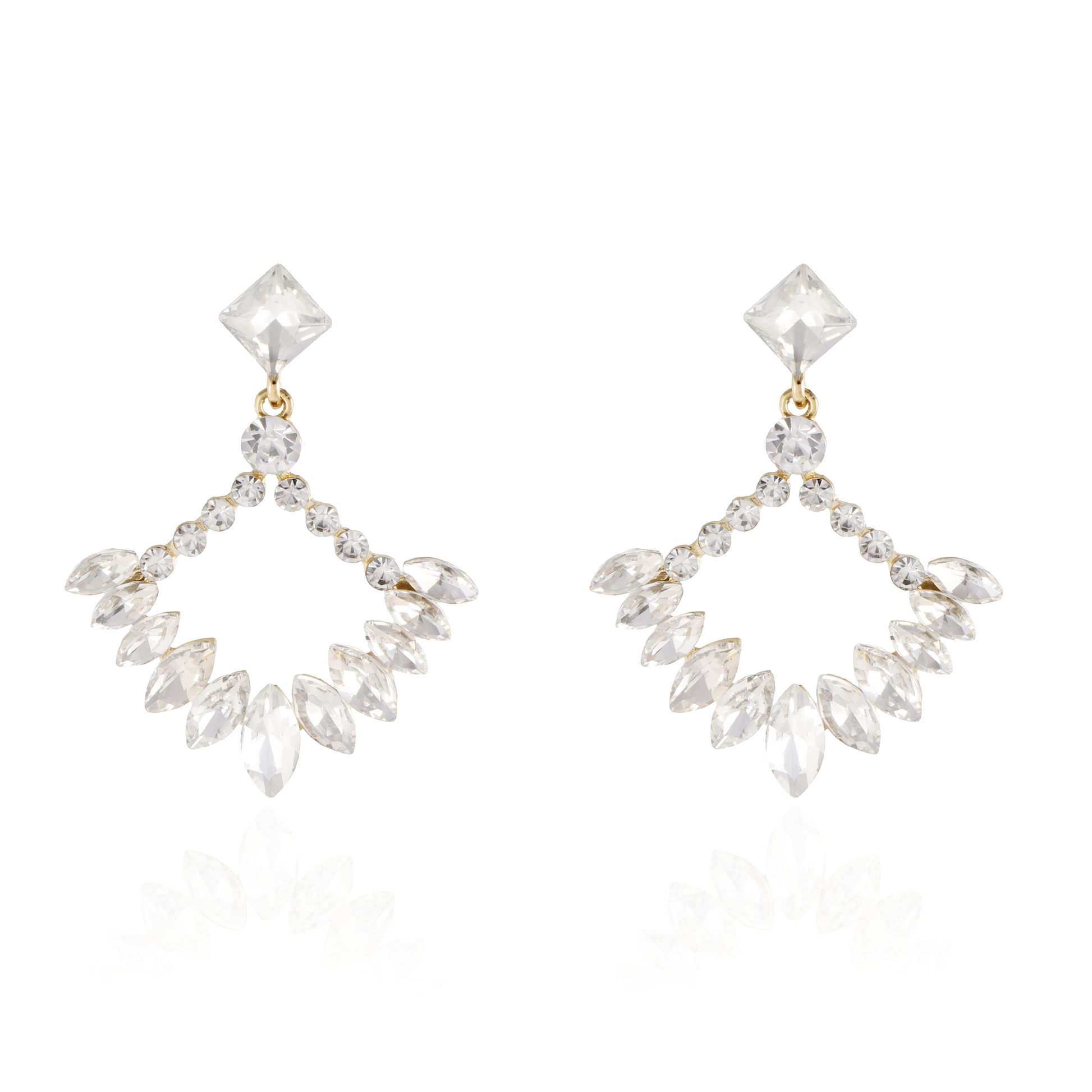 Σκουλαρίκια κρεμαστά από ορείχαλκο σε ασημί χρώμα, διακοσμημένα με λαμπερές πέτρες Zircon σε σχήμα ρόμβου, που προσφέρουν εκθαμβωτική λάμψη και κομψότητα. Αυτό το κόσμημα προσθέτει μία διακριτική αλλά εντυπωσιακή πινελιά στο στυλ σας, ενώ η σχεδίασή του τα καθιστά ιδανικά για καθημερινή χρήση αλλά και για βραδινές εξόδους. Ένα εκλεπτυσμένο κόσμημα που ολοκληρώνει κάθε εμφάνιση με φινέτσα και λάμψη.