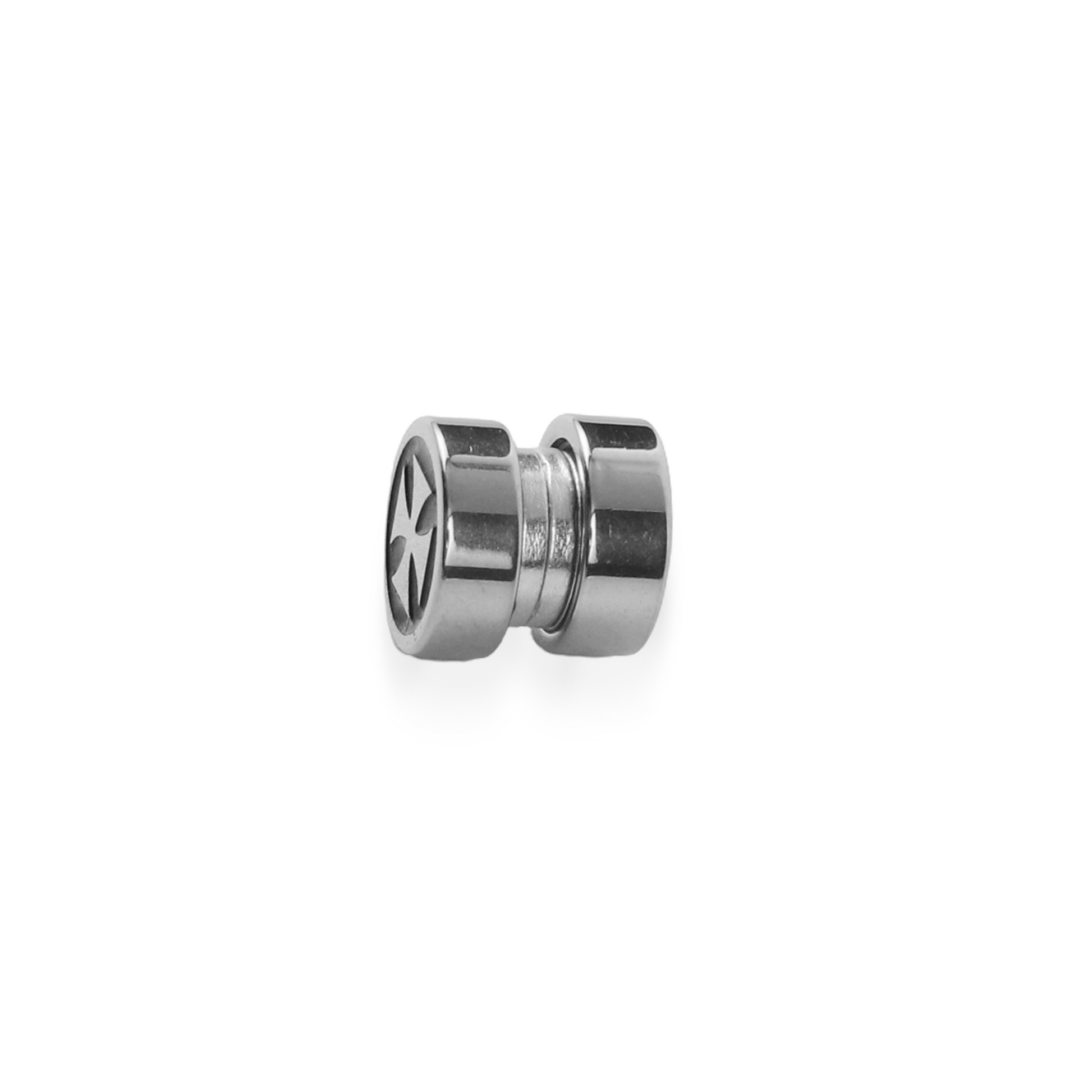Μαγνητικό σκουλαρίκι τύπου μπάρα από ανοξείδωτο ατσάλι, σε ασημί χρώμα, με χαραγμένο σχέδιο πιο έντονου, γεμάτου σταυρού σε μαύρο χρώμα. Το τολμηρό του design προσθέτει μια δυναμική και στιβαρή αισθητική, ενώ παραμένει κομψό και ευκολοσυνδύαστο με διαφορετικά στυλ. Διαθέτει διπλό μαγνήτη που προσαρμόζεται στην επιθυμητή πίεση, προσφέροντας σταθερή και άνετη εφαρμογή χωρίς τρύπημα.