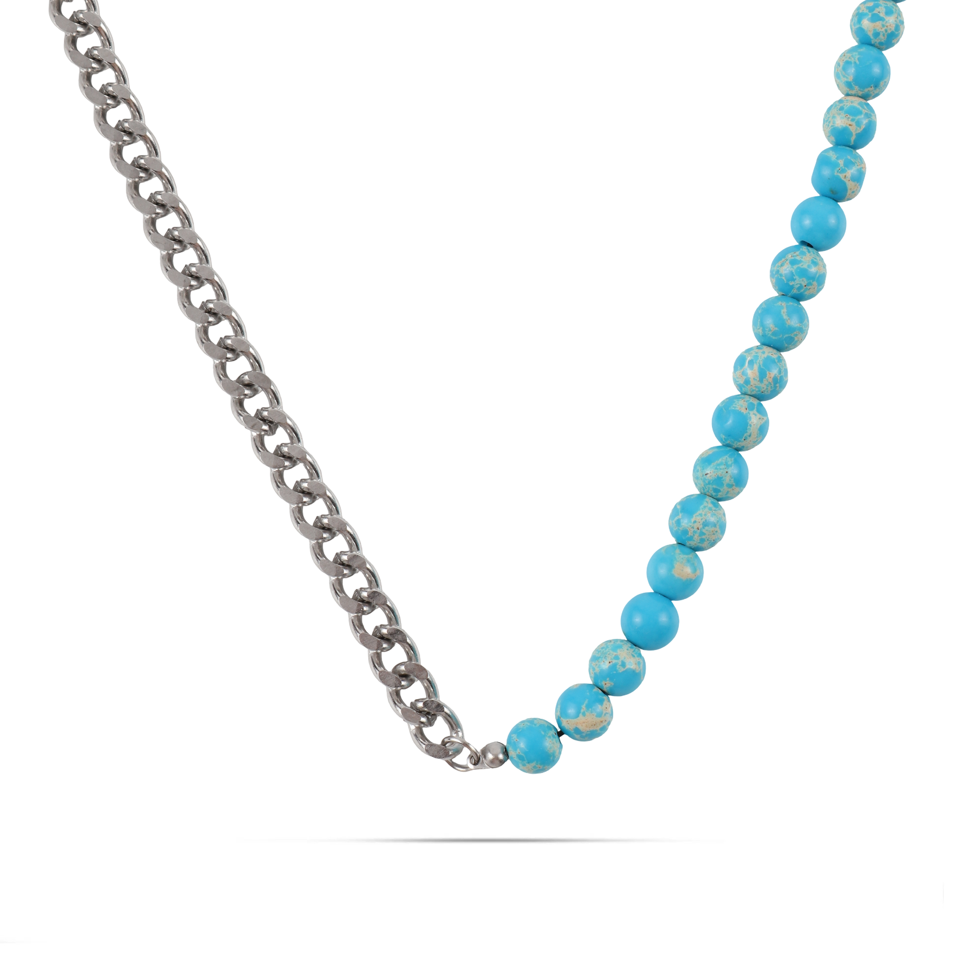 Ανδρικό χειροποίητο κολιέ με αλυσίδα Curb Mar and Mar Conner (Light Blue) με φυσικές ορυκτές πέτρες Χαολίτη