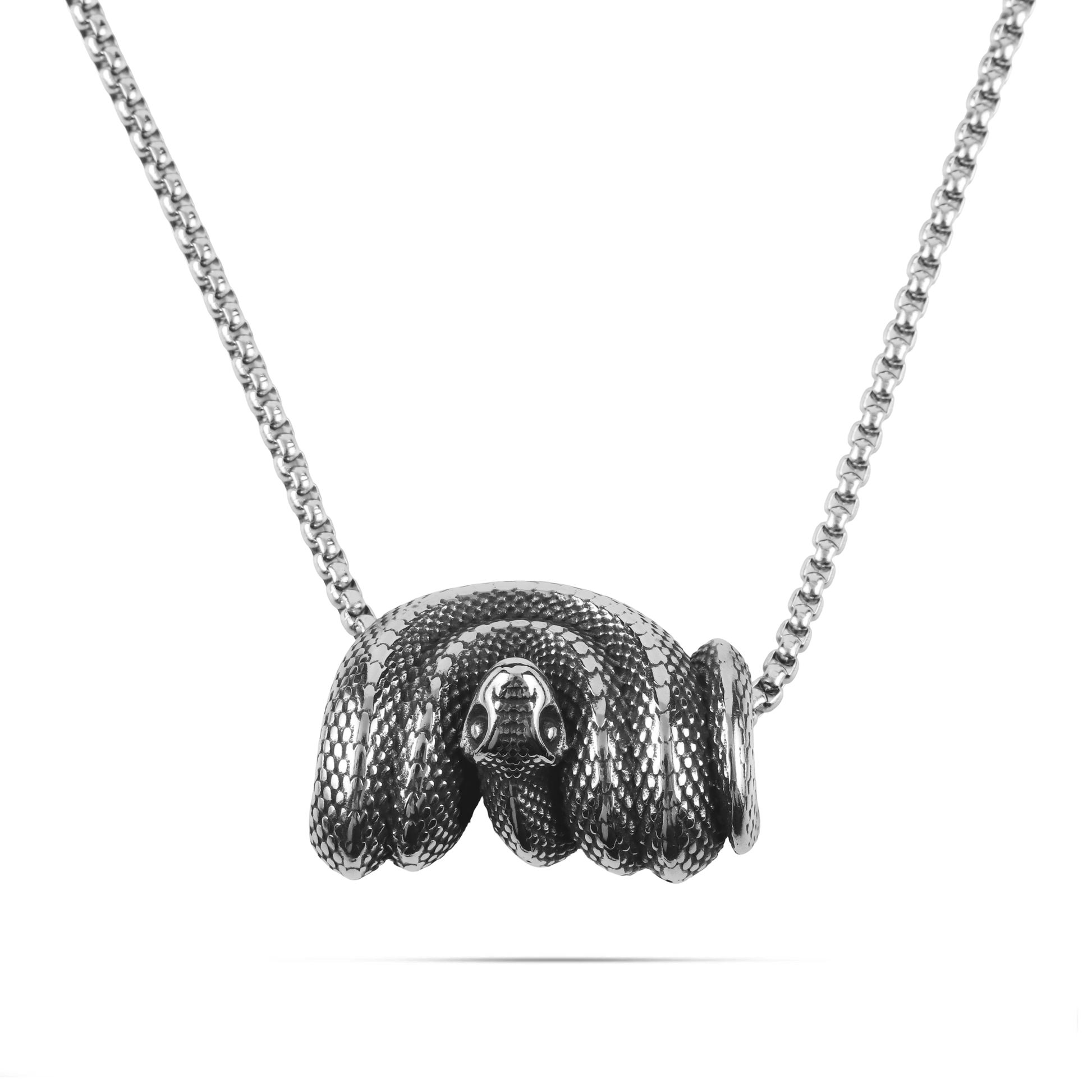 Κολιέ Anacoda από ανοξείδωτο ατσάλι σε ασημί χρώμα. Ένα μοναδικό κόσμημα για το λαιμό σας με ιδιαίτερο μενταγιόν με φίδι με όμορφες λεπτομέρειες που θα λατρέψετε!