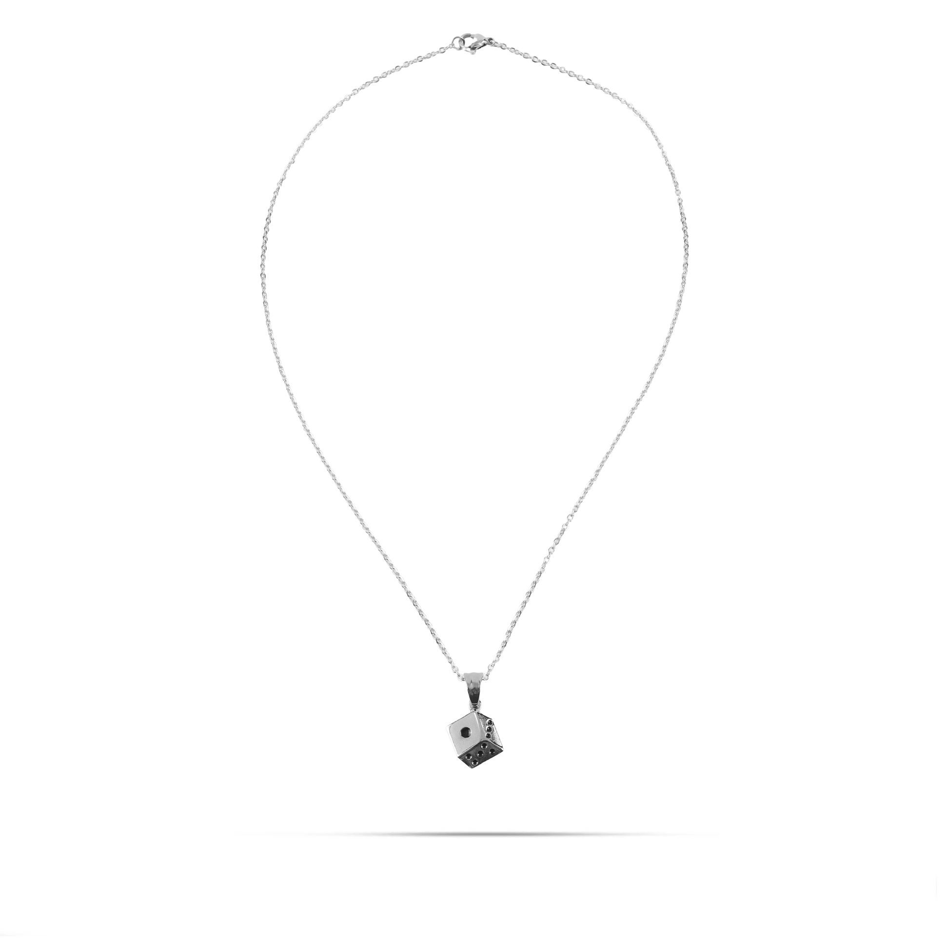 Κολιέ Dice από ανοξείδωτο ατσάλι σε ασημί χρώμα. Ένα μοναδικό κόσμημα για το λαιμό σας με μενταγιόν ζάρι με ανάγλυφες μαύρες λεπτομέρειες με τους αριθμούς που θα λατρέψετε!