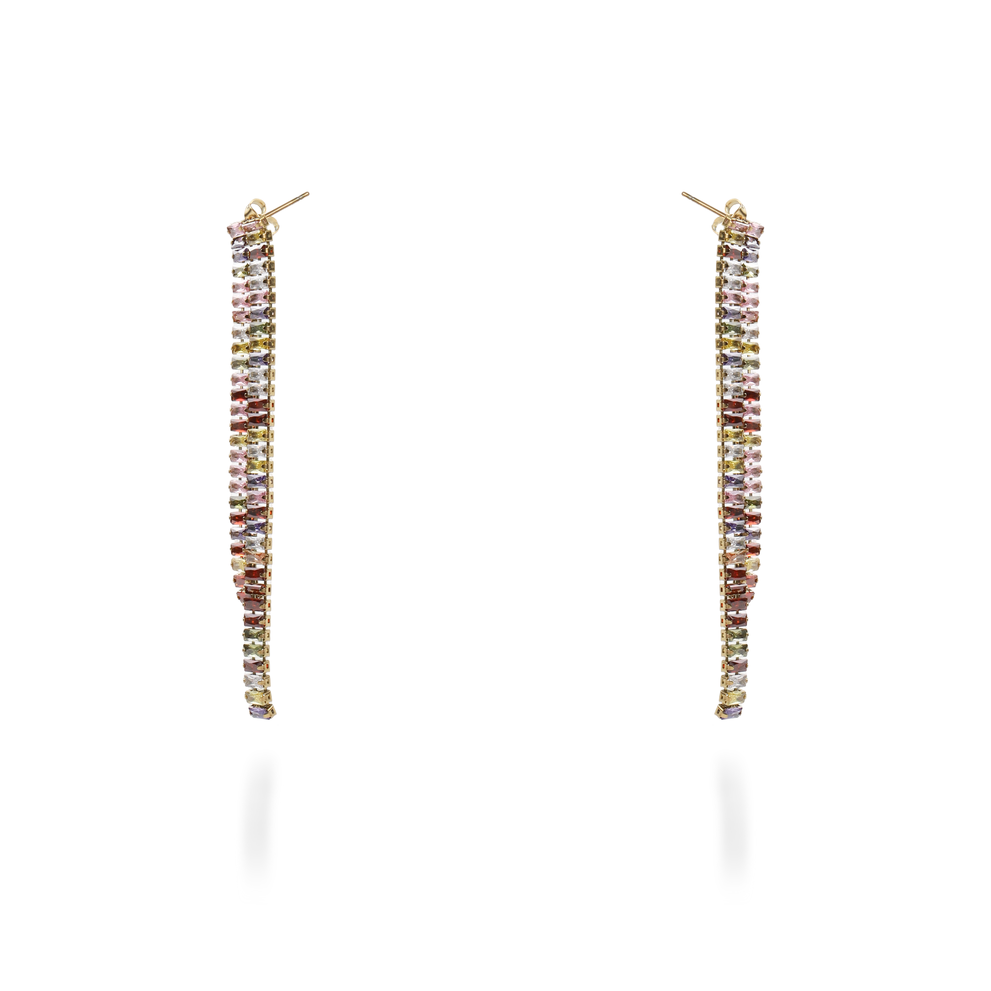 Σκουλαρίκια κρεμαστά από ανοξείδωτο ατσάλι διακοσμημένα με πολύχρωμες λαμπερές πέτρες Baguette Zircon που προσφέρουν μια εκλεπτυσμένη και λαμπερή εμφάνιση. Το ανοξείδωτο ατσάλι είναι ανθεκτικό υλικό και διατηρεί τη λάμψη του με την πάροδο του χρόνου. Αυτά τα σκουλαρίκια είναι ιδανικά για κάθε περίσταση και προσθέτουν λάμψη και στυλ σε κάθε εμφάνιση.