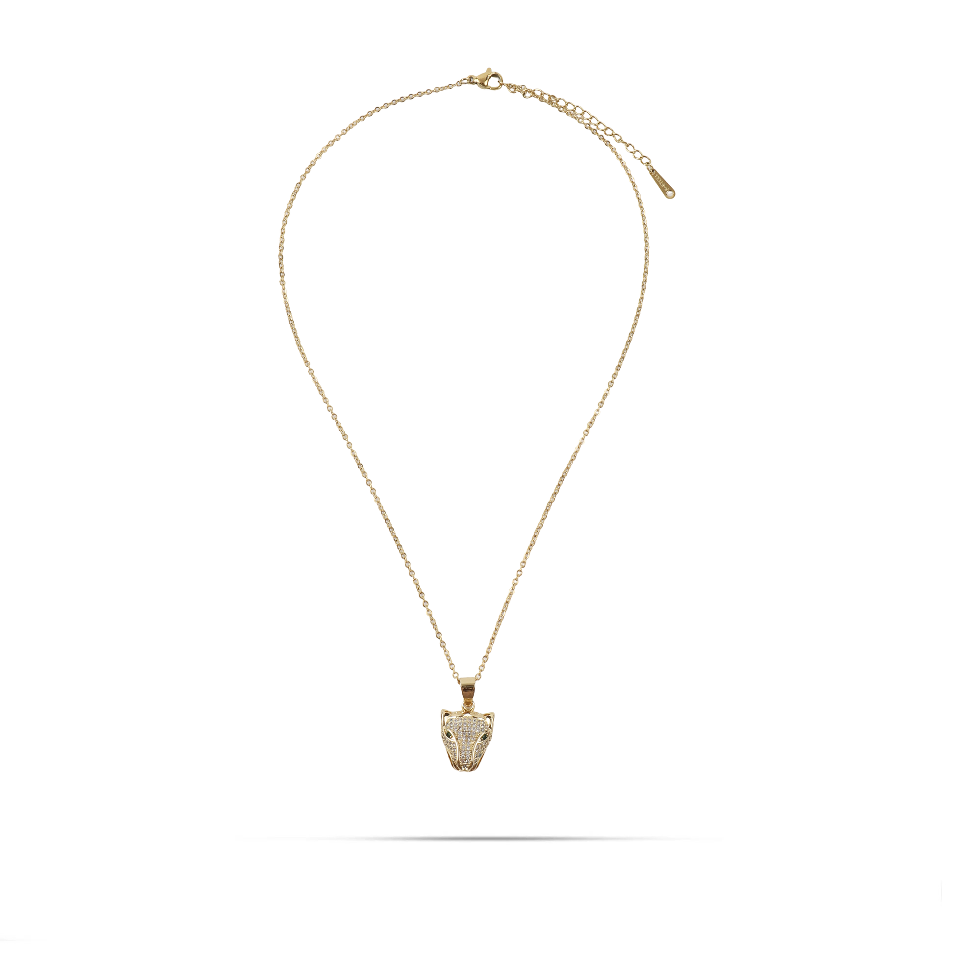 Kολιέ από ανοξείδωτο ατσάλι με εντυπωσιακό μενταγιόν πρόσωπο πάνθηρα διακοσμημένο με υπέροχες πέτρες Zircon, προσδίδοντας λάμψη στο σχέδιο. Αυτό το κολιέ είναι μια εντυπωσιακή προσθήκη στο στυλ σας, προσφέροντας μια μοναδική αίσθηση κομψότητας. Κατάλληλο για κάθε περίσταση και εμφάνιση, θα προσθέσει μια δόση άγριας ομορφιάς στο ντύσιμό σας.