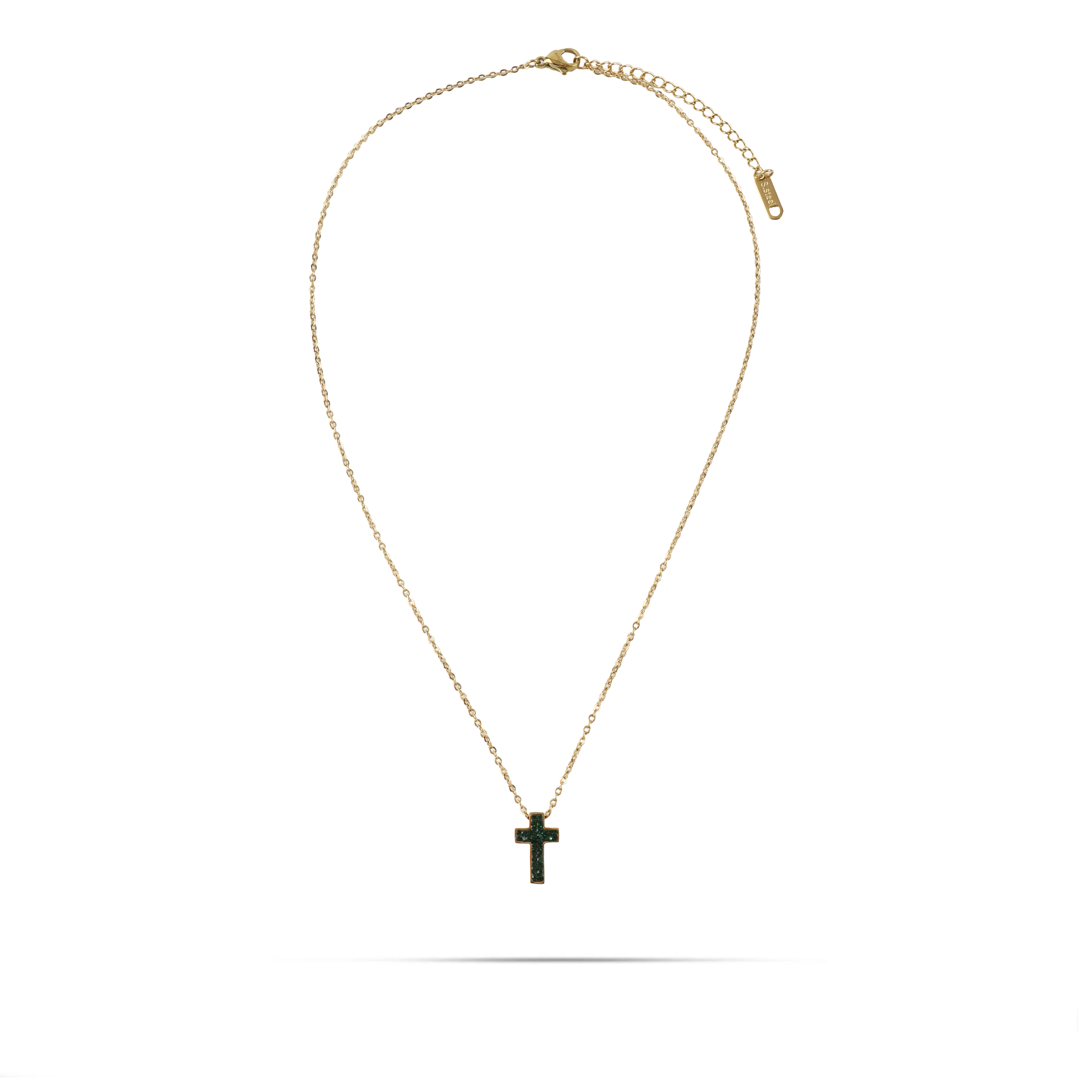 Κολιέ από ανοξείδωτο ατσάλι σε χρυσό χρώμα με μενταγιόν σταυρό διακοσμημένος με λαμπερές πέτρες Zircon. Η επιλογή του ανοξείδωτου ατσαλιού το καθιστά ανθεκτικό και κατάλληλο για καθημερινή χρήση, ενώ παράλληλα προσφέρει μια μοντέρνα αίσθηση. Αυτό το κολιέ είναι μια εκλεπτυσμένη επιλογή που μπορεί να φορεθεί μόνο του ή να συνδυαστεί με άλλα κοσμήματα για ένα εντυπωσιακό αποτέλεσμα! Επίσης μπορεί να αποτελέσει ένα εξαίσιο δώρο για τα αγαπημένα σας πρόσωπα.