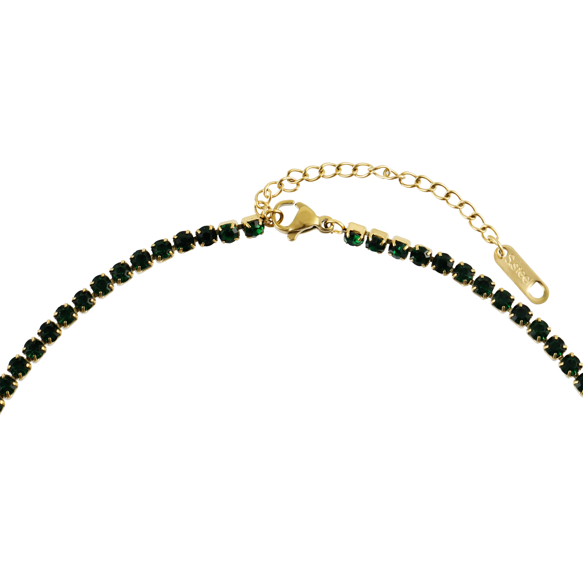 Αλυσίδα λαιμού με πέτρες ζιργκόν σε πράσινο χρώμα Mar and Mar Tennis (Green-Gold)