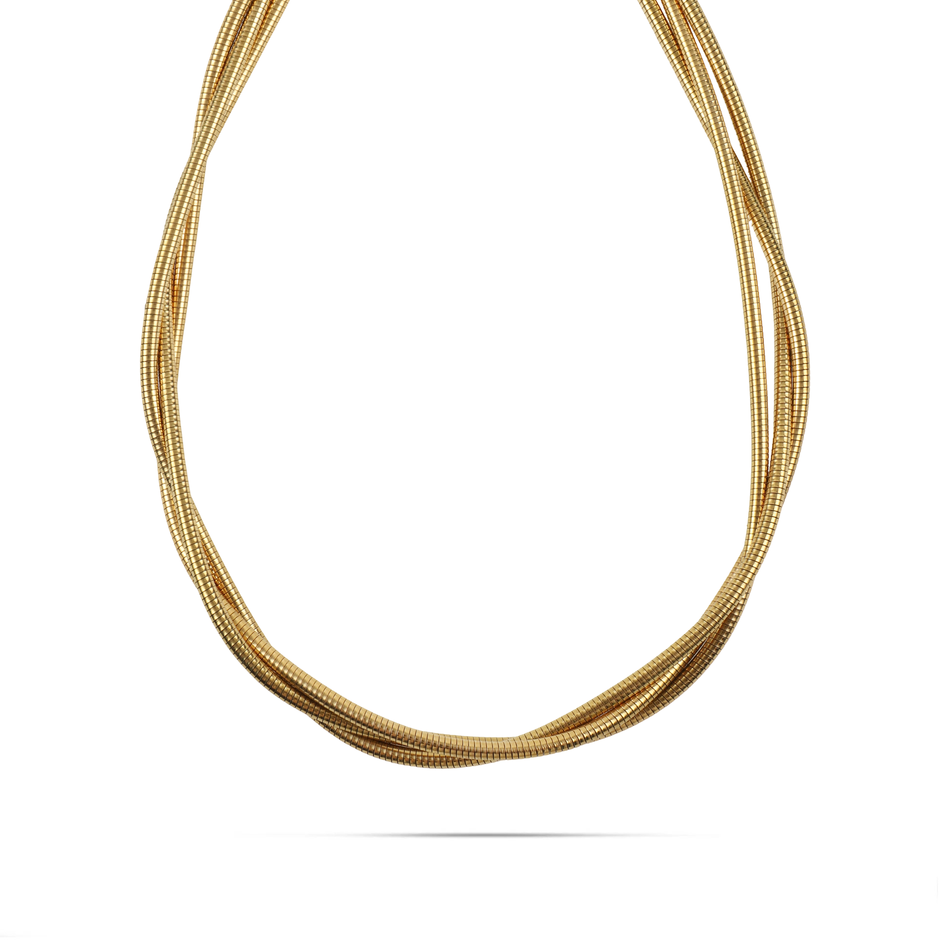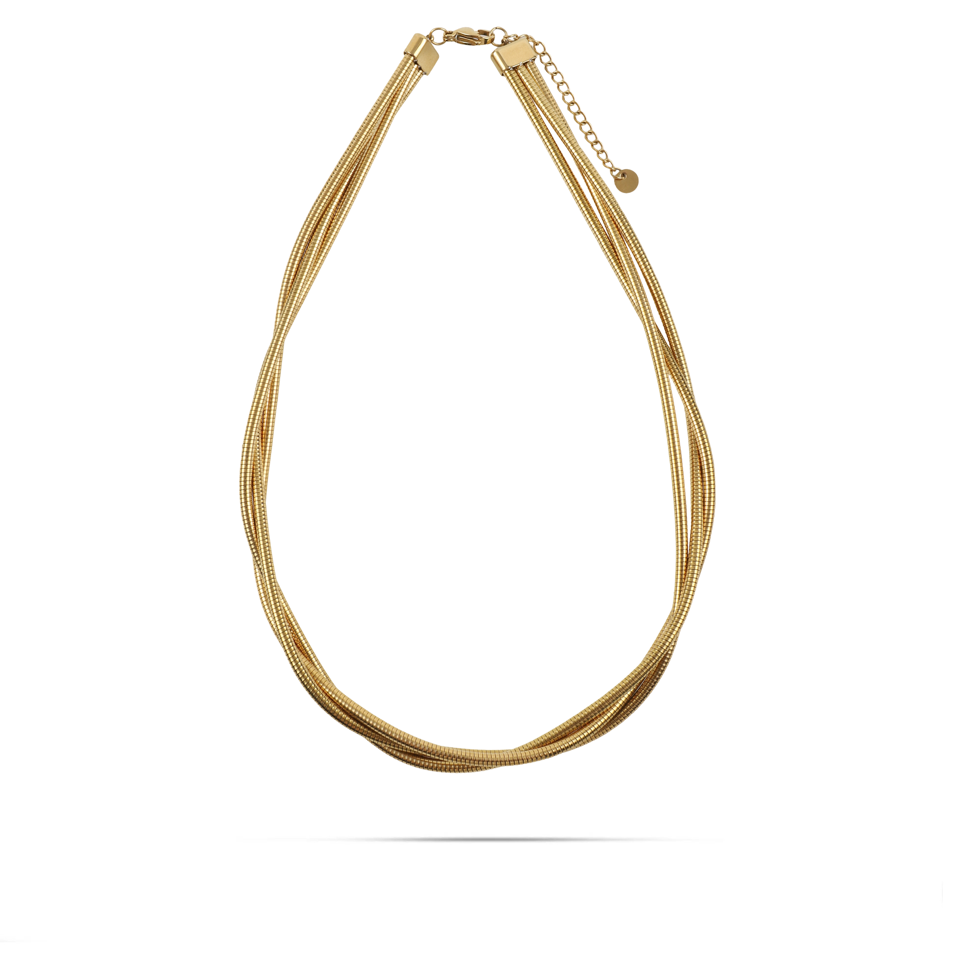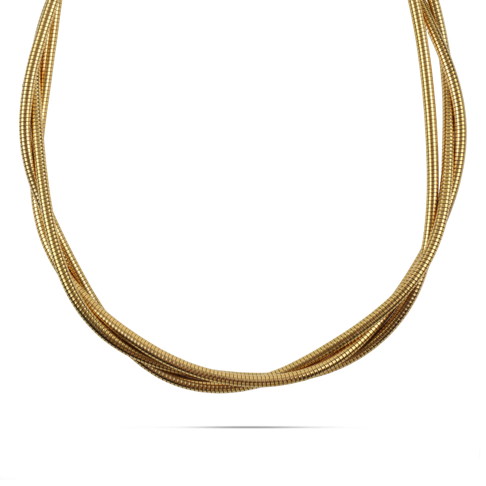 Το κολιέ Mar and Mar Aurelius σε χρυσό χρώμα αποτελεί την επιτομή της «minimal-chic» πολυτέλειας, με τον τριπλό σχεδιασμό του να αγκαλιάζει τον λαιμό με απόλυτη φινέτσα. Η σύνθεση από τρεις λεπτές, ανάγλυφες αλυσίδες τύπου «snake chain» δημιουργεί έναν διακριτικό όγκο και μια ρέουσα κίνηση που μαγνητίζει το φως με κάθε σας βήμα.