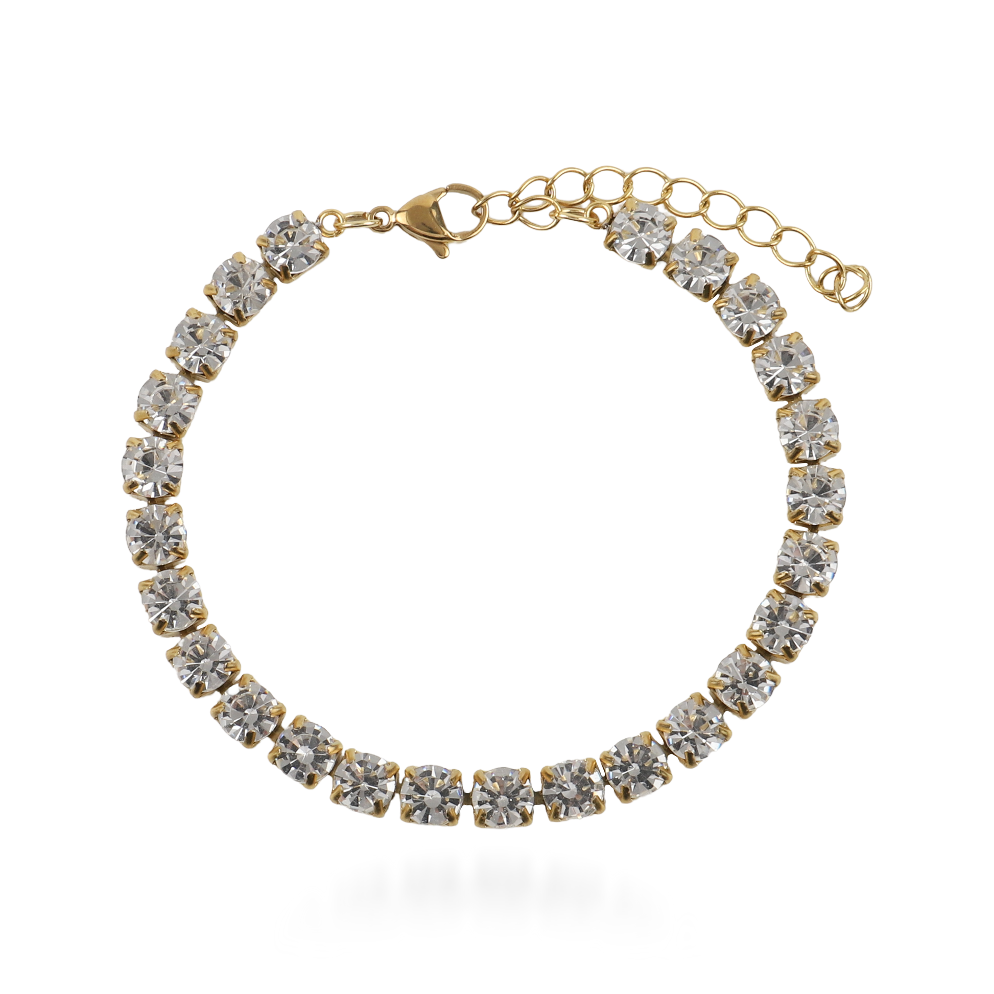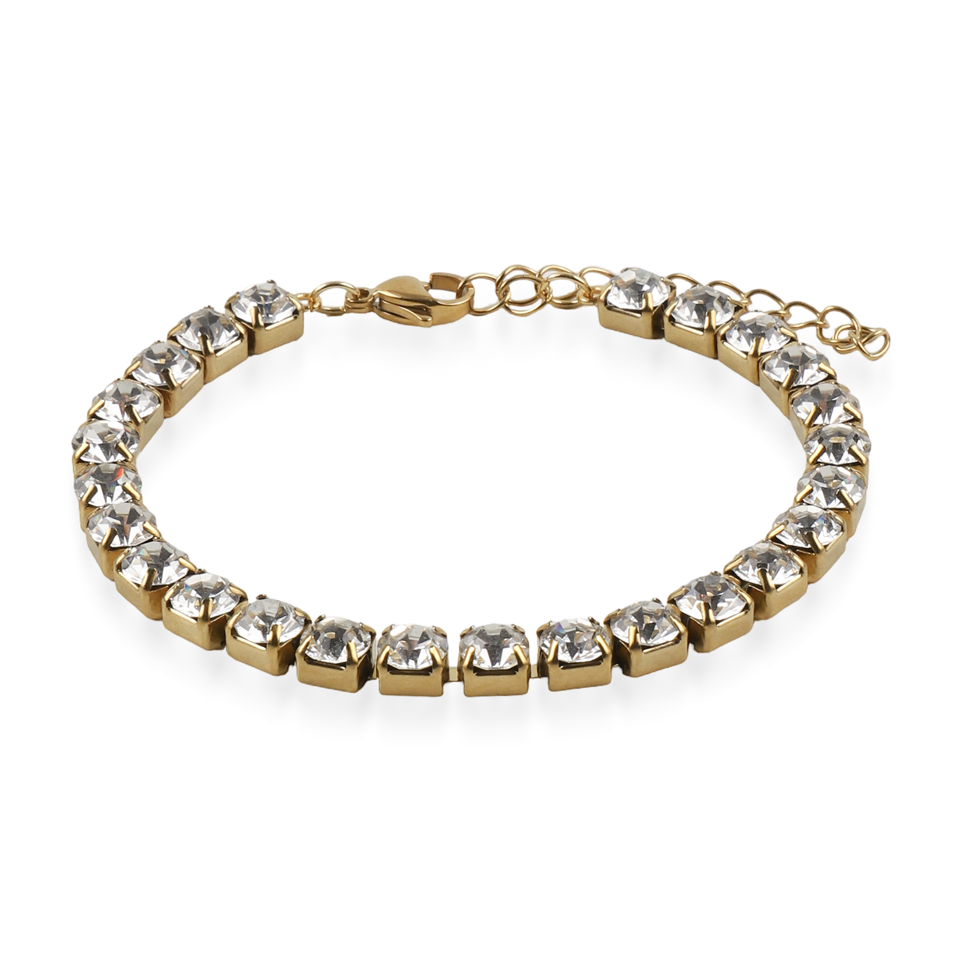 Το βραχιόλι Mar and Mar Kyon σε χρυσό χρώμα αποπνέει μια ζεστή και αρχοντική αύρα, αναδεικνύοντας μοναδικά τη λάμψη των ζιργκόν. Ο συνδυασμός του χρυσού ατσαλιού με τις αστραφτερές πέτρες δημιουργεί ένα εντυπωσιακό κόσμημα που αποπνέει αυτοπεποίθηση και σύγχρονη πολυτέλεια. Ένα απαραίτητο αξεσουάρ για τη συλλογή σας, που συνδυάζει την αντοχή του μετάλλου με τη διαχρονική γοητεία της ριβιέρας. 💎