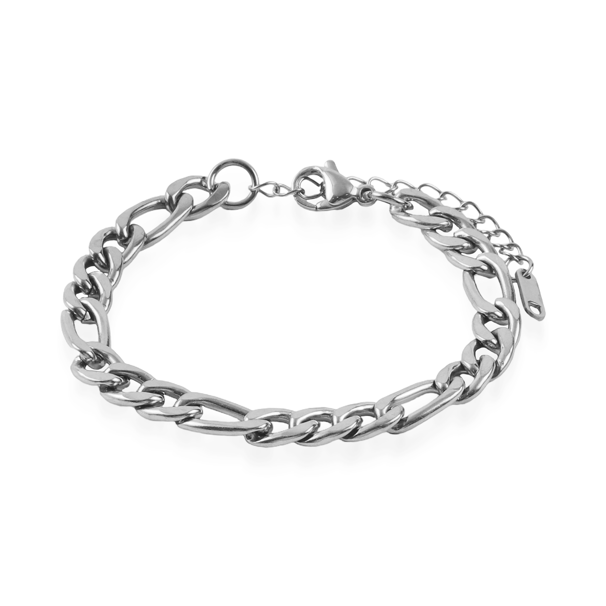 Η αλυσίδα χεριού Figaro σε ασημί χρώμα από ανοξείδωτο ατσάλι είναι ένα κλασικό και κομψό κόσμημα που ταιριάζει σε κάθε στυλ. Ο διαχρονικός σχεδιασμός Figaro, με την εναλλαγή μεγάλων και μικρών κρίκων, χαρίζει ισορροπία και κομψότητα στο βραχιόλι. Το ανοξείδωτο ατσάλι προσφέρει υψηλή αντοχή και διάρκεια ζωής, ενώ το ασημί φινίρισμα παραμένει λαμπερό και ανθεκτικό στη φθορά. Ιδανικό για καθημερινή χρήση, μπορεί να φορεθεί μόνο του ή να συνδυαστεί εύκολα με άλλα κοσμήματα.