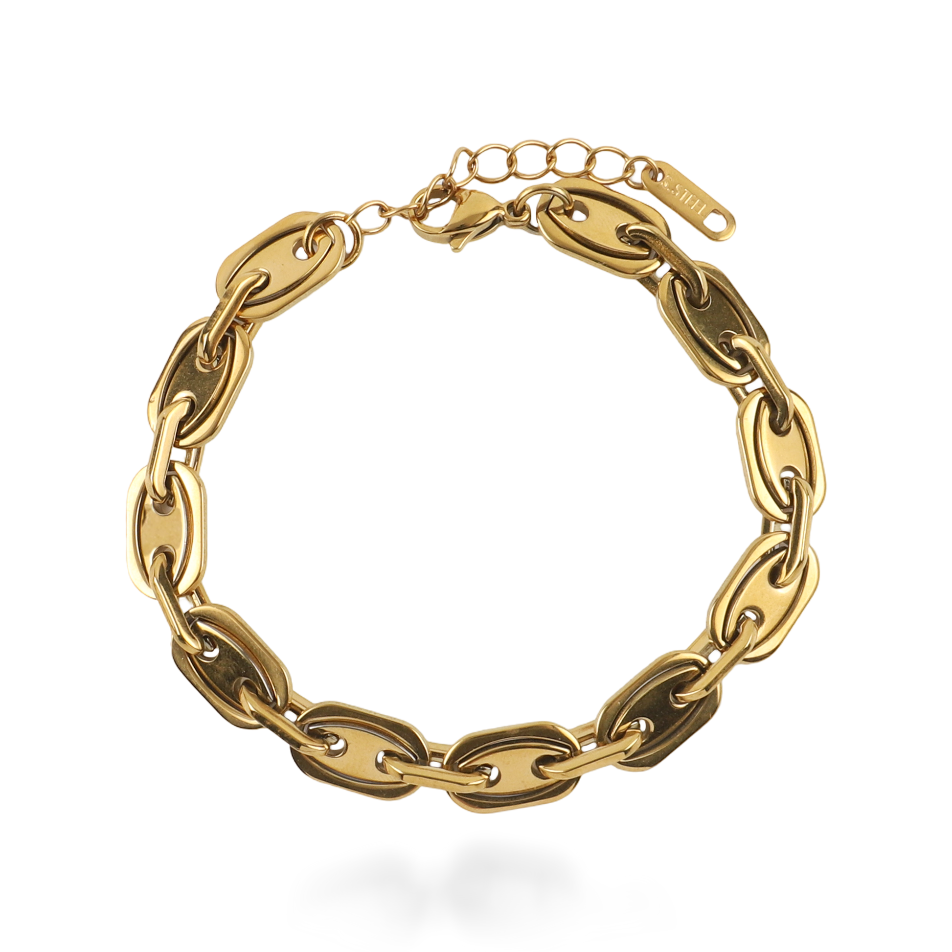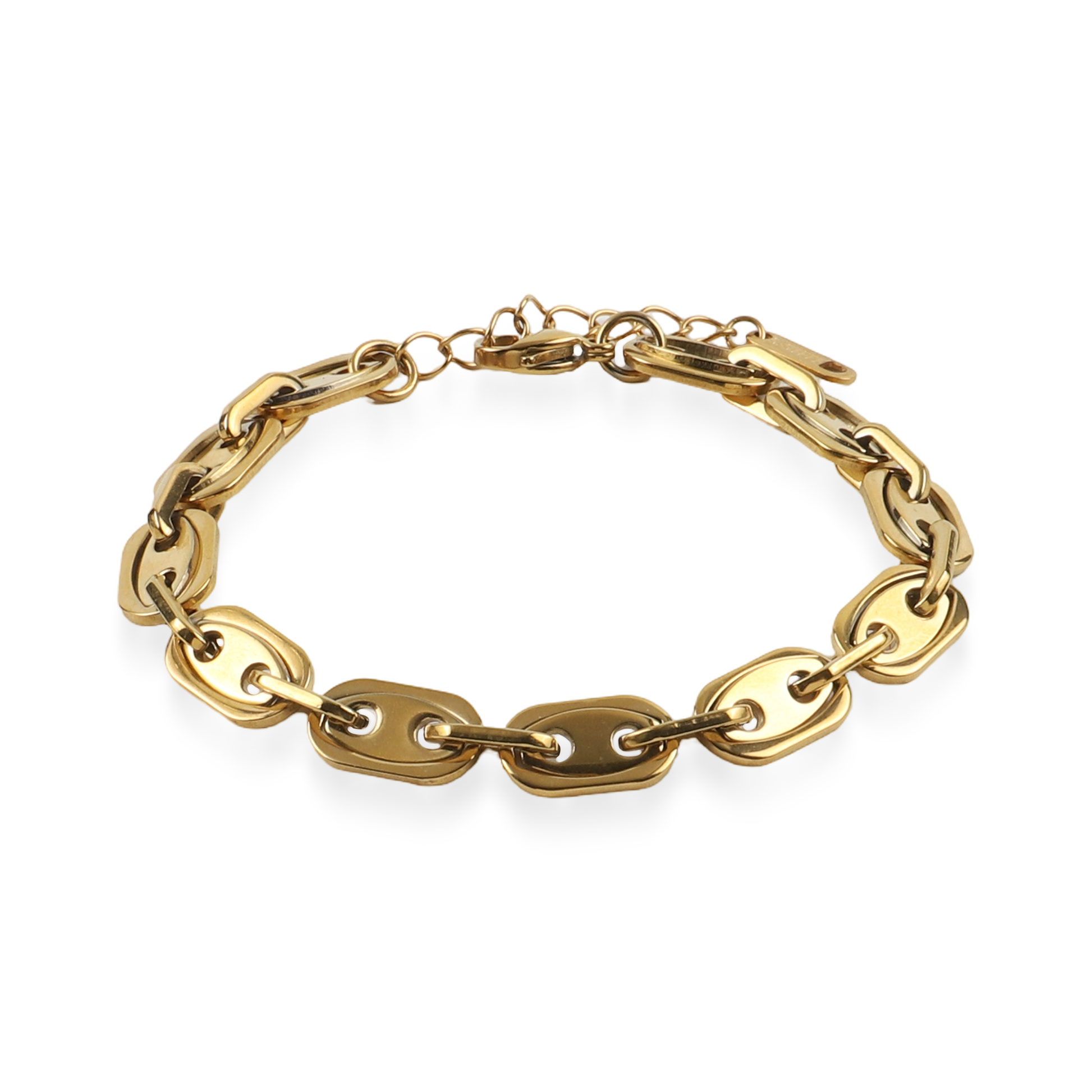 Το βραχιόλι Mar and Mar Marina σε χρυσό χρώμα αποτελεί την επιτομή του σύγχρονου «nautical chic», με τον εμβληματικό σχεδιασμό των συνδέσμων του να θυμίζει τους κρίκους «anchor chain». Οι επίπεδοι, οβάλ σύνδεσμοι με τη λεία, καθρεπτίζουσα επιφάνεια δημιουργούν μια συνεχή ροή λάμψης που αγκαλιάζει τον καρπό με απόλυτη φινέτσα.