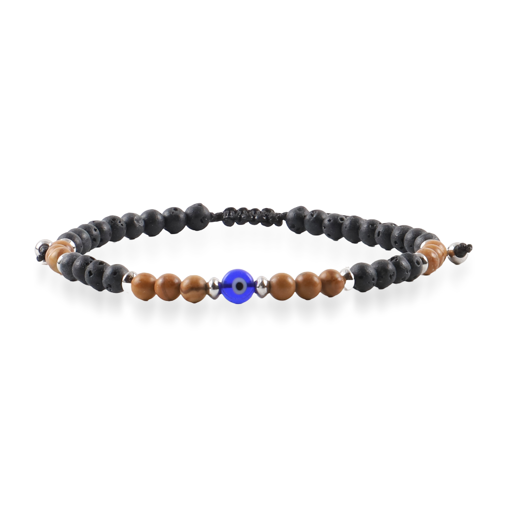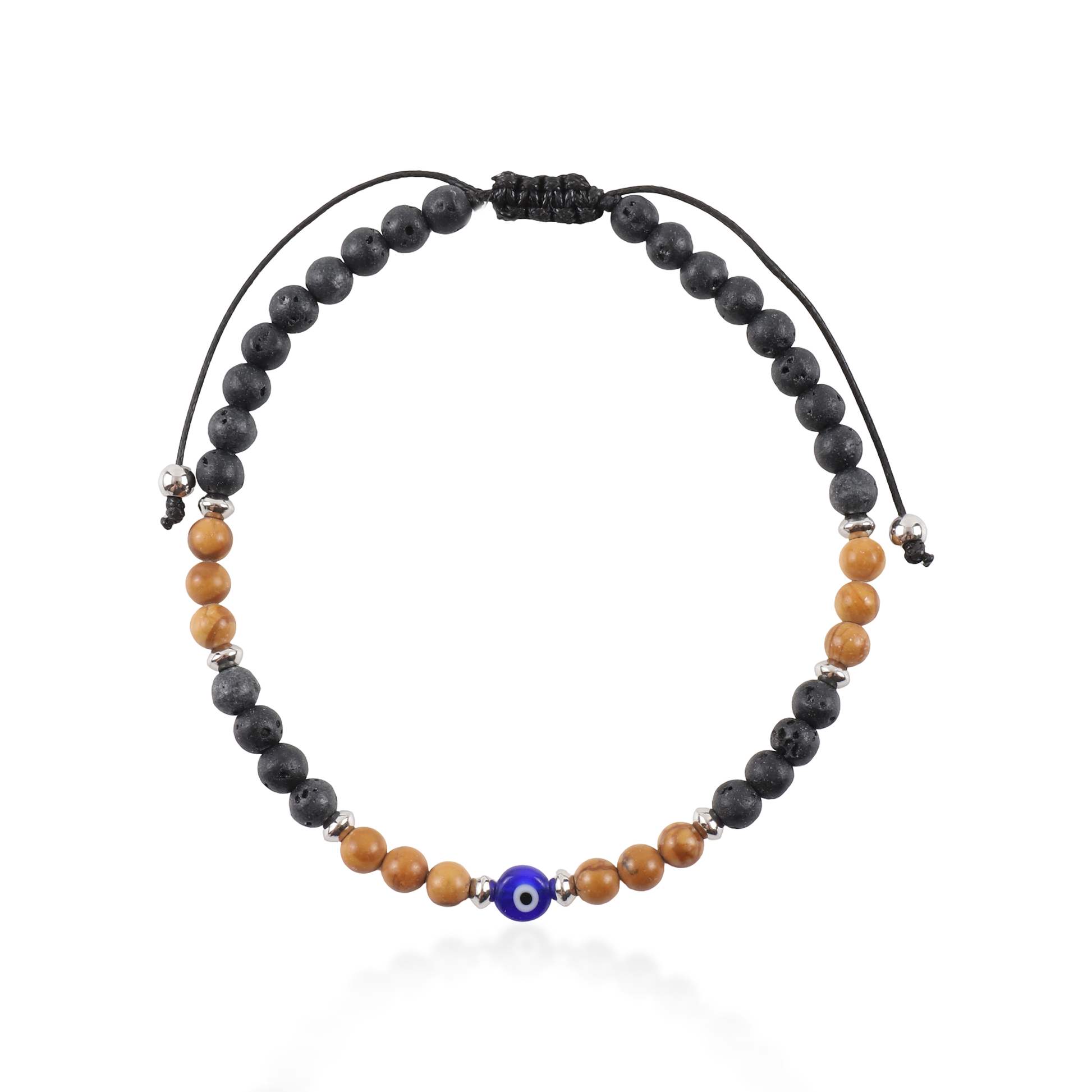 Ανδρικό χειροποίητο βραχιόλι με ματάκι Μουράνο Mar and Mar Brett με φυσικές ορυκτές πέτρες Ίασπη, Λάβα και Αιματίτης