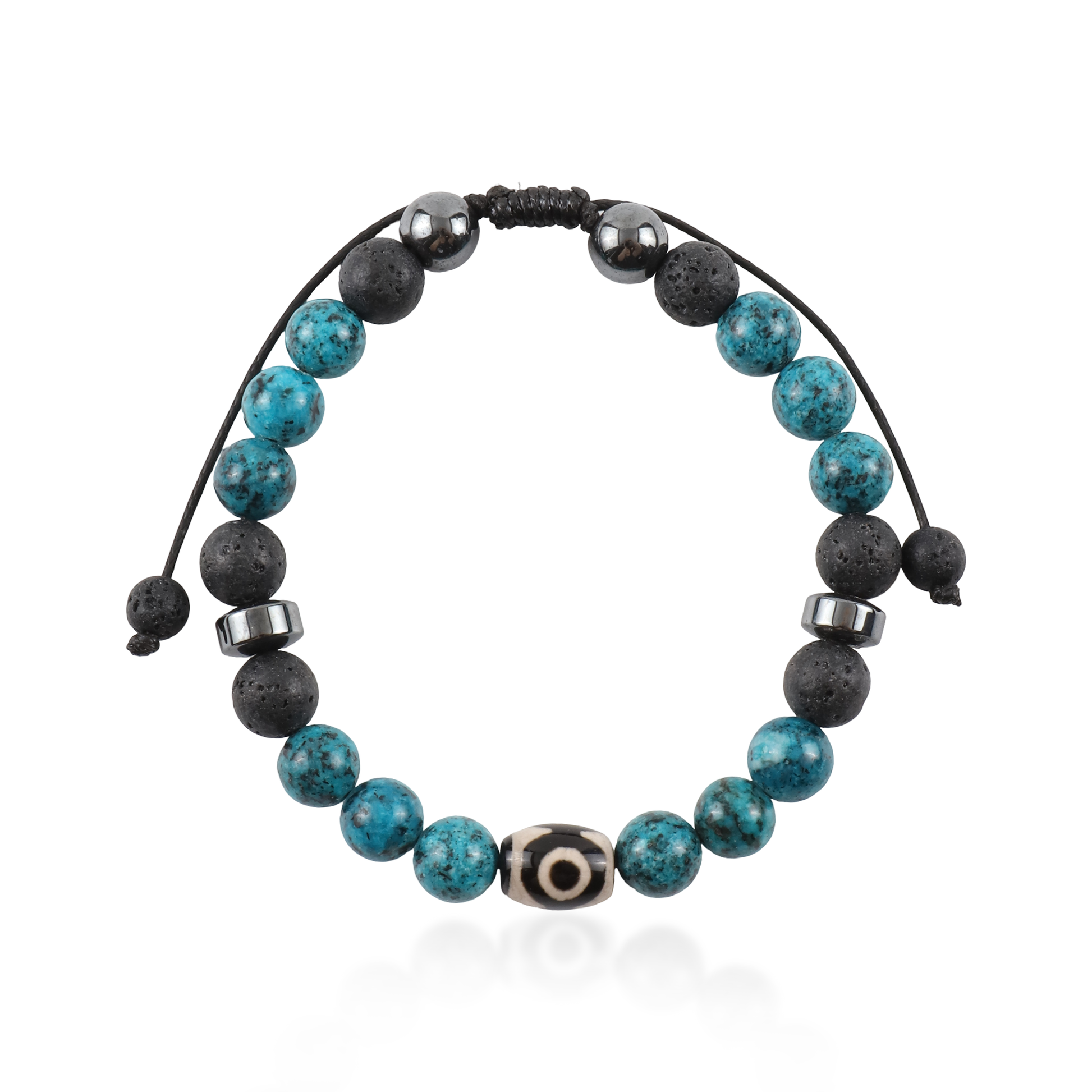Ανδρικό χειροποίητο βραχιόλι με ματάκι Mar and Mar Elmer με φυσικές ορυκτές πέτρες Χαολίτη, Λάβας και Αιματίτη