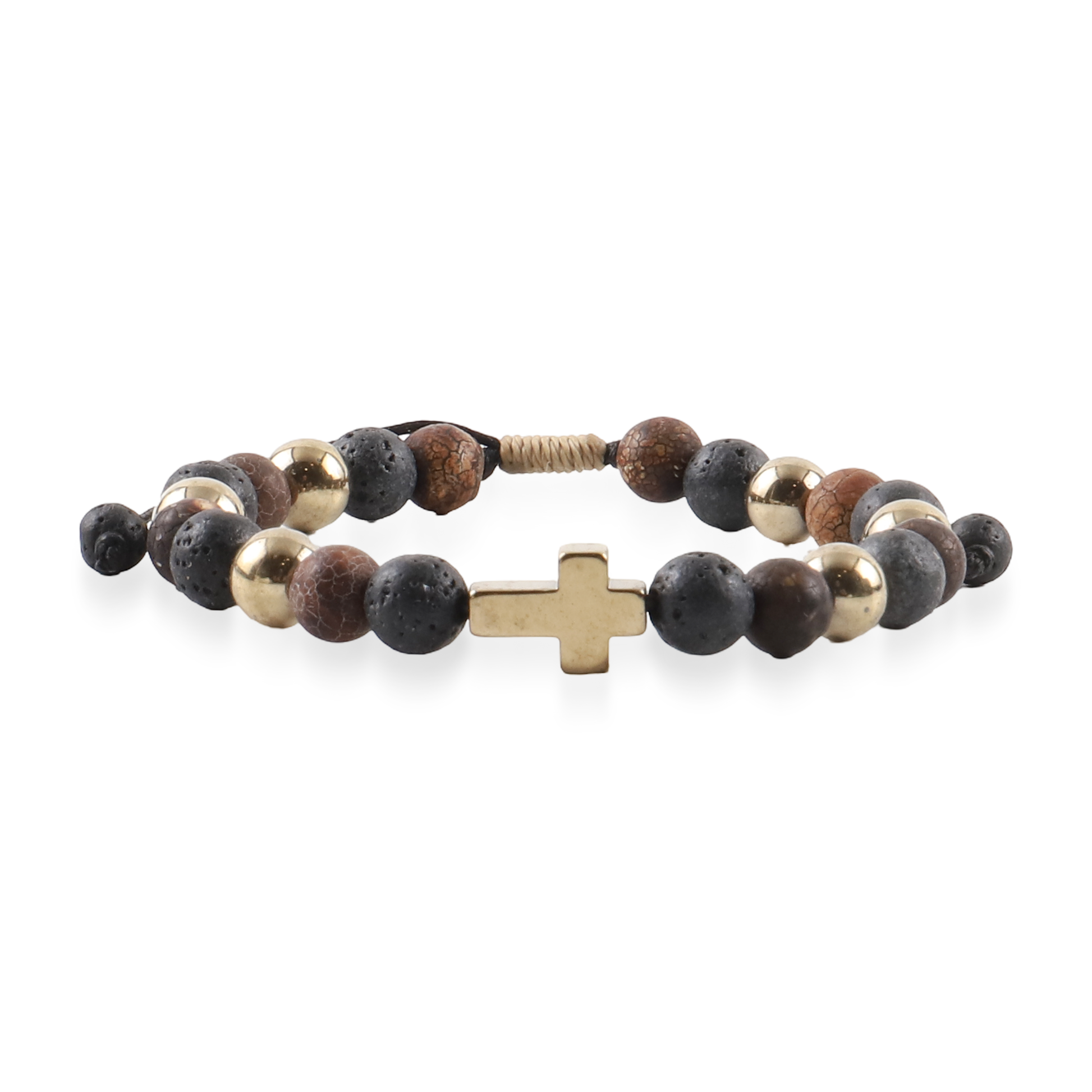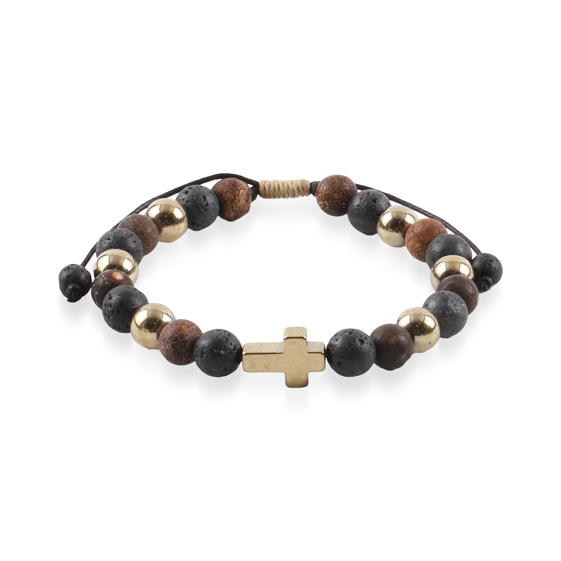 Ανδρικό χειροποίητο βραχιόλι με σταυρό Mar and Mar Clifford με φυσικές ορυκτές πέτρες Χαολίτη, Ίασπη, Λάβα και Ανοξείδωτο Ατσάλι