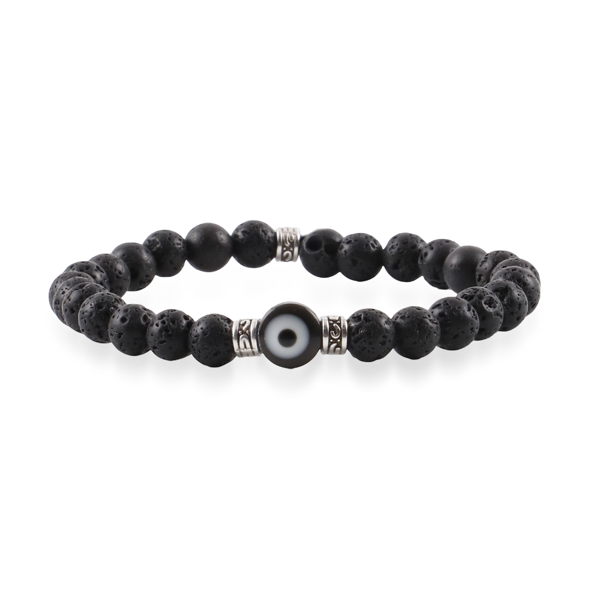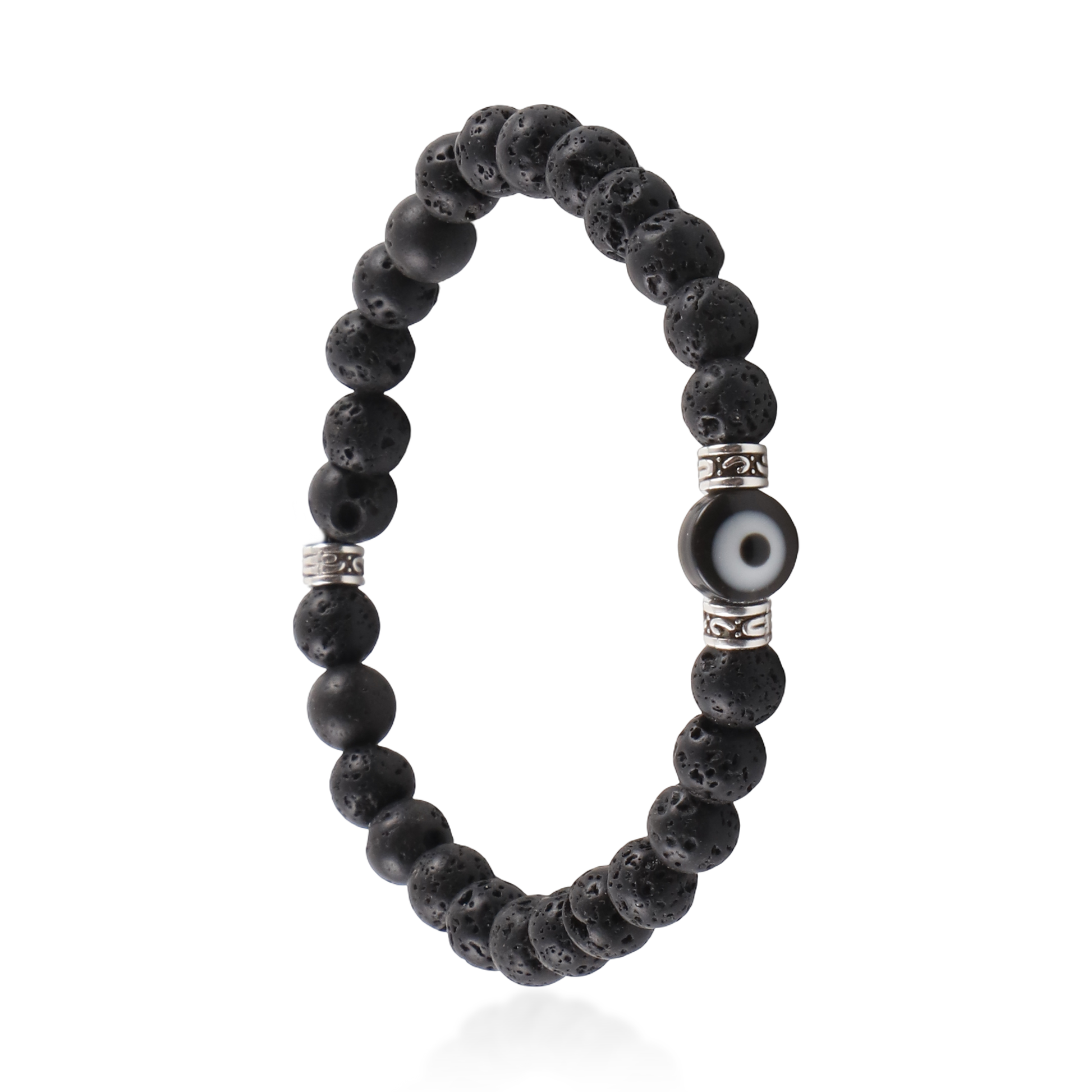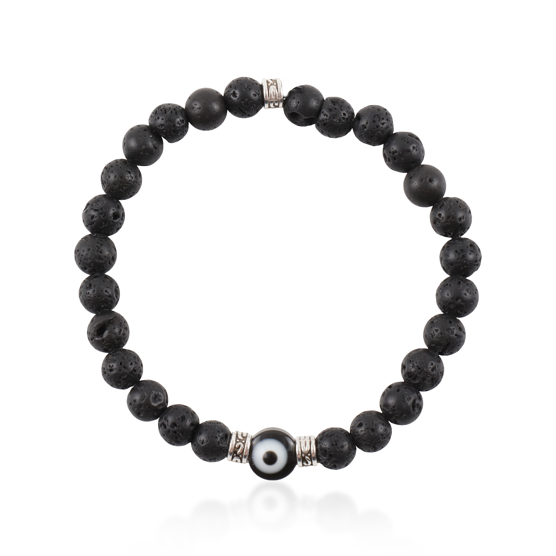 Ανδρικό χειροποίητο βραχιόλι Mar and Mar Alex με φυσικές ορυκτές πέτρες Λάβας, Αιματίτη και ματάκι Μουράνο