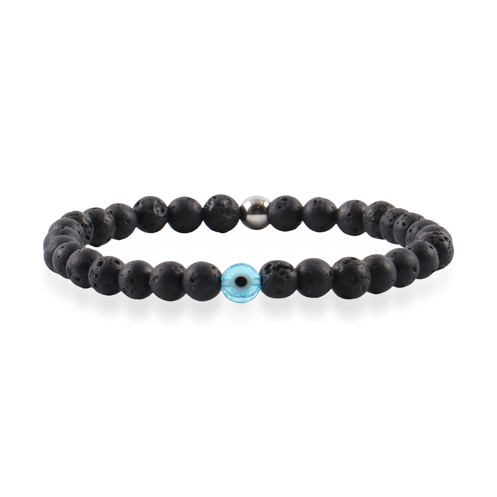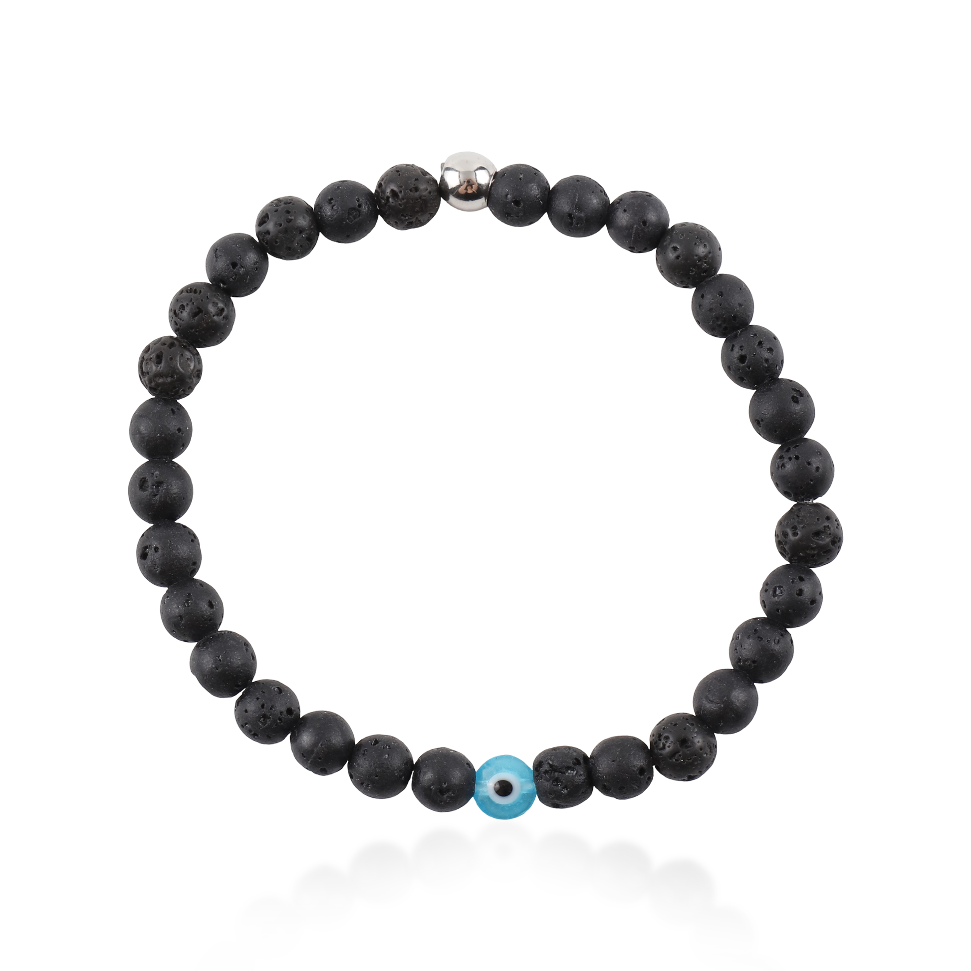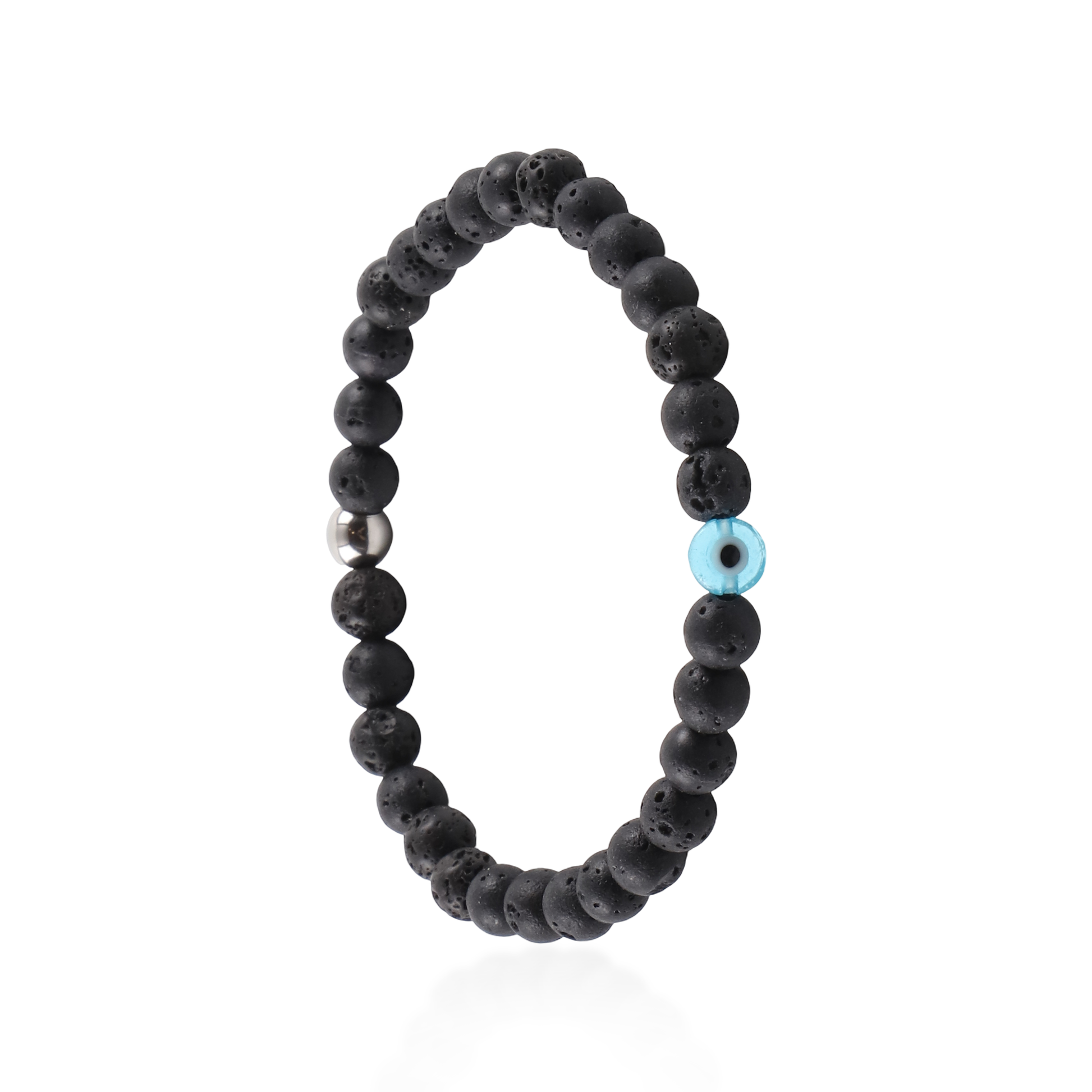 Ανδρικό χειροποίητο βραχιόλι Mar and Mar Cody με φυσικές ορυκτές πέτρες Λάβας, Αιματίτη και ματάκι Μουράνο