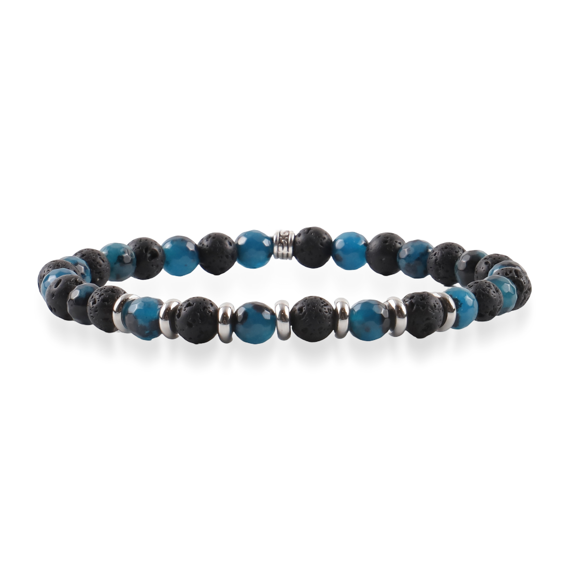 Ανδρικό χειροποίητο βραχιόλι Mar and Mar Gordon με φυσικές ορυκτές πέτρες Ακουαμαρίνα, Λάβα και Αιματίτη