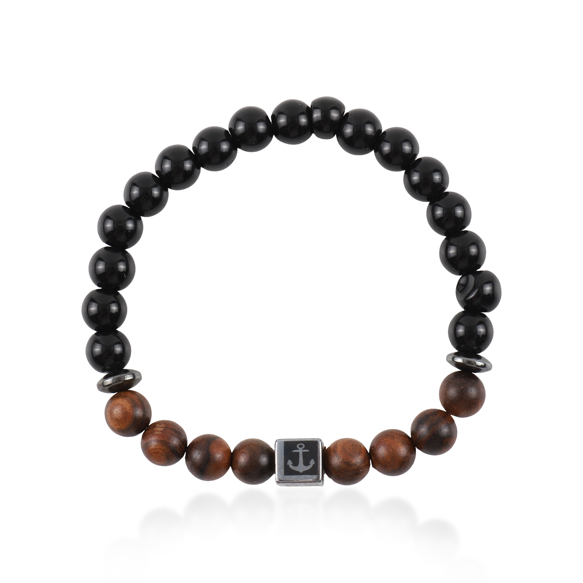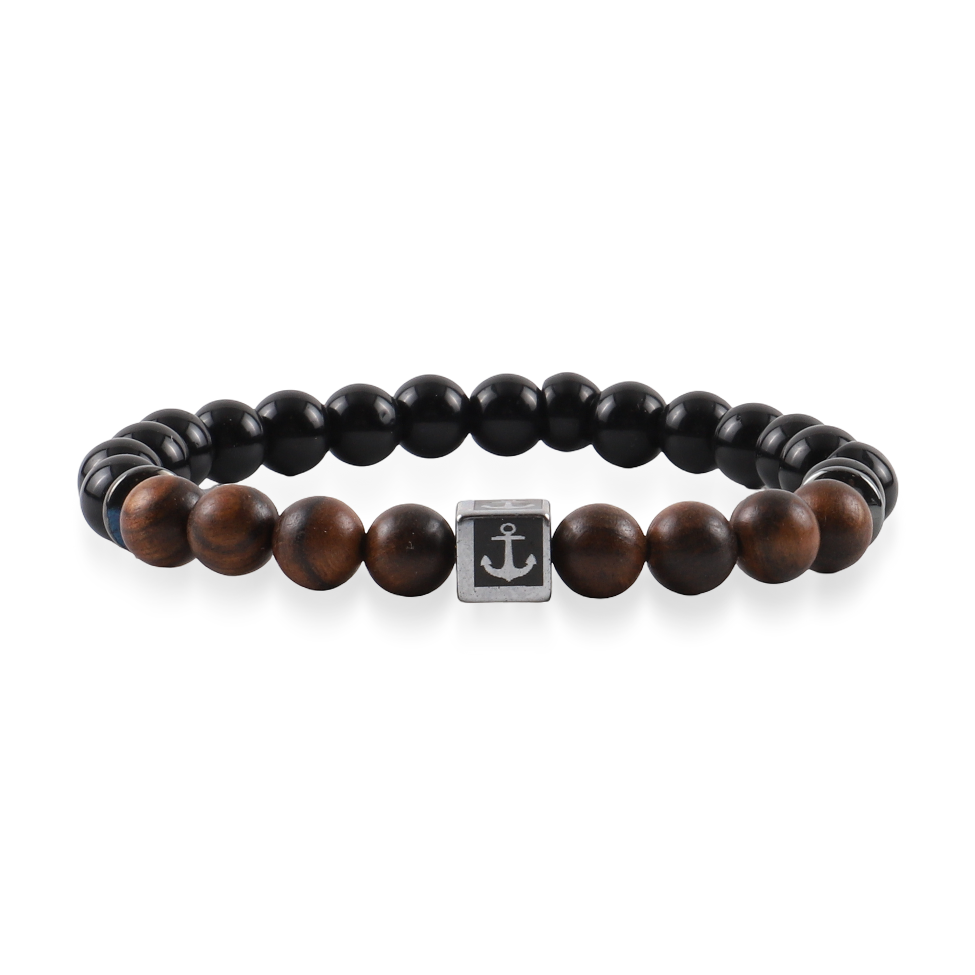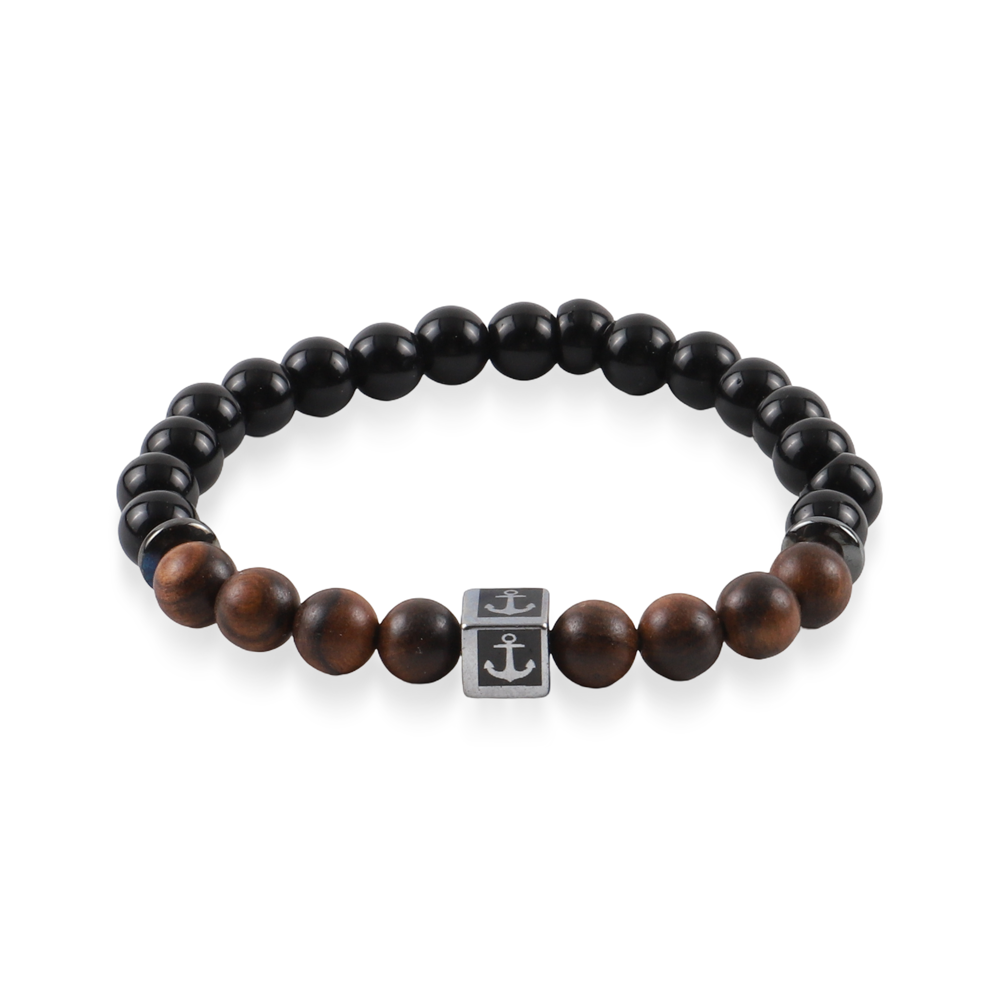 Ανδρικό χειροποίητο βραχιόλι με άγκυρα Mar and Mar Harold με φυσικές ορυκτές πέτρες Όνυχα, Αιματίτη και Φυσικό Ξύλου