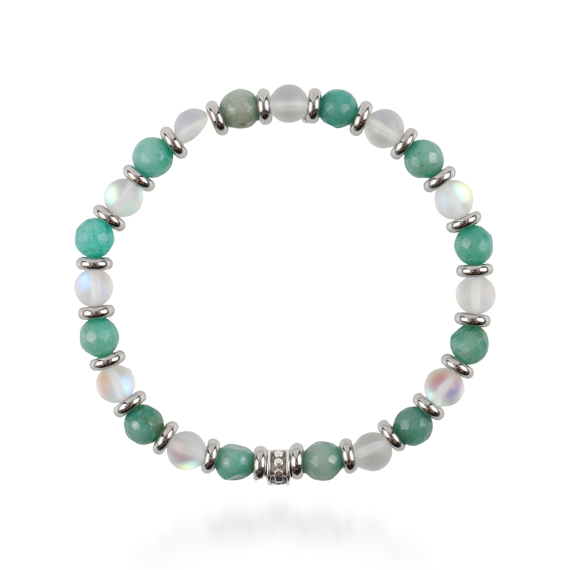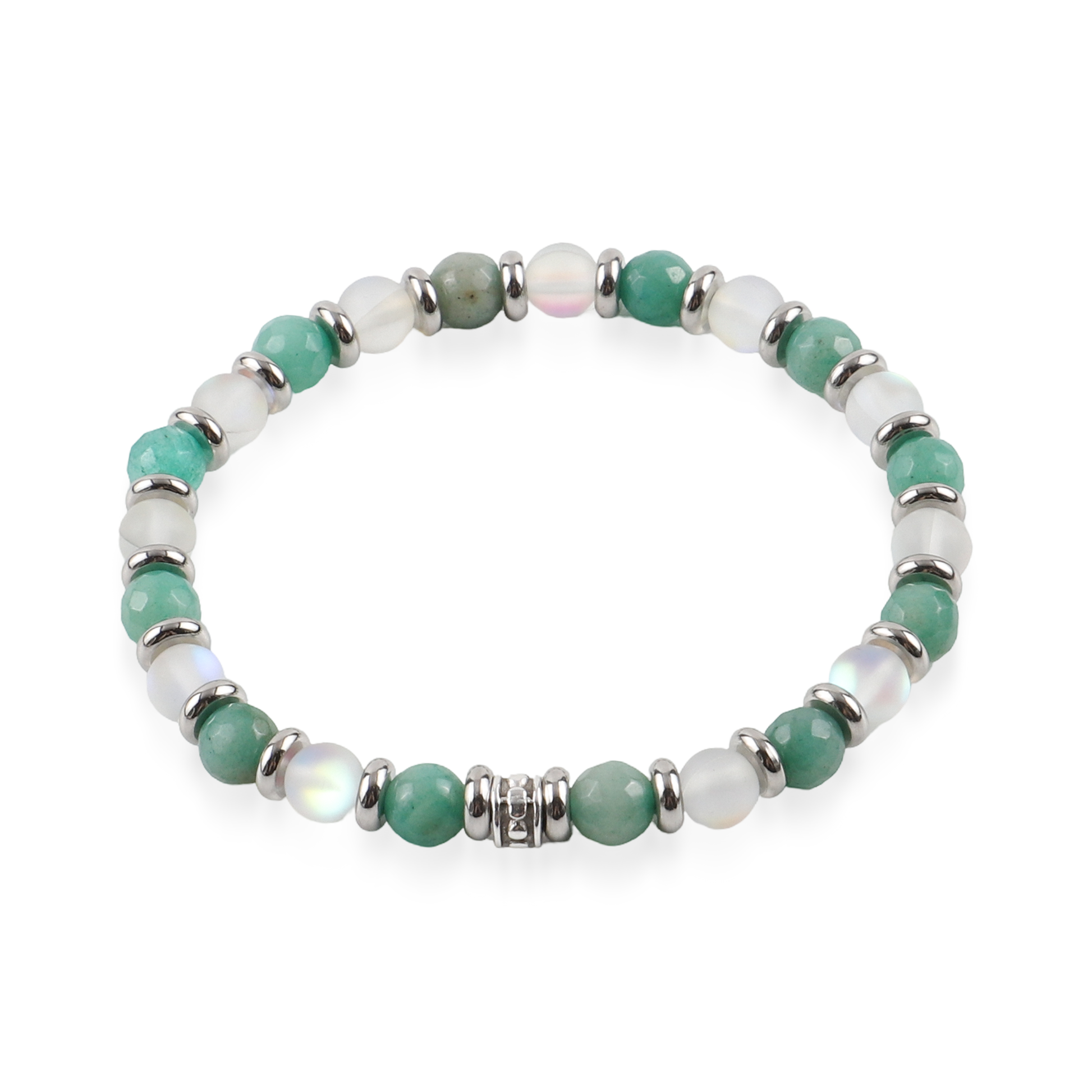 Ανδρικό χειροποίητο βραχιόλι Mar and Mar Vince με φυσικές ορυκτές πέτρες Σπεκτρολίτη, Χαλαζία και ανοξείδωτο ατσάλι