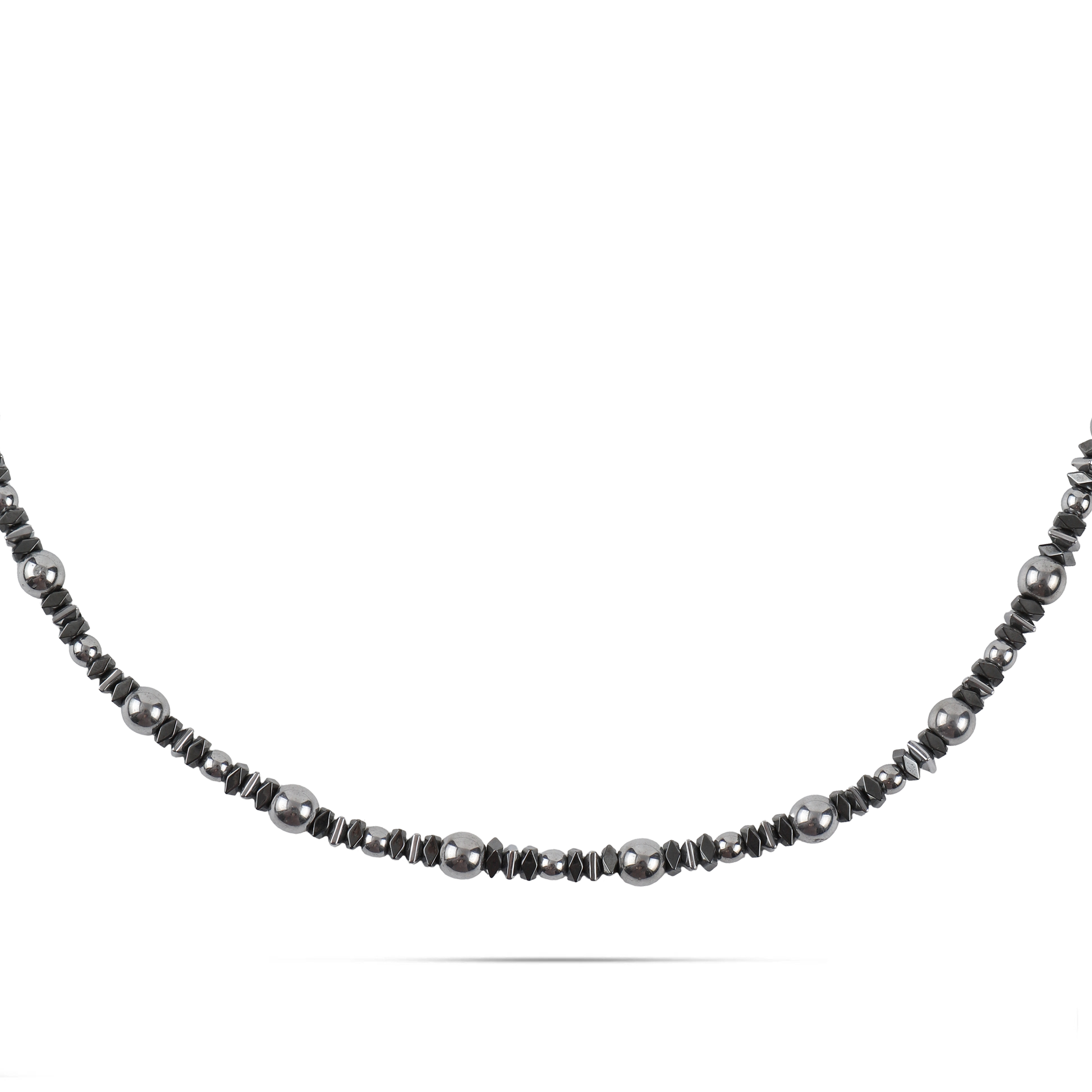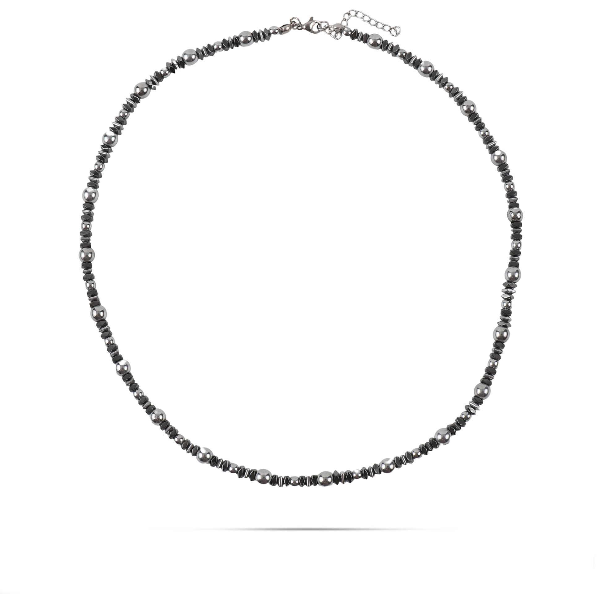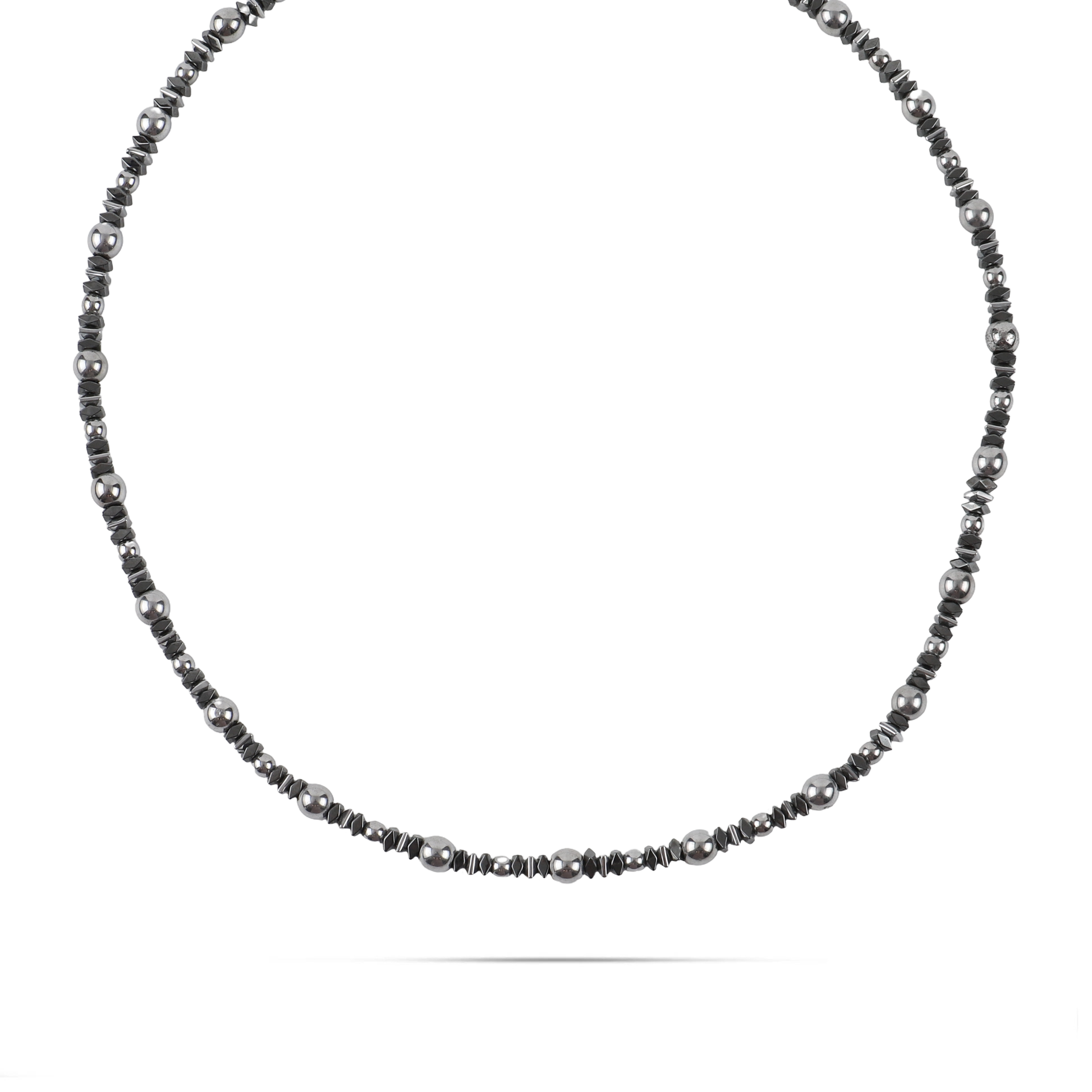 Αναδείξτε το στυλ σας με αυτό το ανδρικό χειροποίητο κολιέ από φυσικές ορυκτές πέτρες αιματίτη. Η μεταλλική γυαλάδα του αιματίτη προσδίδει μια αίσθηση δυναμισμού και αυτοπεποίθησης, δημιουργώντας ένα look που συνδυάζει κομψότητα και αρρενωπότητα. Κατασκευασμένο με προσοχή στη λεπτομέρεια και ανθεκτικά υλικά, αποτελεί ένα διαχρονικό αξεσουάρ που μπορεί να φορεθεί εύκολα τόσο σε καθημερινές όσο και σε πιο ιδιαίτερες εμφανίσεις. Ιδανικό για τον σύγχρονο άνδρα που εκτιμά τη διακριτική πολυτέλεια και το αυθεντικό στυλ.