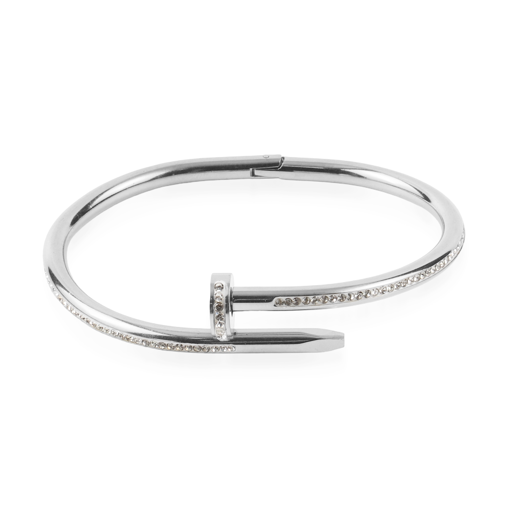 Βραχιόλι χειροπέδα με πέτρες ζιργκόν Mar and Mar Nail Sparkle Silver από ανοξείδωτο ατσάλι