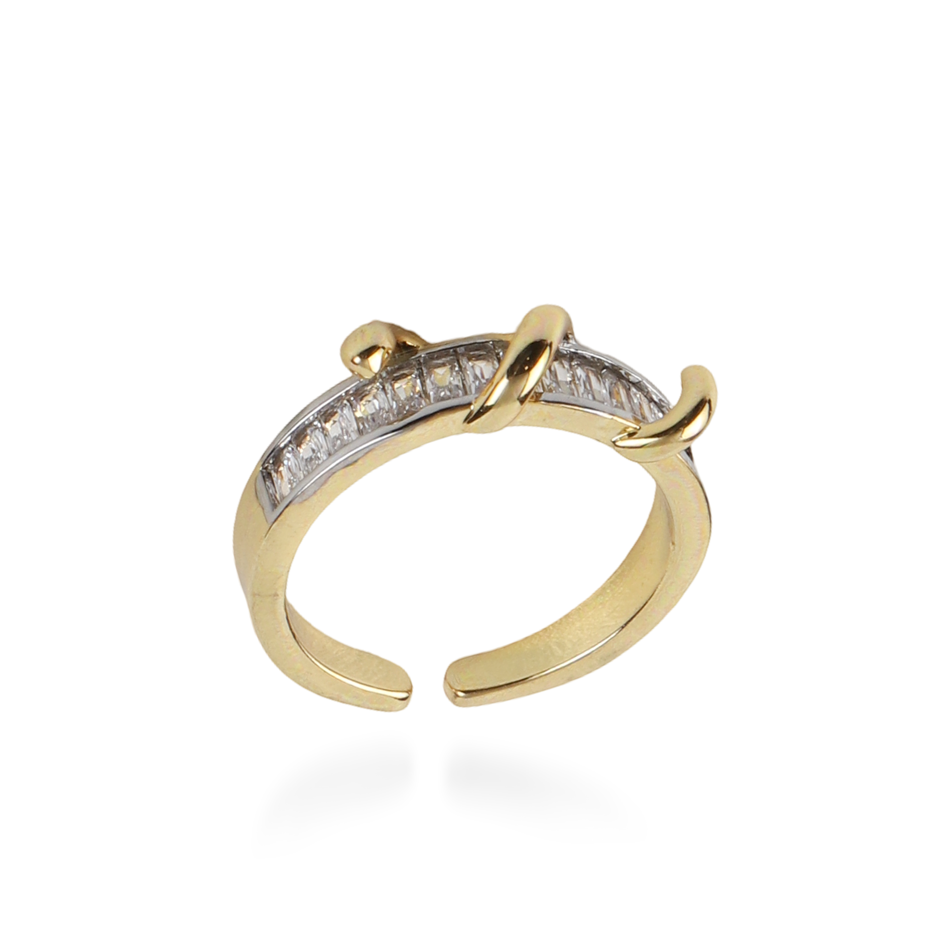 Το γυναικείο δαχτυλίδι Mar and Mar Snake Sparkle από ορείχαλκο συνδυάζει χρυσή επιφάνεια με χρυσό φίδι, δημιουργώντας ένα μοναδικό και εντυπωσιακό αποτέλεσμα. Οι λευκές πέτρες ζιργκόν προσδίδουν λάμψη και κομψότητα, ενώ το ιδιαίτερο σχέδιο του φιδιού χαρίζει χαρακτήρα και στυλ. Ένα statement δαχτυλίδι που ξεχωρίζει σε κάθε εμφάνιση και προσθέτει μια δόση εκλεπτυσμένης πολυτέλειας. ✨💍