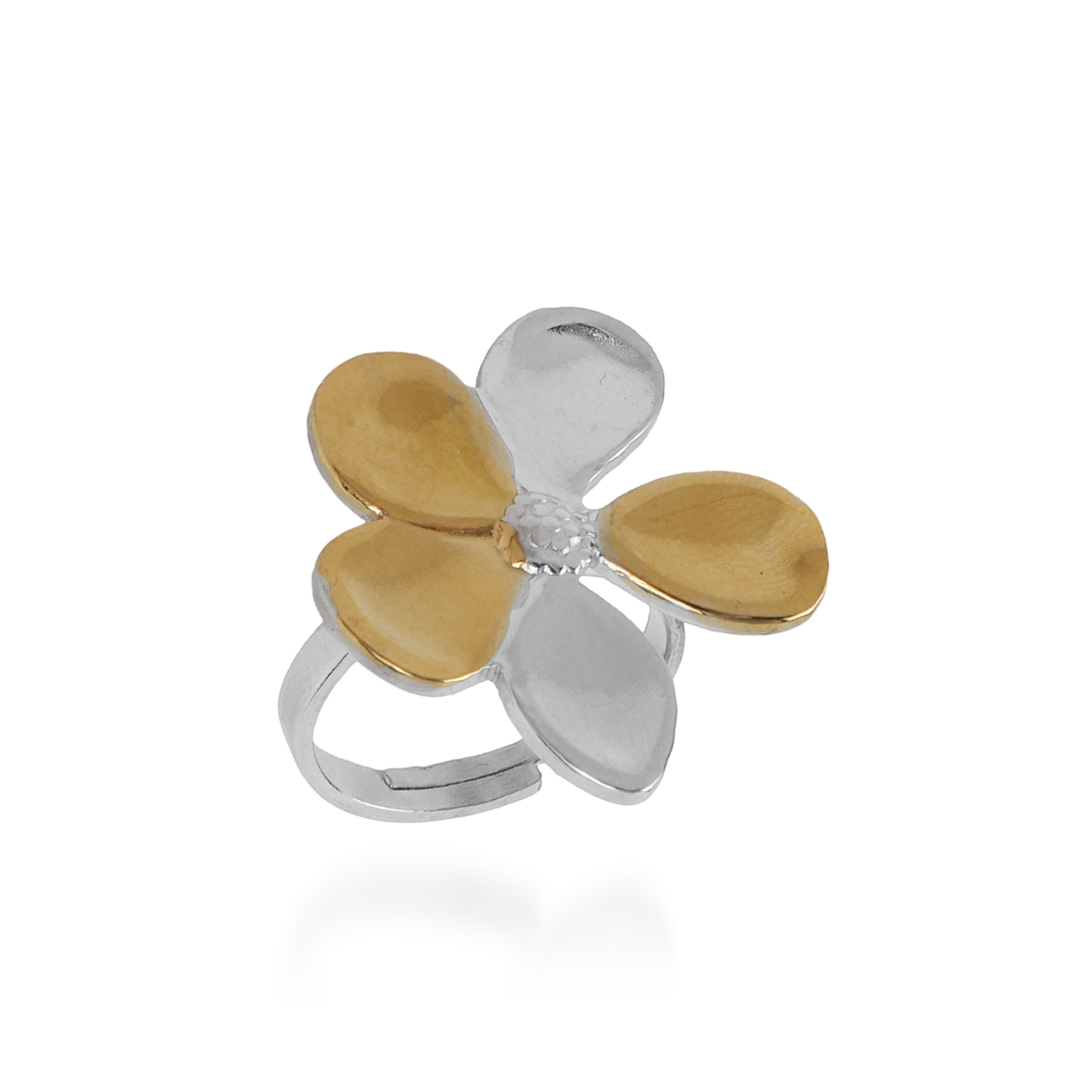 Απογειώστε τη θηλυκότητα και τη λάμψη σας με το γυναικείο δαχτυλίδι Mar and Mar Floralis. Το εντυπωσιακό του σχέδιο λουλουδιού συνδυάζει αρμονικά χρυσές και ασημένιες αποχρώσεις, προσφέροντας μια παιχνιδιάρικη και κομψή αντίθεση.Η προσεγμένη κατασκευή του και η μίξη υλικών εξασφαλίζουν ανθεκτικότητα και μακροχρόνια λάμψη, ενώ το μοναδικό του σχέδιο προσθέτει μια εκλεπτυσμένη και φινέτσα πινελιά σε κάθε εμφάνιση. Ιδανικό τόσο για καθημερινή χρήση όσο και για ιδιαίτερες στιγμές, είναι ένα δαχτυλίδι που ολοκληρώνει κάθε look με κομψότητα και θηλυκή γοητεία.