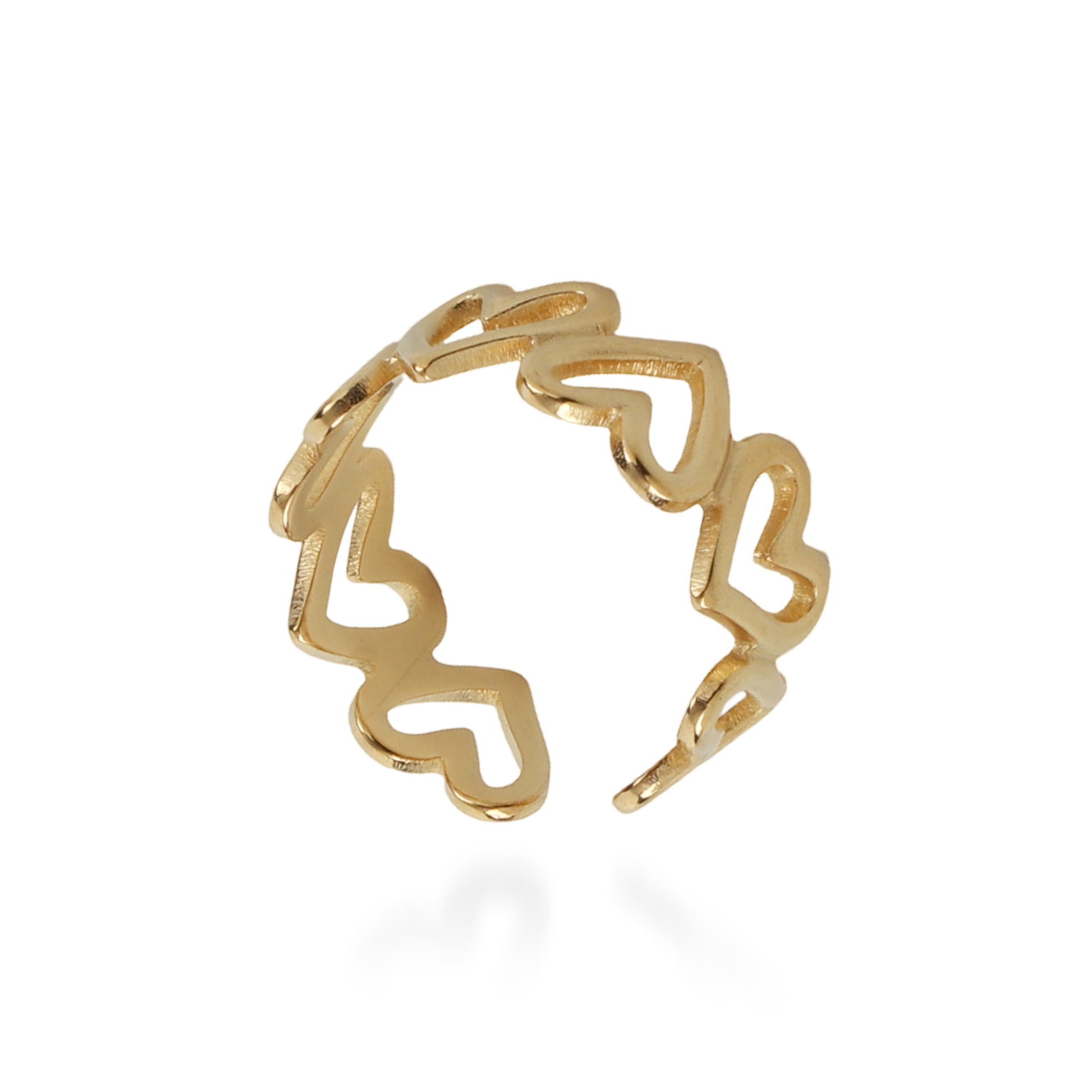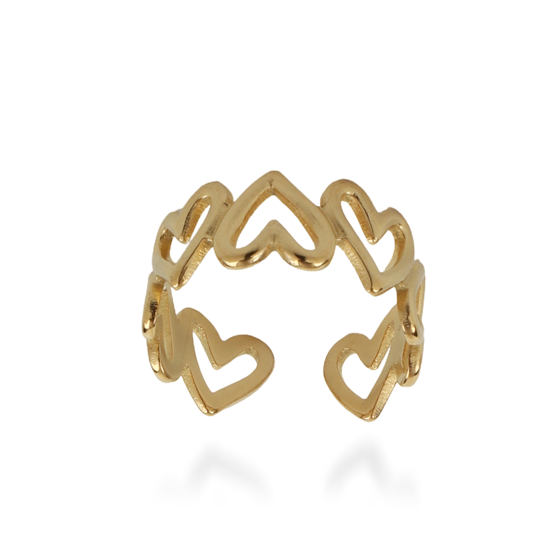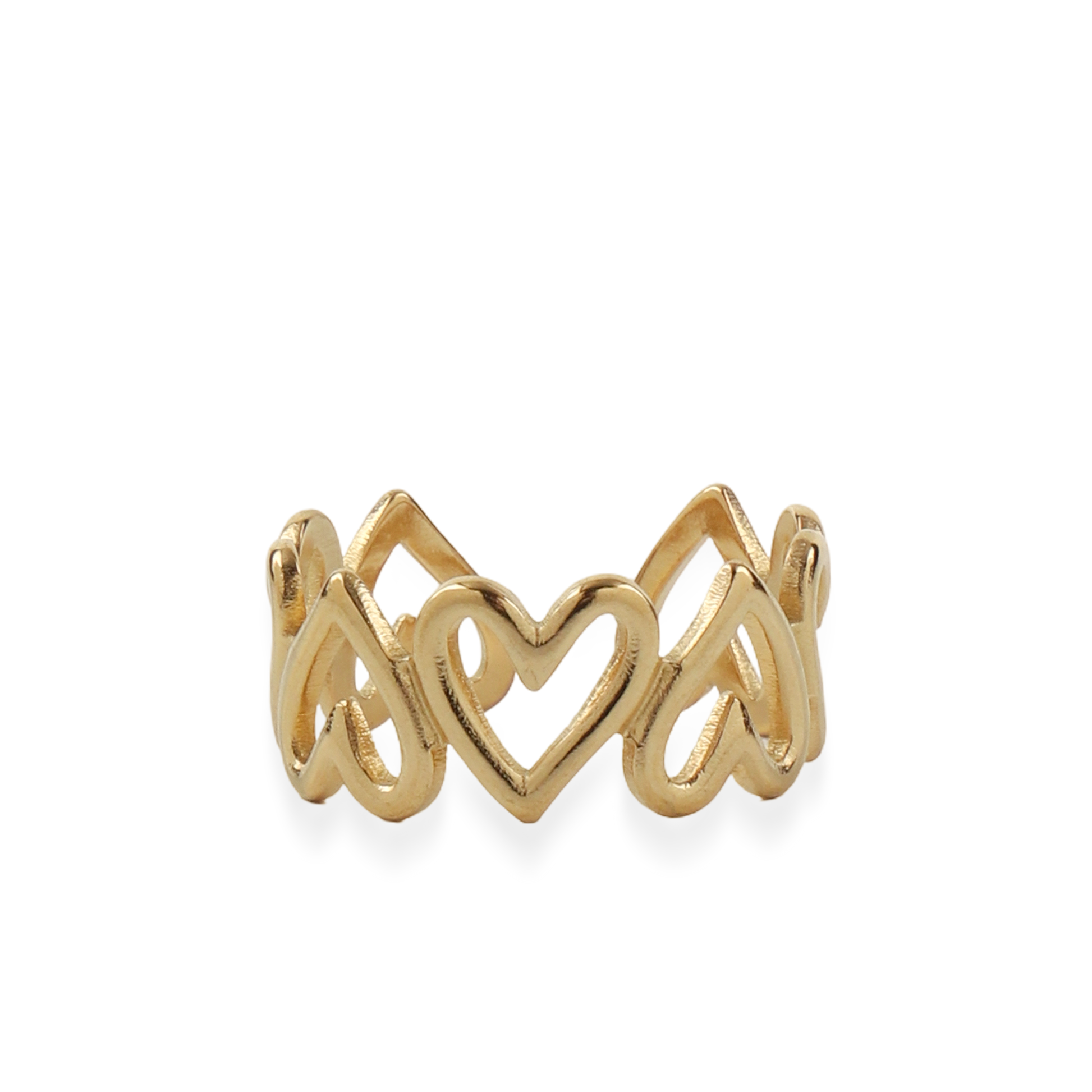 Απογειώστε το στυλ σας με αυτό το εκλεπτυσμένο γυναικείο δαχτυλίδι με καρδιές από ανοξείδωτο ατσάλι της συλλογής Mar and Mar, σε λαμπερή χρυσή απόχρωση. Ο συνδυασμός ρομαντισμού και σύγχρονης αισθητικής χαρίζει στο δαχτυλίδι μια ξεχωριστή γοητεία που αναδεικνύει τη θηλυκότητά σας σε κάθε περίσταση — από τις casual καθημερινές στιγμές έως τις πιο κομψές βραδινές εξόδους. Το ανθεκτικό ανοξείδωτο ατσάλι προσφέρει μακροχρόνια λάμψη και αντοχή, ενώ ο χρυσός τόνος του προσδίδει διαχρονική πολυτέλεια. Ένα κόσμημα που εκφράζει αγάπη, κομψότητα και ρομαντισμό, ολοκληρώνοντας ιδανικά κάθε σας εμφάνιση.