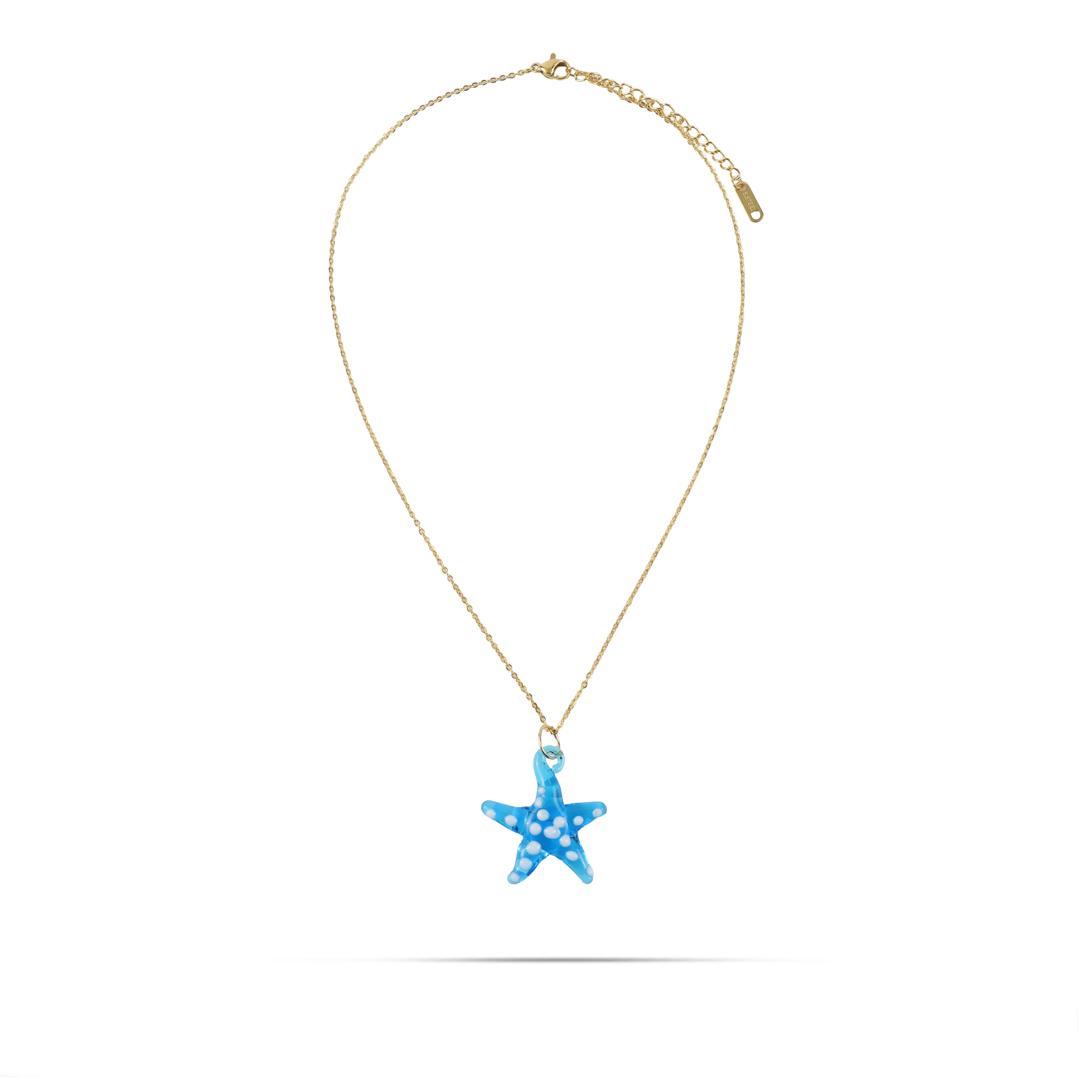 Γυναικείο κολιέ με αστερία από Μουράνο Mar and Mar Starfish Blue από ανοξείδωτο ατσάλι