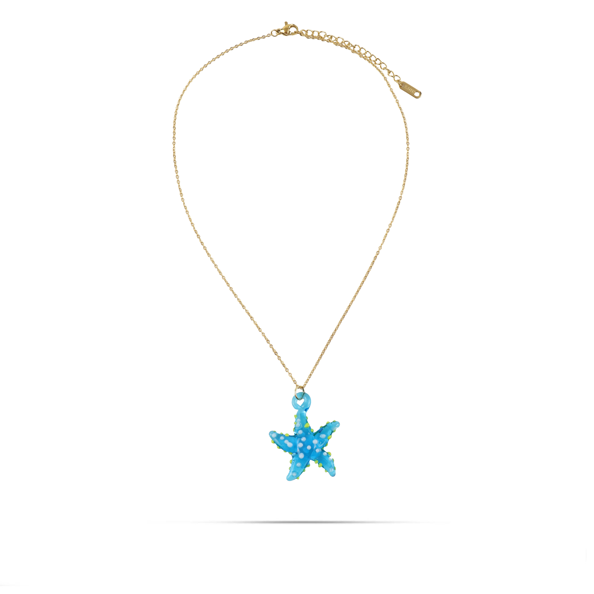 Γυναικείο κολιέ με αστερία από Μουράνο Mar and Mar Starfish Blue Mix από ανοξείδωτο ατσάλι