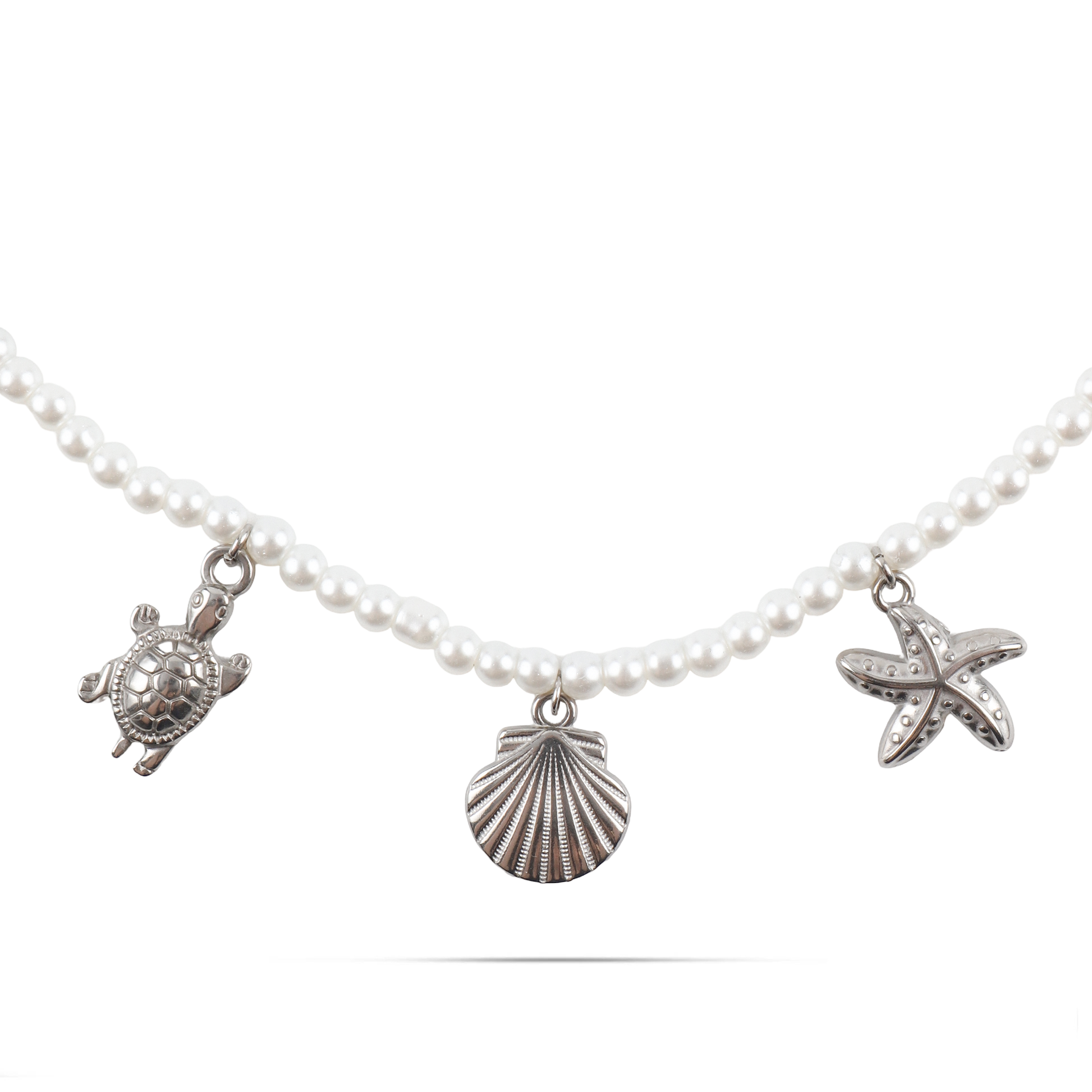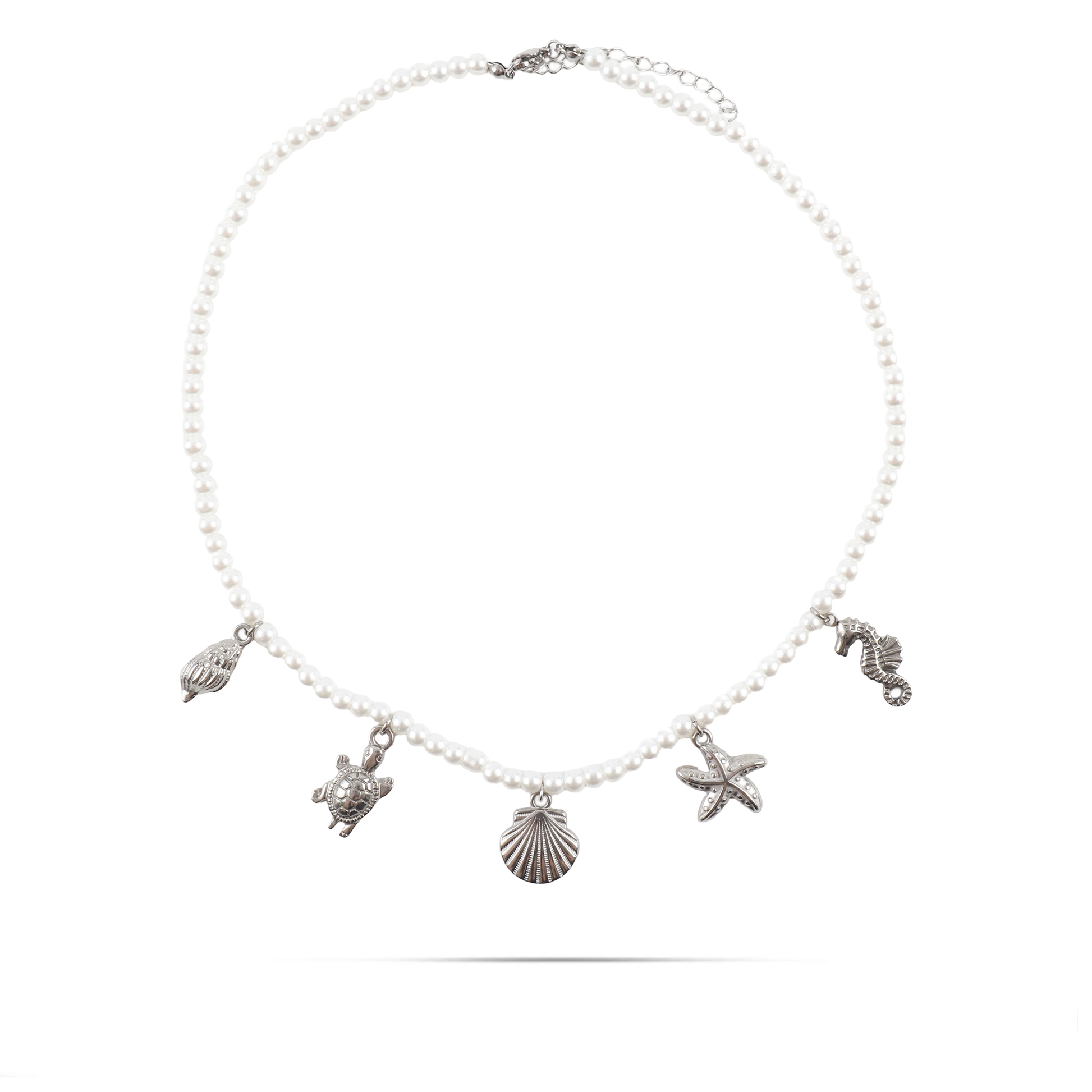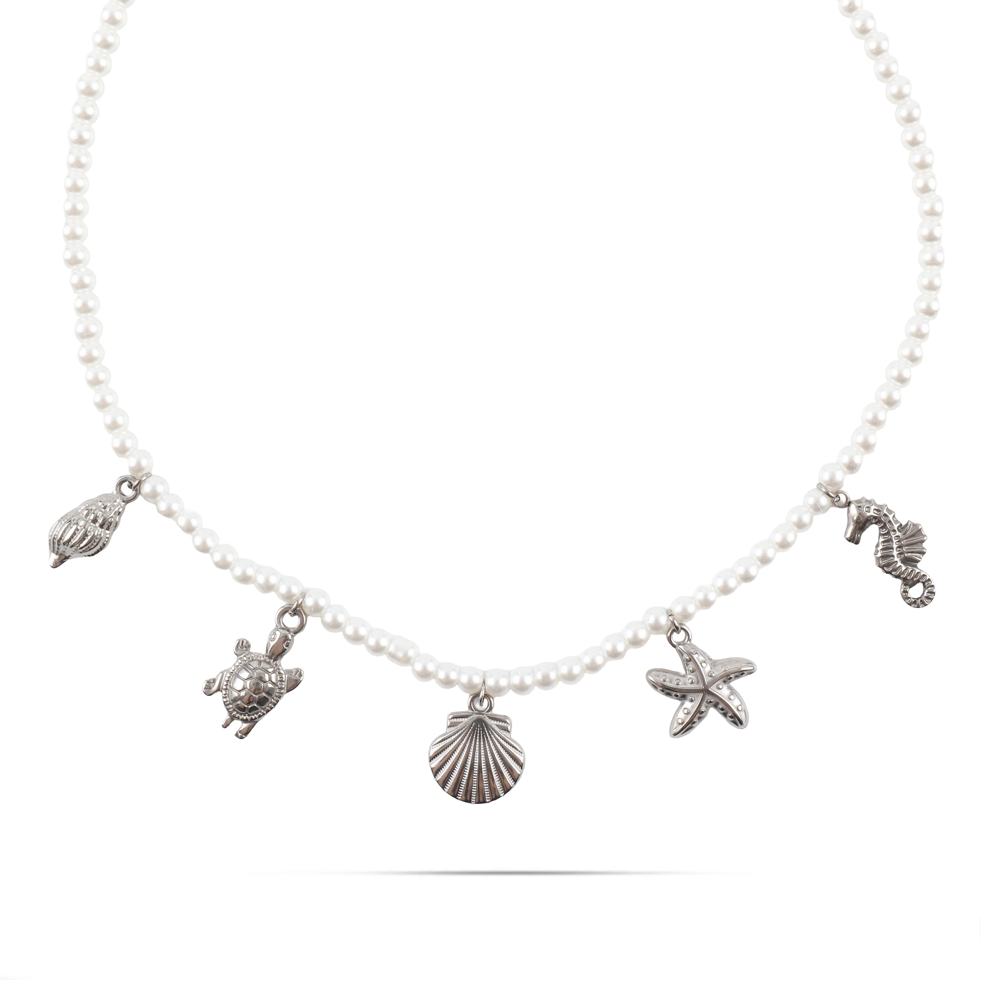 Γυναικείο χειροποίητο κολιέ με καλοκαιρινά κρεμαστά και πέρλες Mar and Mar Venilia από ανοξέιδωτο ατσάλι