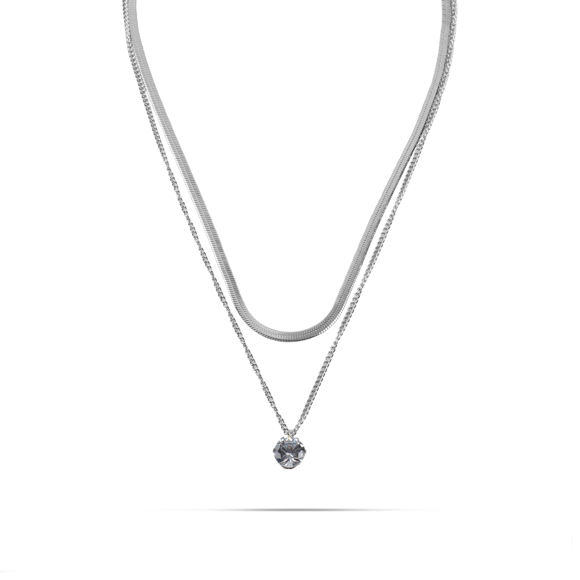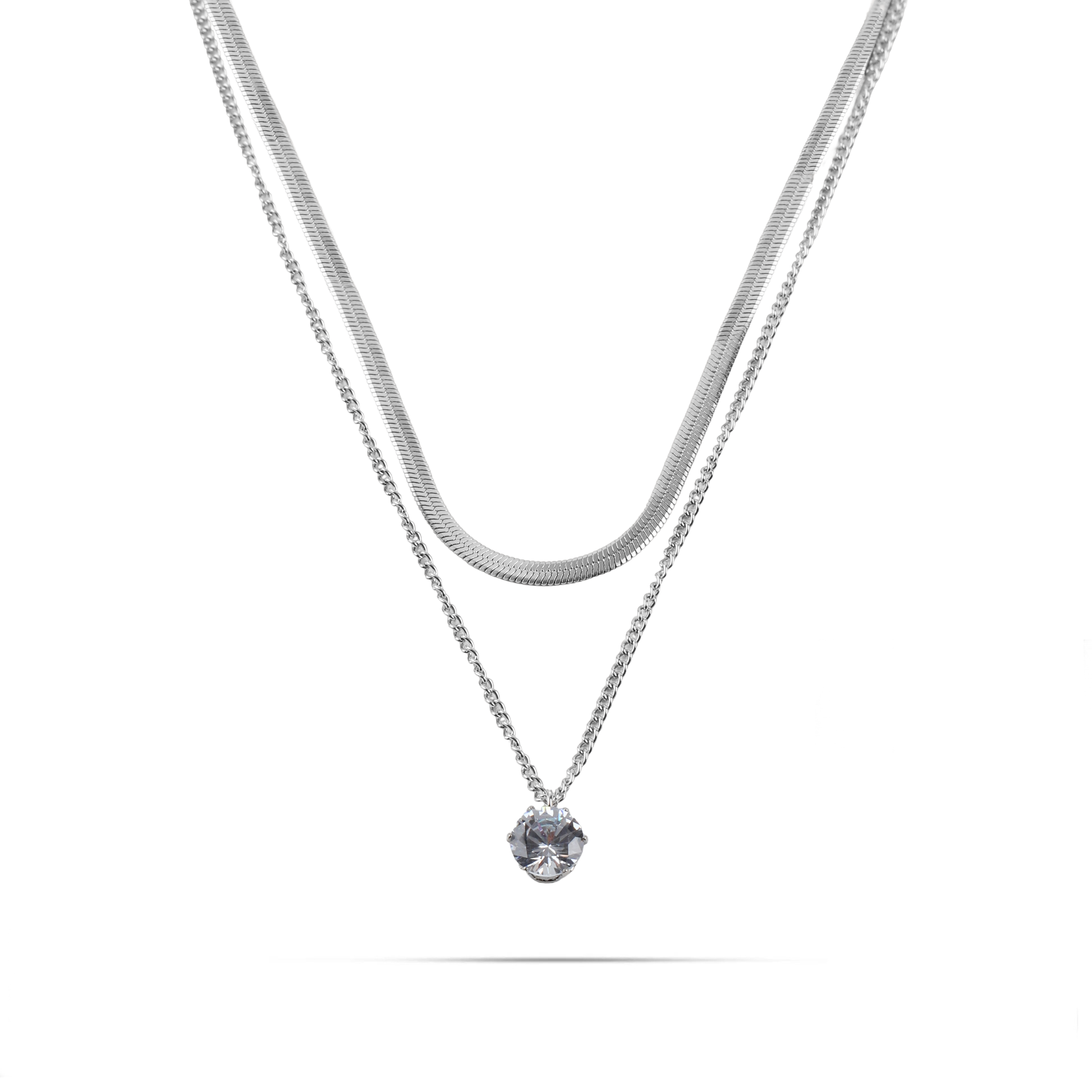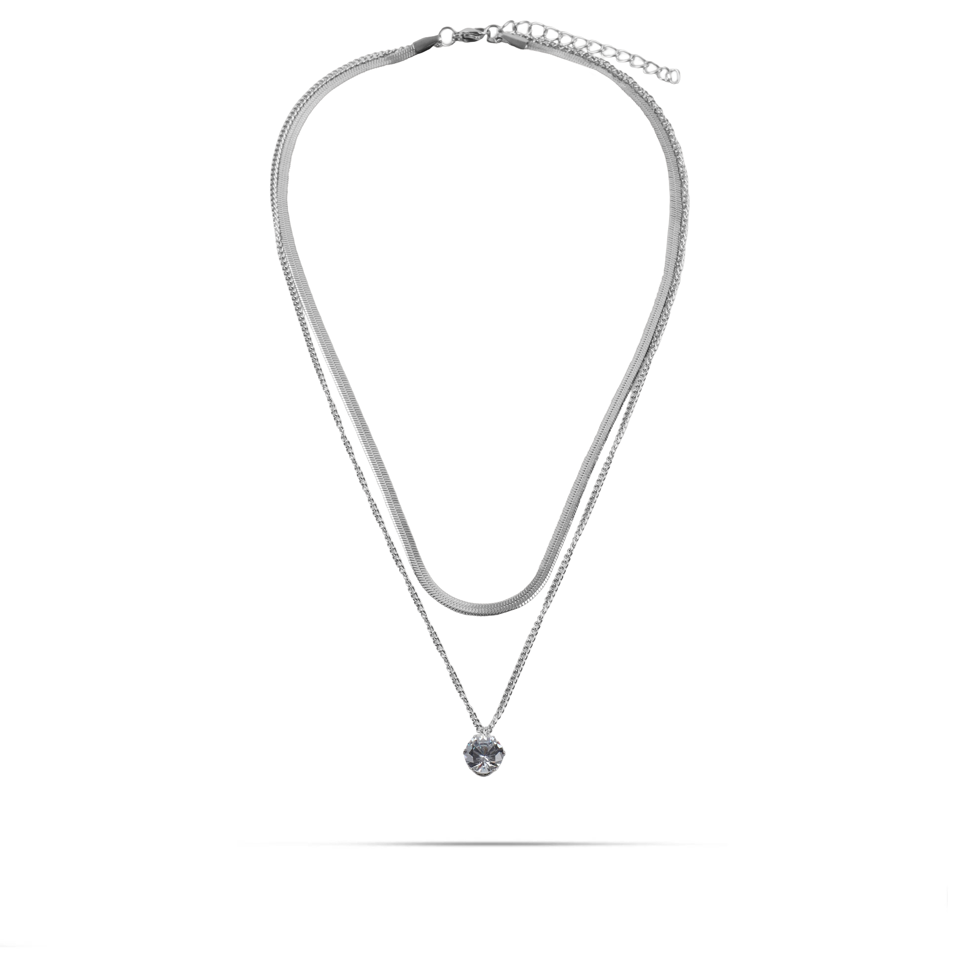 Κολιέ διπλή αλυσίδα λαιμού με πέτρα ζιργκόν Mar and Mar Colette από ανοξείδωτο ατσάλι