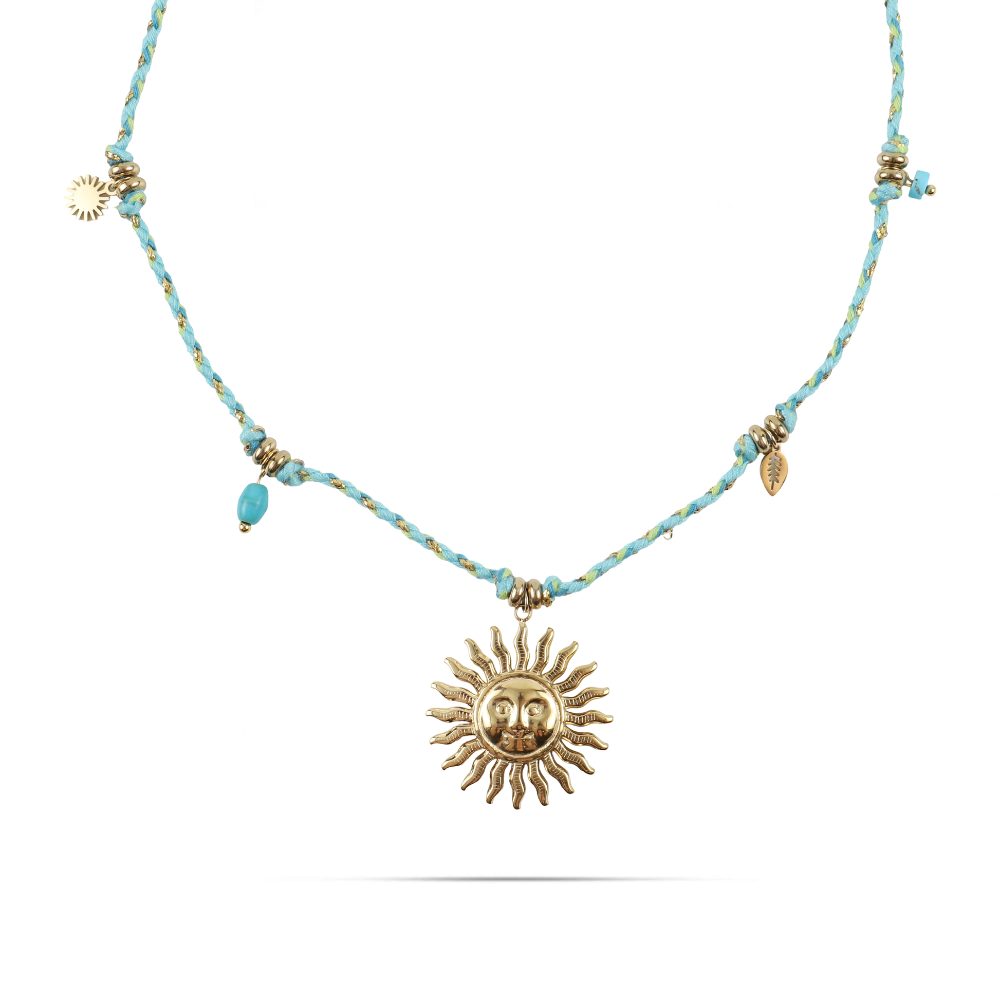 Κολιέ με ήλιο Mar and Mar Myra (Light Blue) από ανοξείδωτο ατσάλι με κορδόνι