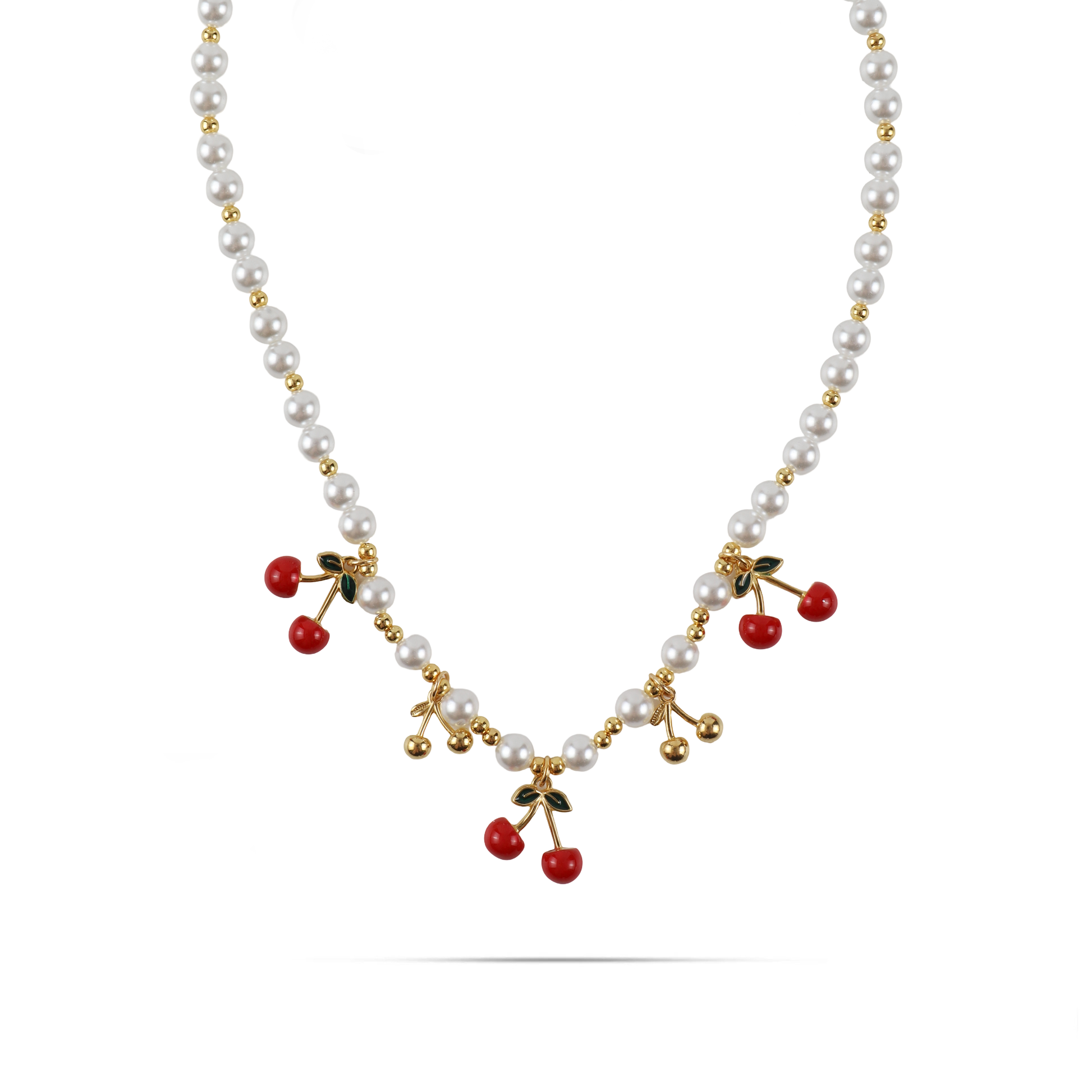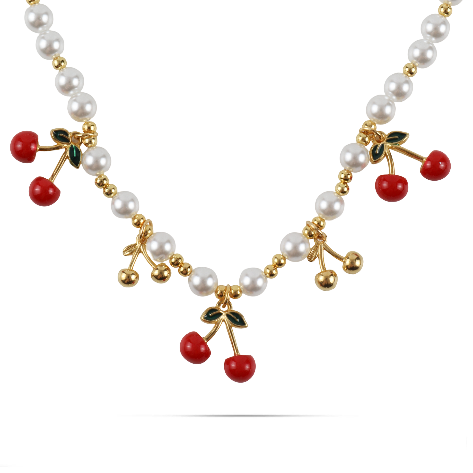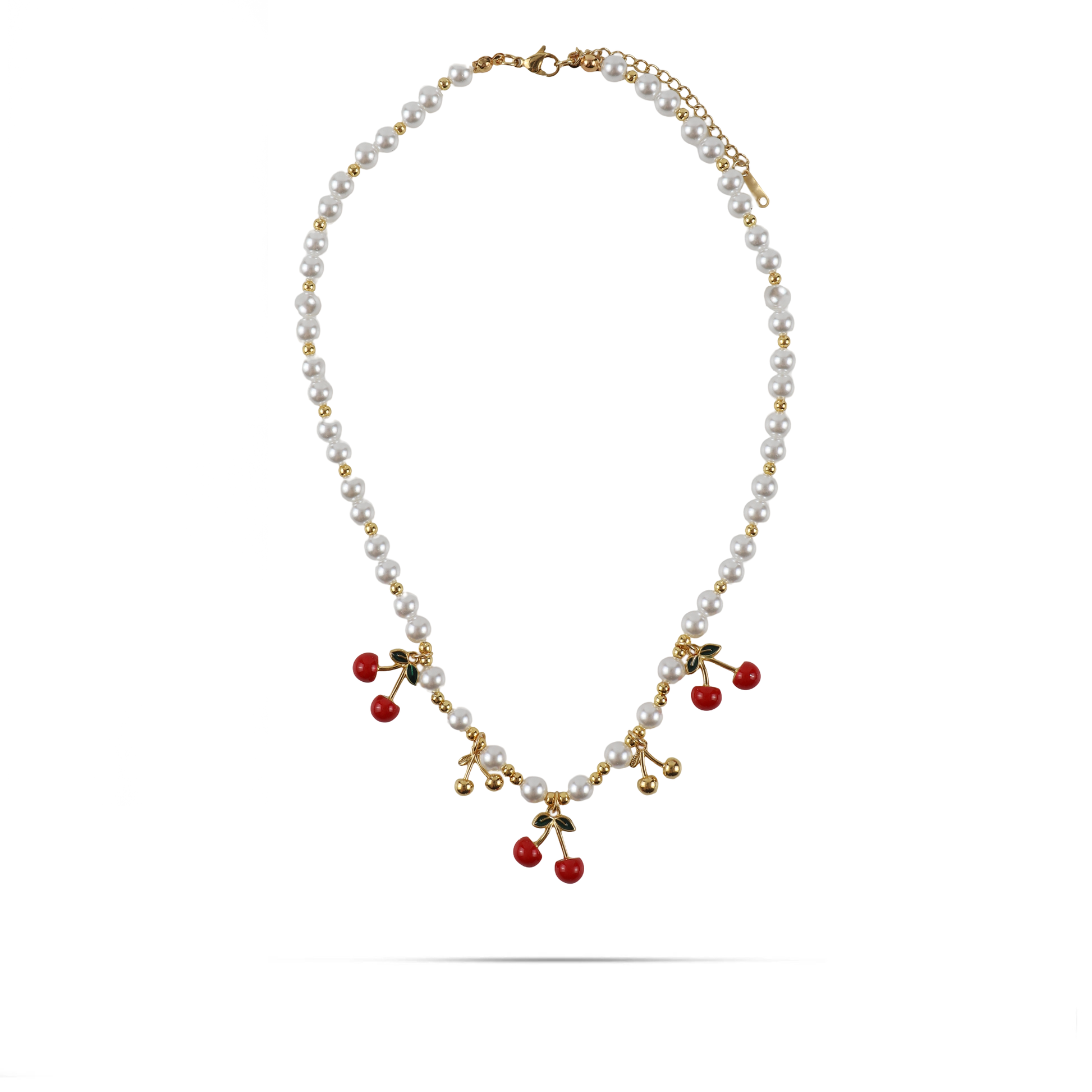 - Κομψό κολιέ με κερασάκια και πέρλες