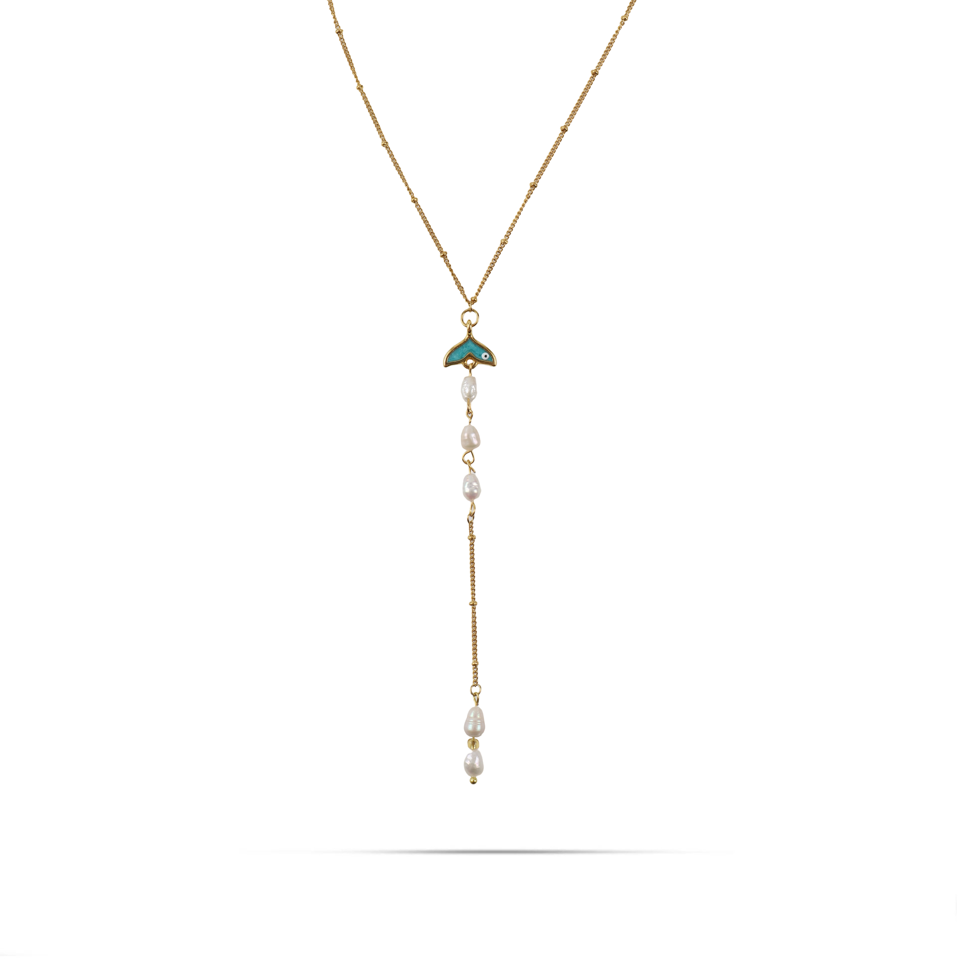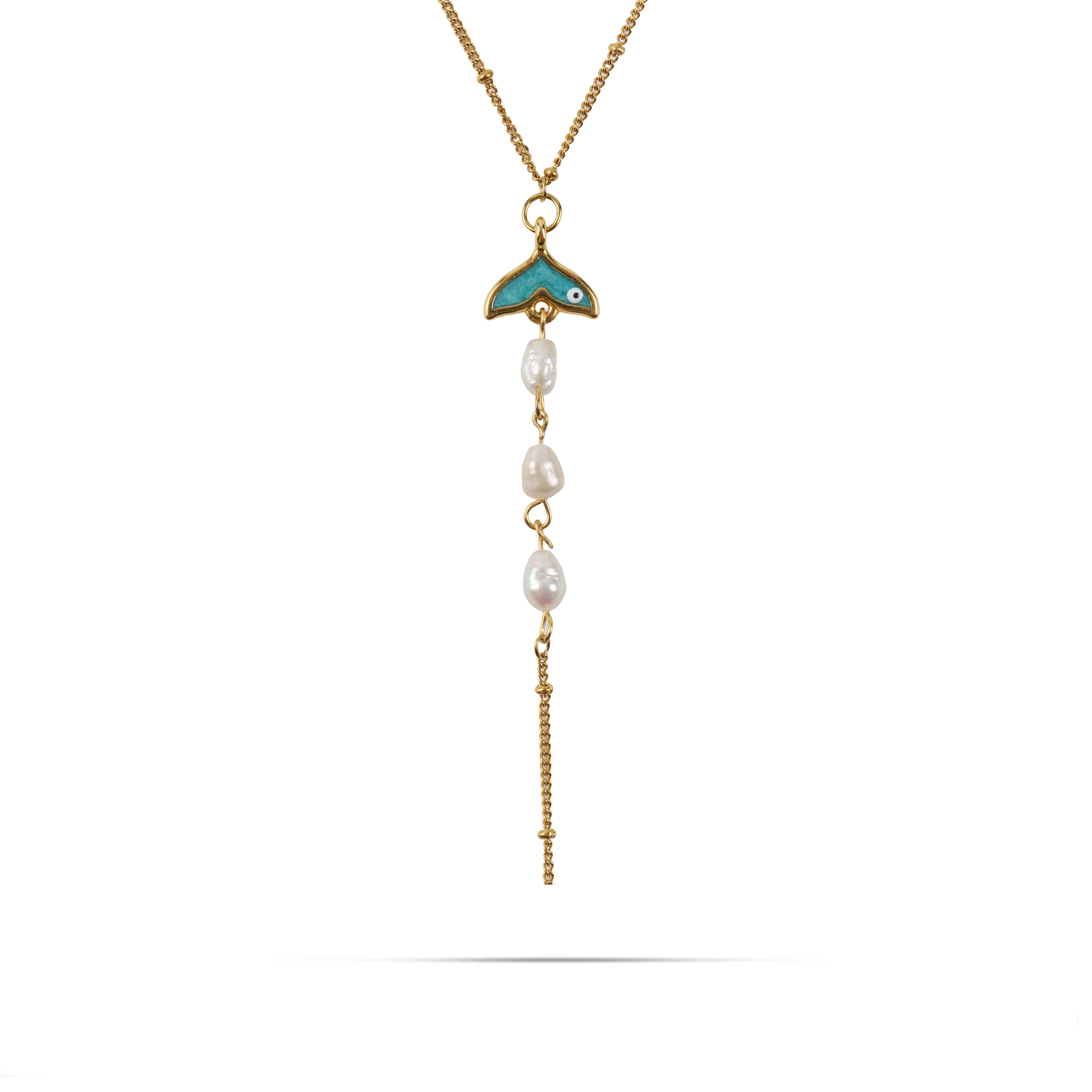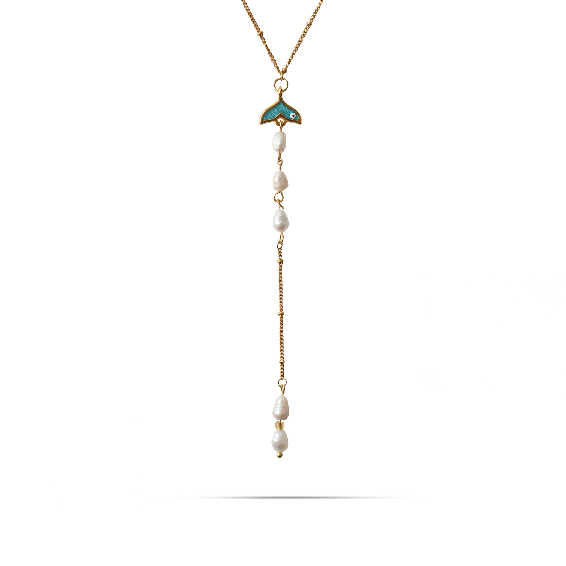 Κολιέ με μαργαριτάρια νερού και ουρά γοργόνας Mar and Mar Mermaid Tail Tie από ανοξείδωτο ατσάλι