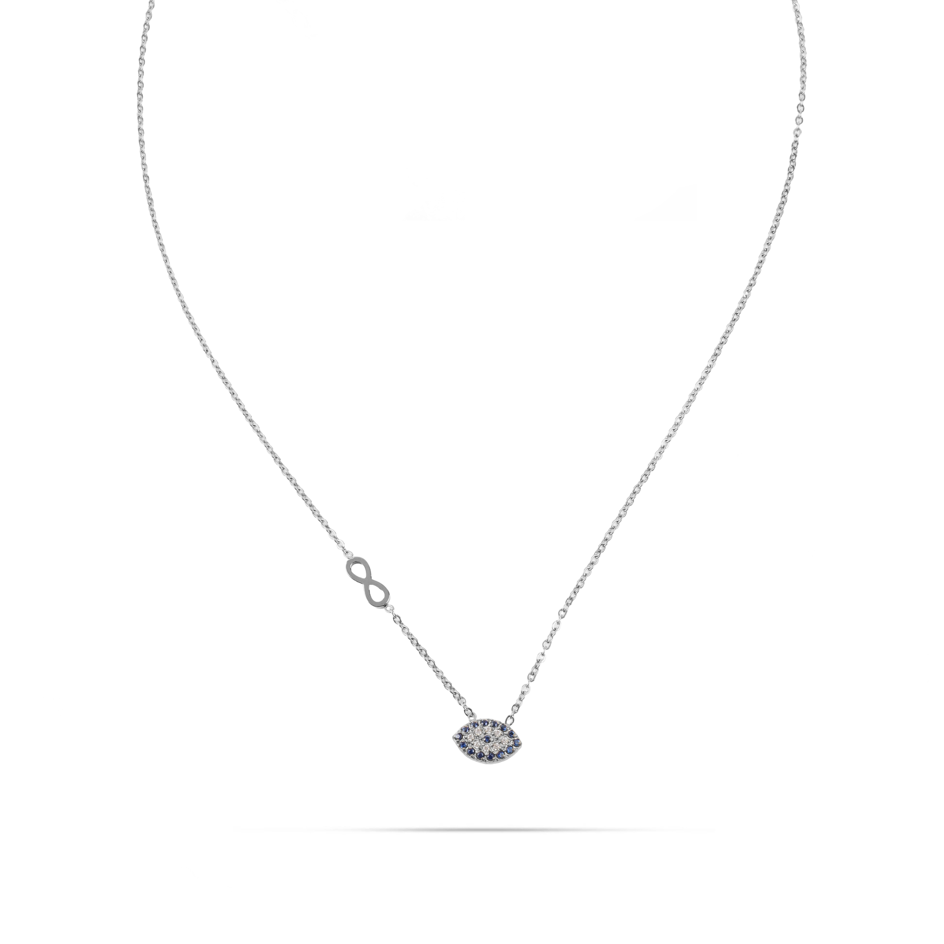 Κολιέ με ματάκι και πέτρες ζιργκόν Mar and Mar Augustina Infinity Silver από ανοξείδωτο ατσάλι