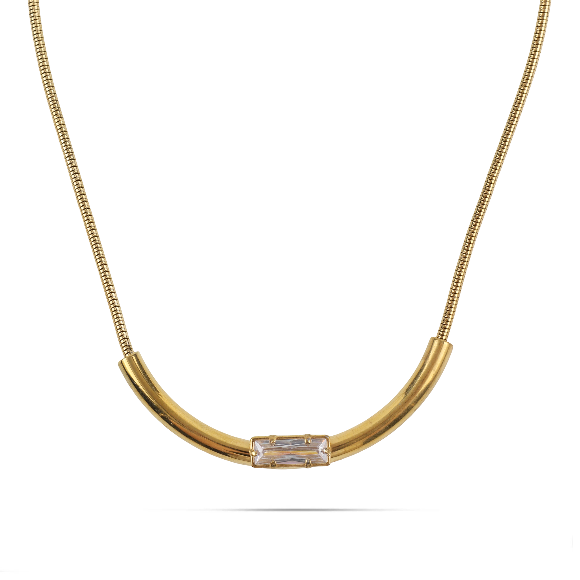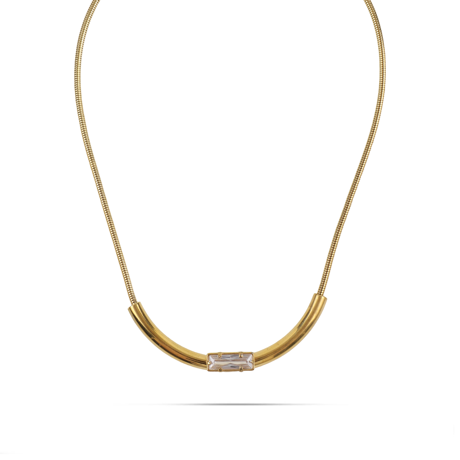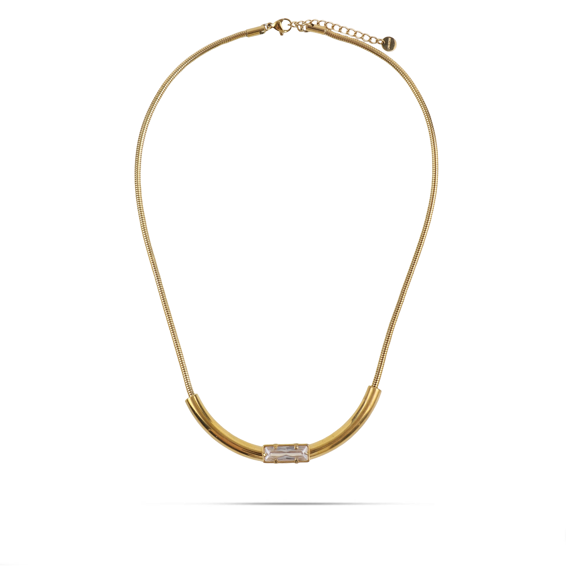 Το κολιέ Mar and Mar Linear σε χρυσό χρώμα αποπνέει μια ζεστή, πολυτελή αύρα, με τον ιδιαίτερο σχεδιασμό του να αγκαλιάζει τον λαιμό με απόλυτη φινέτσα. Ο συνδυασμός της χρυσής βέργας με τον αστραφτερό κεντρικό κρύσταλλο δημιουργεί ένα εντυπωσιακό παιχνίδισμα με το φως, προσδίδοντας μια νότα «glamour» σε κάθε σας κίνηση. Κατασκευασμένο από ανοξείδωτο ατσάλι με αναλλοίωτο φινίρισμα, αποτελεί το απόλυτο αξεσουάρ για να προσθέσετε λάμψη και χαρακτήρα στο στυλ σας, από το πρωί ως το βράδυ. ✨