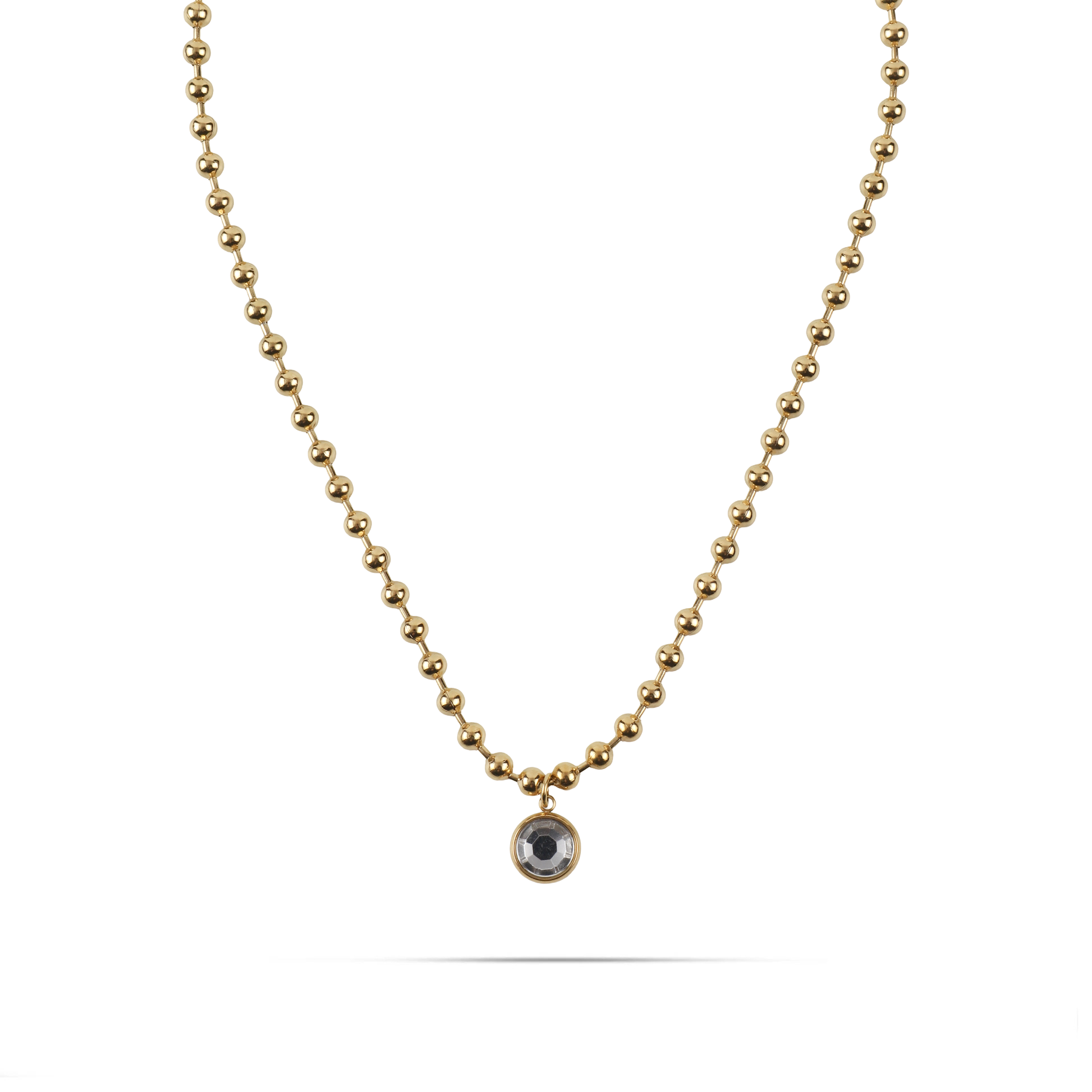 Κολιέ από ανοξείδωτο ατσάλι με κομψή και εκλεπτυσμένη αλυσίδα, διακοσμημένο με μενταγιόν που φέρει μία λαμπερή λευκή πέτρα Zircon, χαρίζοντας διαχρονική κομψότητα και εκθαμβωτική λάμψη. Η ανθεκτική κατασκευή από ανοξείδωτο ατσάλι εξασφαλίζει ότι το κόσμημα παραμένει λαμπερό και αναλλοίωτο στον χρόνο, ιδανικό για καθημερινή χρήση αλλά και για πιο ξεχωριστές περιστάσεις. Ένα κλασικό και διακριτικό κόσμημα που ταιριάζει με κάθε στυλ, ενώ αποτελεί και μια εξαιρετική επιλογή δώρου για αγαπημένα πρόσωπα.