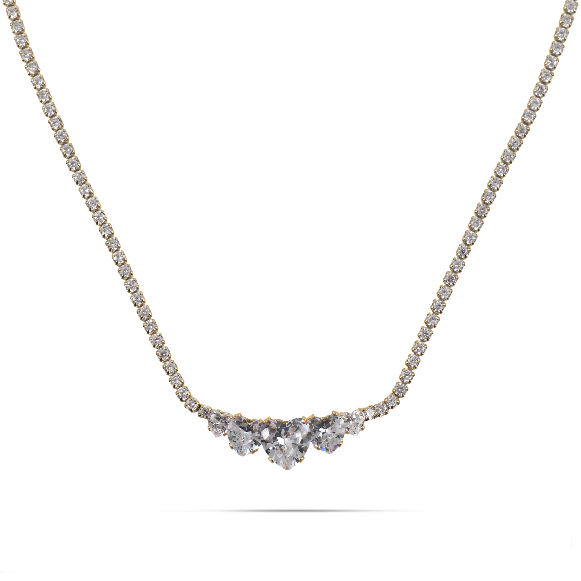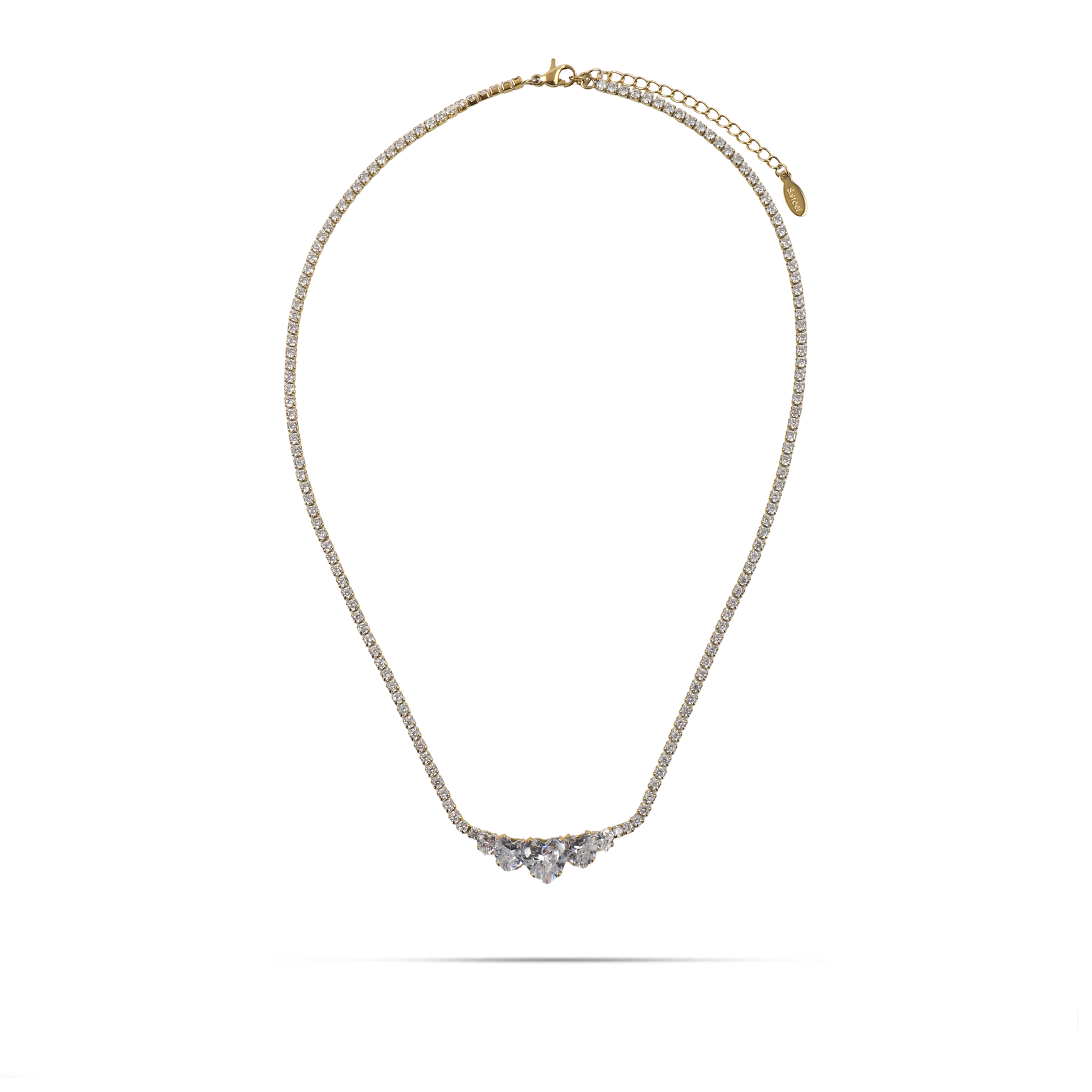 Το κολιέ Mar and Mar Amally σε χρυσό χρώμα αποτελεί την επιτομή της ρομαντικής πολυτέλειας, με τον σχεδιασμό του να θυμίζει ένα εκθαμβωτικό στεφάνι από φως. Η λεπτή αλυσίδα «tennis», στολισμένη με μια συνεχή σειρά από αστραφτερά ζιργκόν, καταλήγει σε ένα εντυπωσιακό κεντρικό μοτίβο από τρεις κρυστάλλους σε σχήμα «heart», δημιουργώντας μια αύρα αξεπέραστης θηλυκότητας. Κατασκευασμένο από υψηλής ποιότητας ανοξείδωτο ατσάλι για μέγιστη ανθεκτικότητα και αναλλοίωτη χρυσή λάμψη, είναι η ιδανική επιλογή για τη γυναίκα που αναζητά ένα διαχρονικό statement κόσμημα με σοφιστικέ αισθητική και εκτυφλωτική λάμψη. ✨