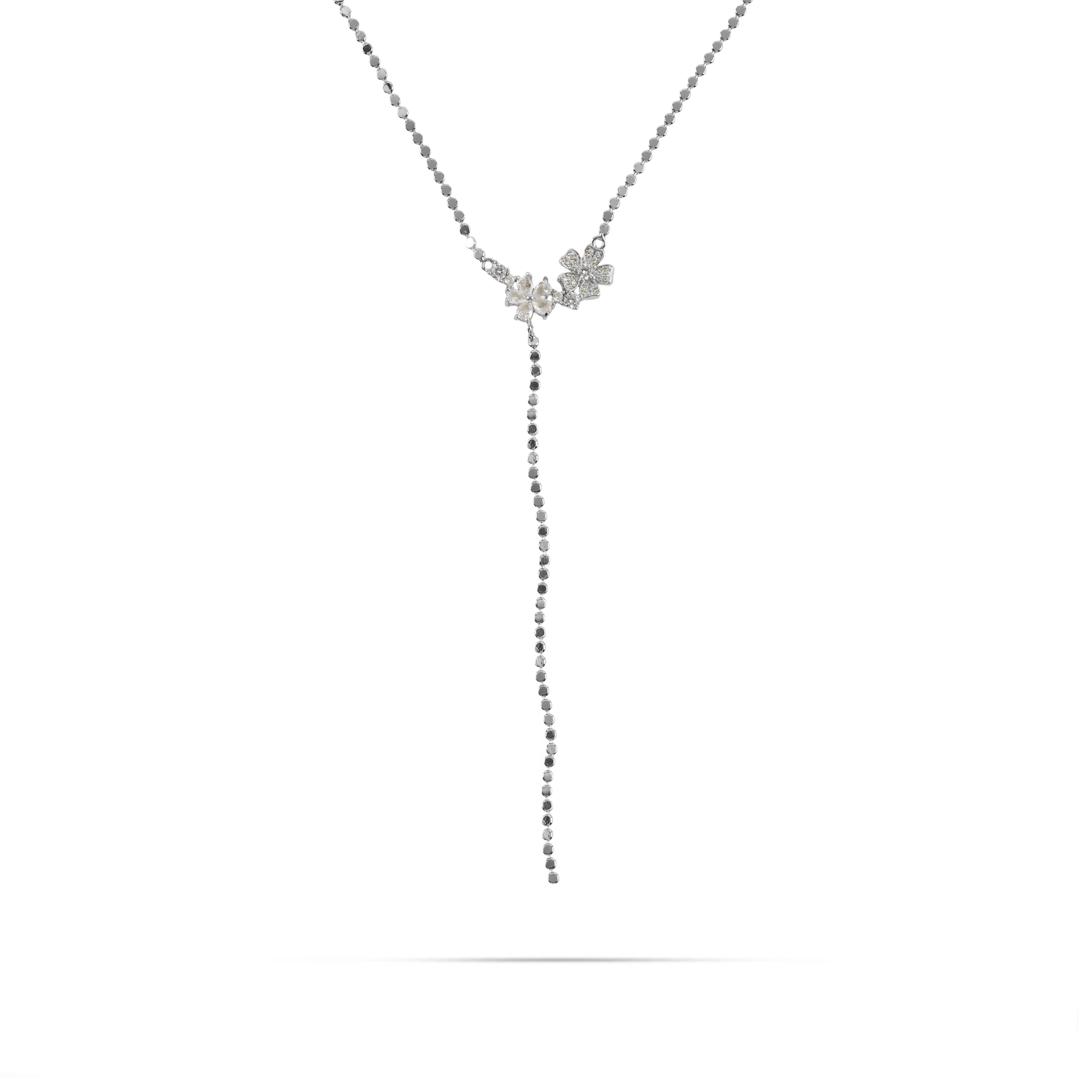 Η λεπτεπίλεπτη αλυσίδα αγκαλιάζει διακριτικά ένα μοτίβο λουλουδιών στο κέντρο, αποπνέοντας θηλυκότητα και εκλεπτυσμένη λάμψη.