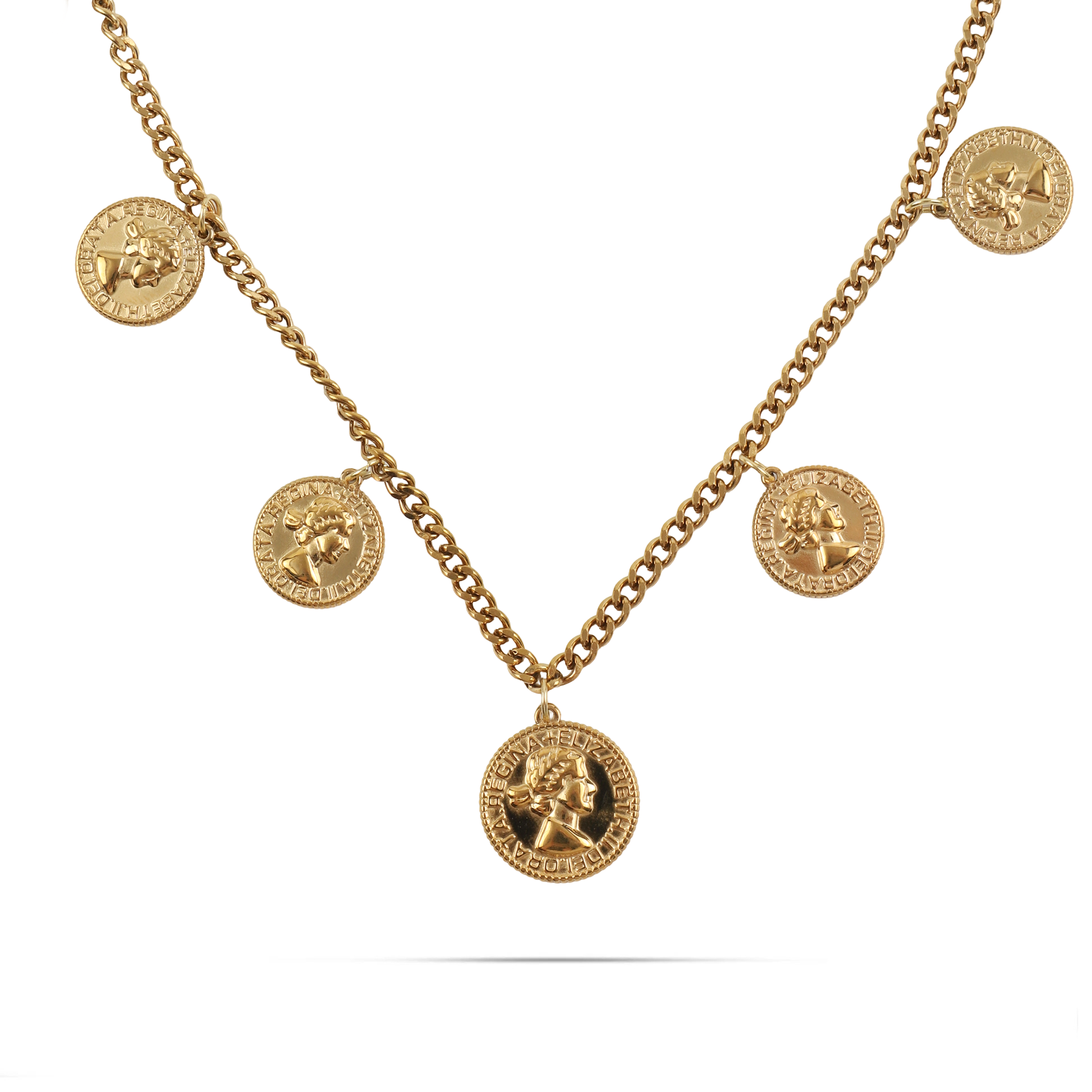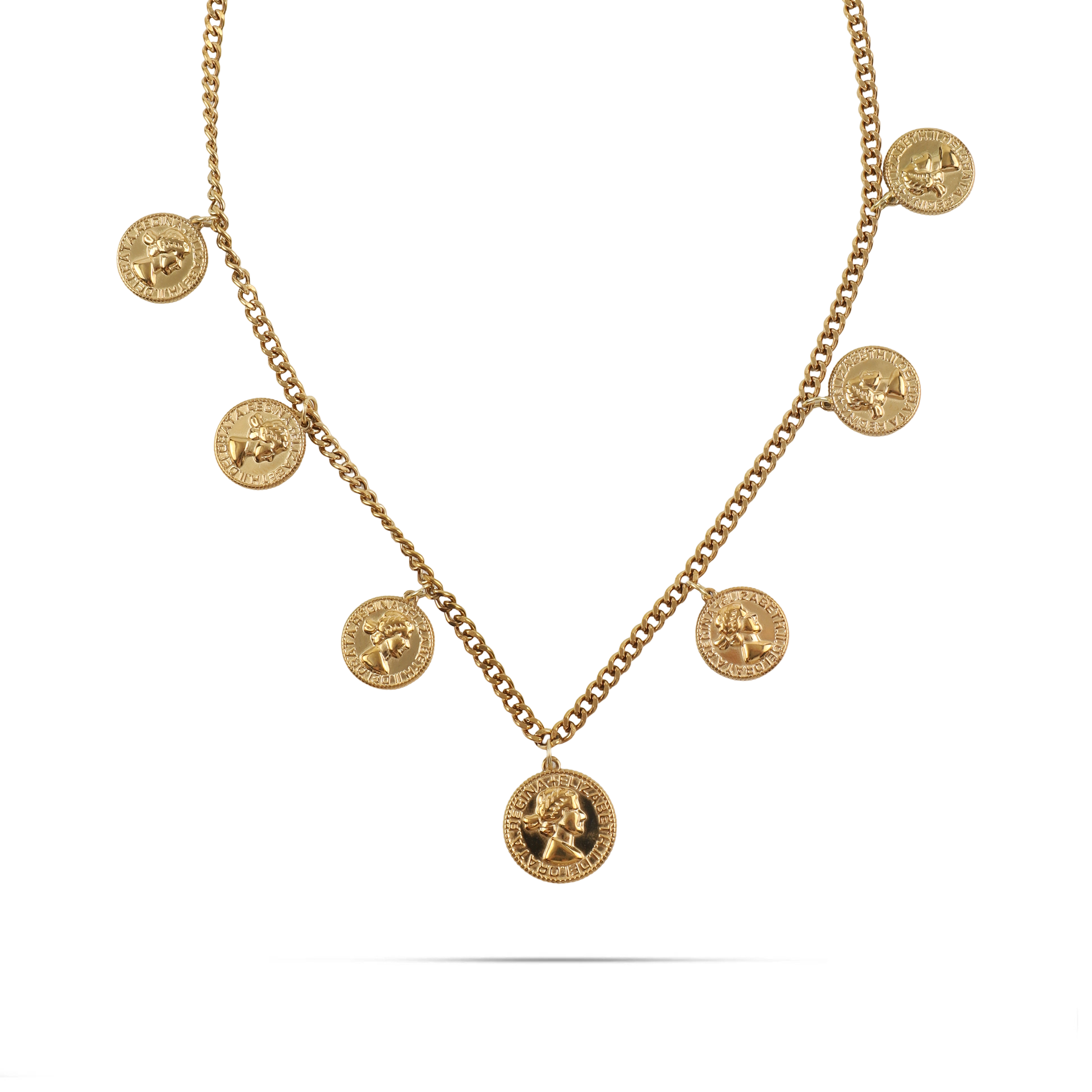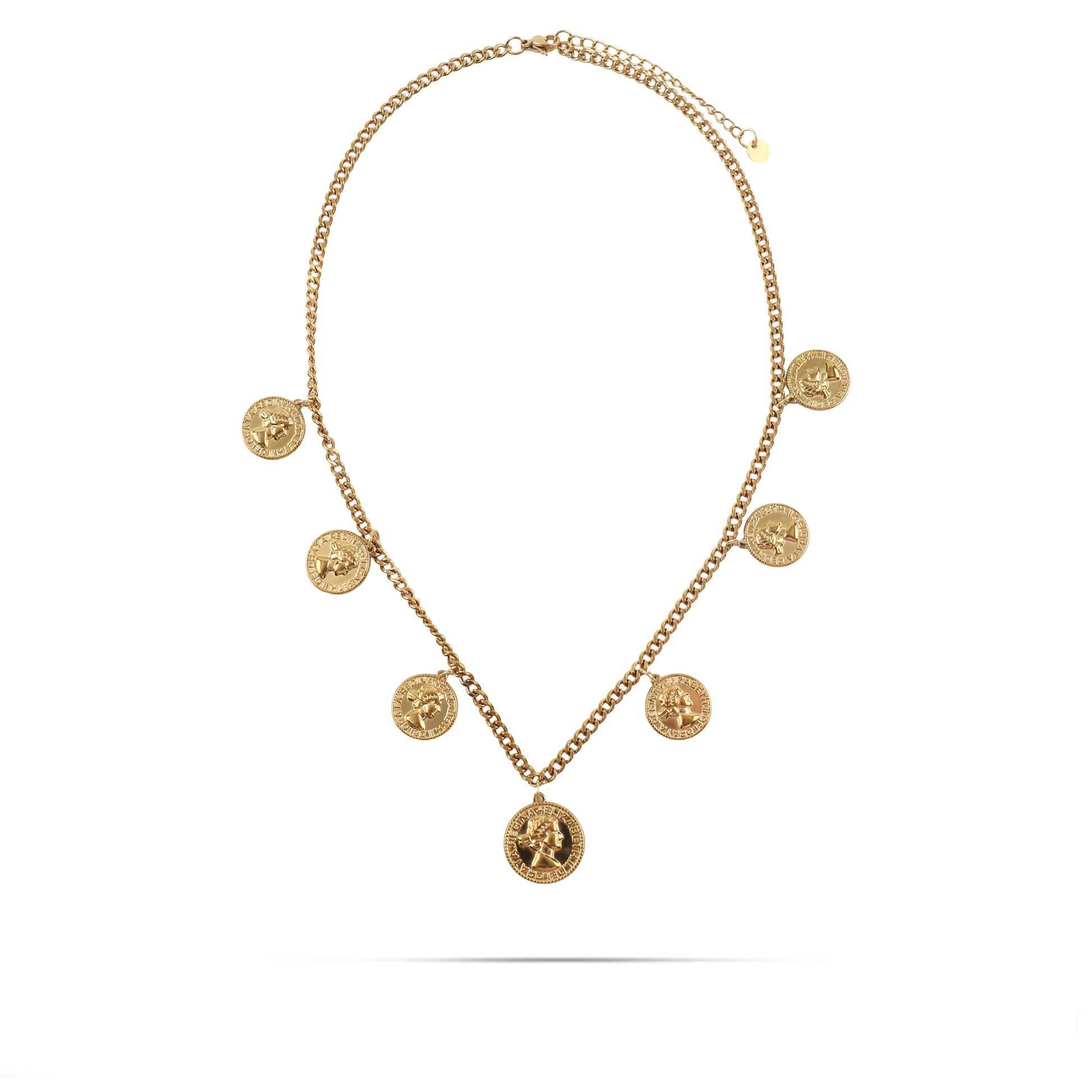 Το κολιέ Mar and Mar Imperia σε χρυσό χρώμα αποτελεί ένα κόσμημα με έντονο «heritage» χαρακτήρα, με τα επτά κρεμαστά φλουριά να δημιουργούν έναν επιβλητικό και διαχρονικό σχεδιασμό. Η κλασική αλυσίδα τύπου «gourmet» πλαισιώνει ιδανικά τα ανάγλυφα νομίσματα, προσφέροντας έναν αέρα αρχοντικής κομψότητας που παραπέμπει σε οικογενειακά κειμήλια. Κατασκευασμένο από υψηλής ποιότητας ανοξείδωτο ατσάλι για μέγιστη ανθεκτικότητα και αναλλοίωτη λάμψη, είναι η ιδανική επιλογή για να προσθέσετε έναν «royal-chic» χαρακτήρα σε κάθε σας εμφάνιση, από ένα απλό καθημερινό outfit μέχρι μια πιο επίσημη περίσταση. ✨