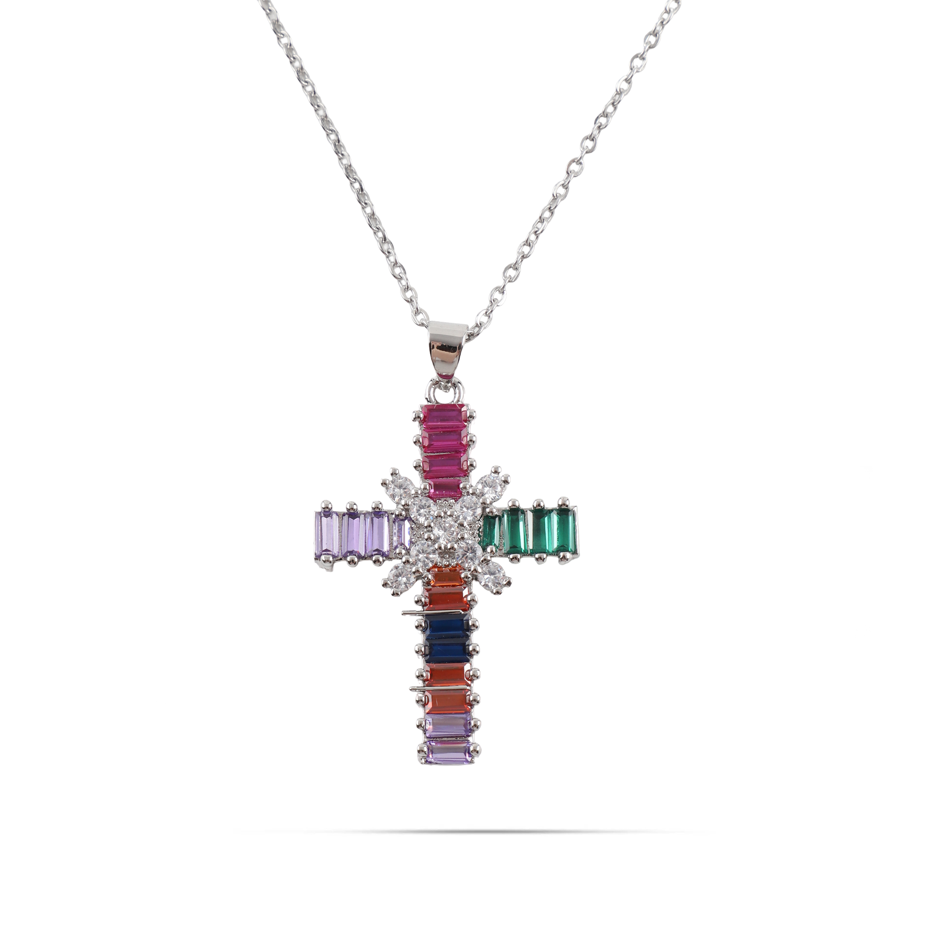 Κολιέ σταυρός με πέτρες ζιργκόν Mar and Mar Faith Cross (Rainbow) από ανοξείδωτο ατσάλι