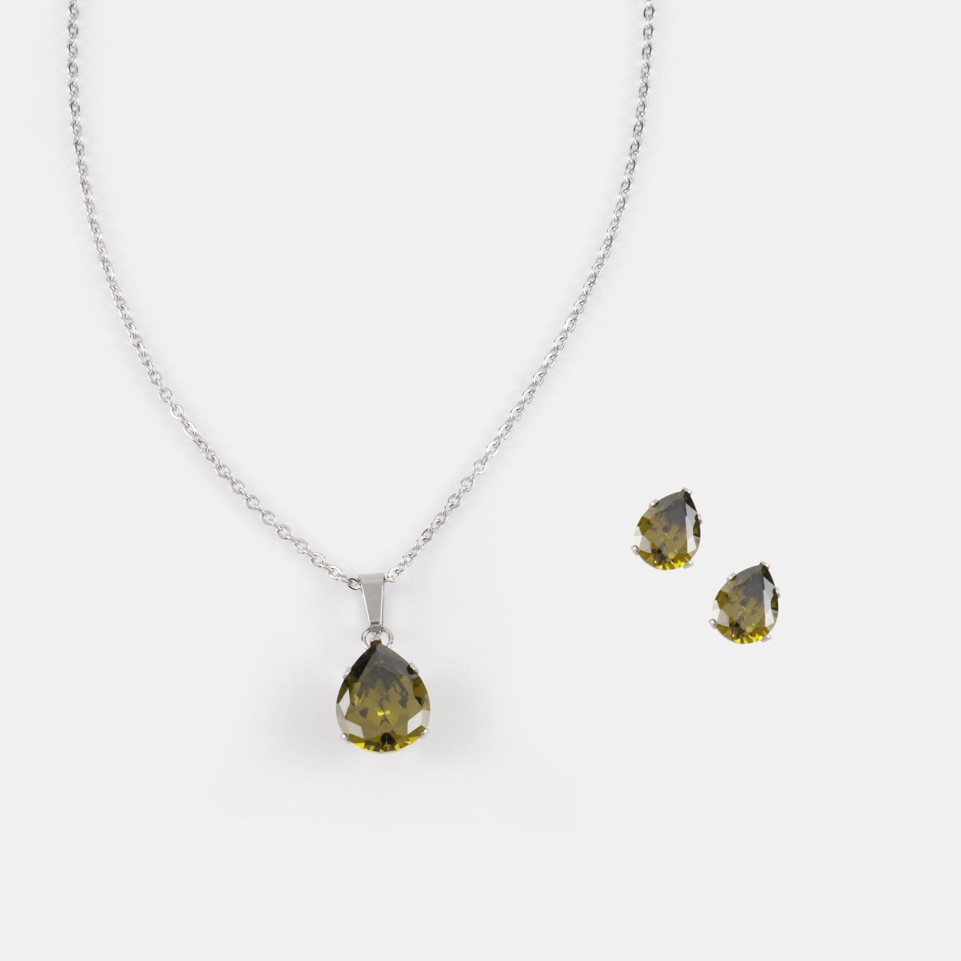 Σετ κολιέ με σκουλαρίκια με πέτρα ζιργκόν Mar and Mar Set Zuzanna Tear Silver (Green) από ανοξείδωτο ατσάλι